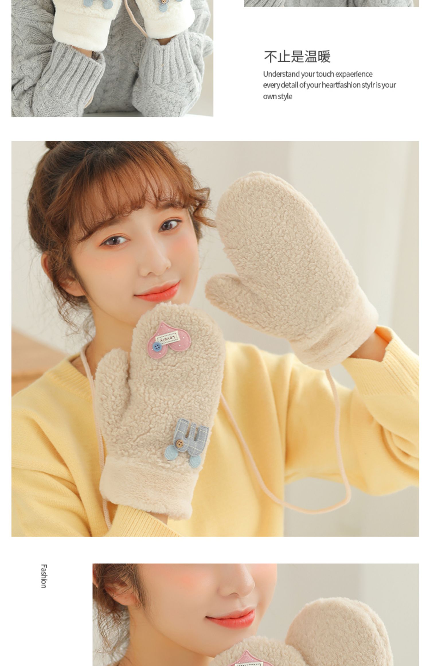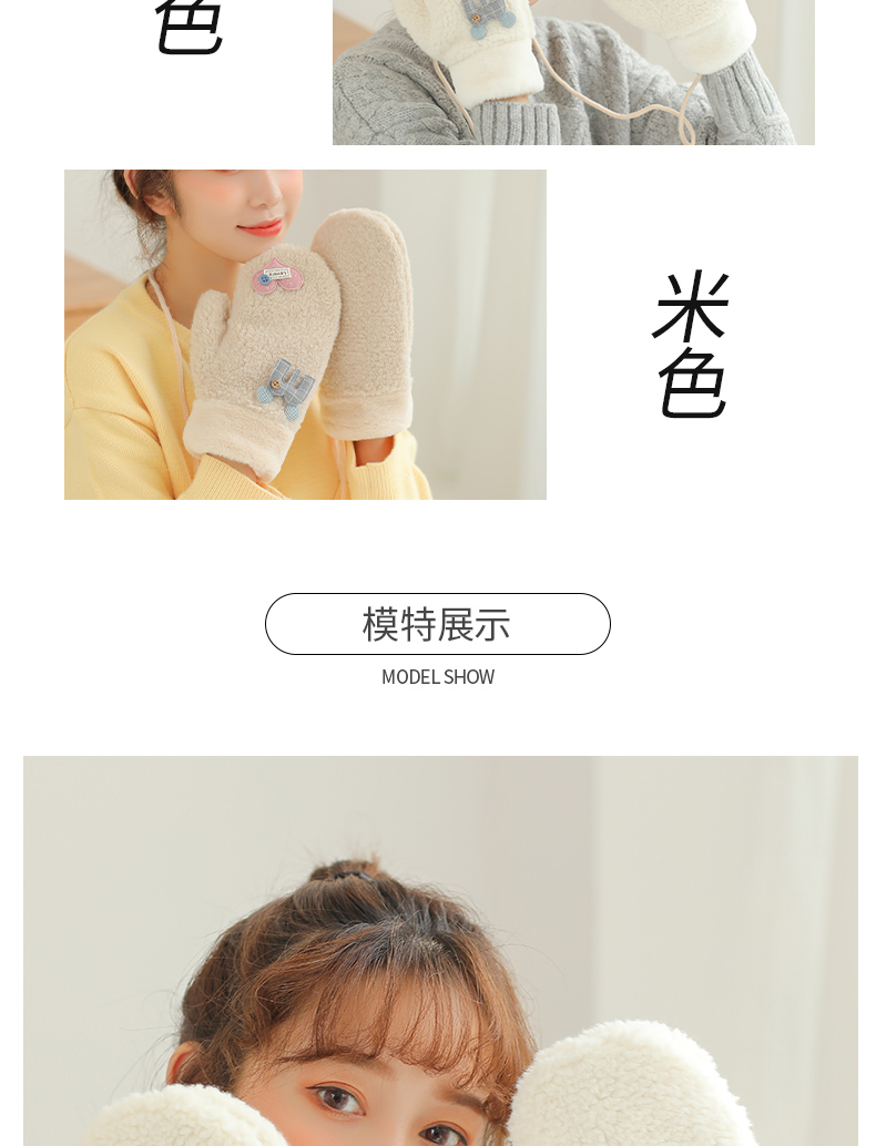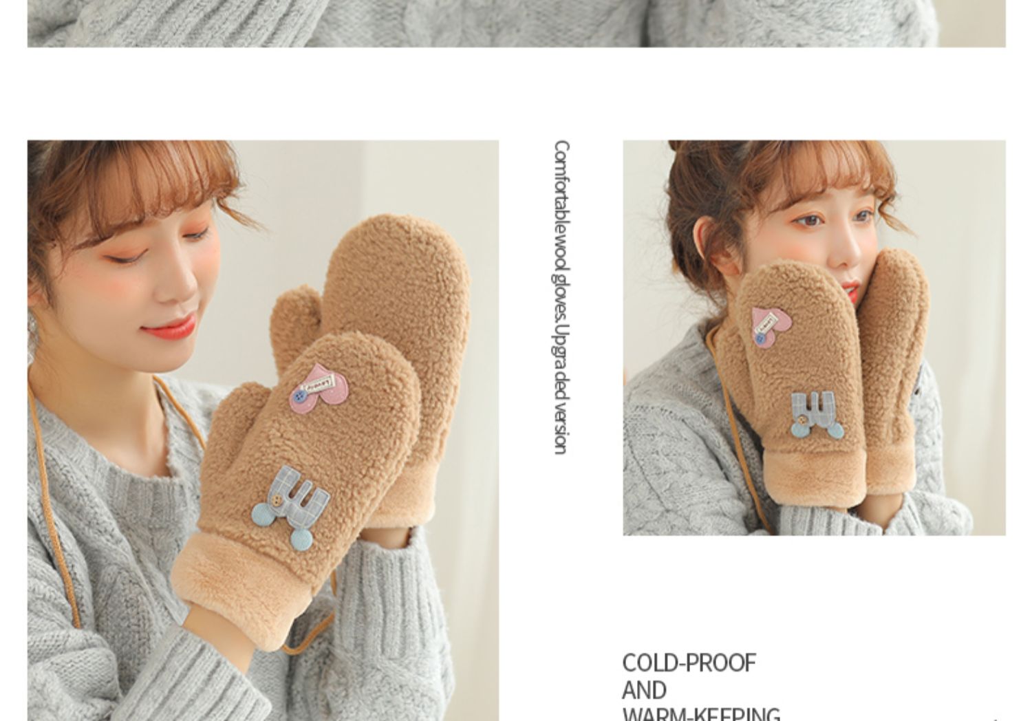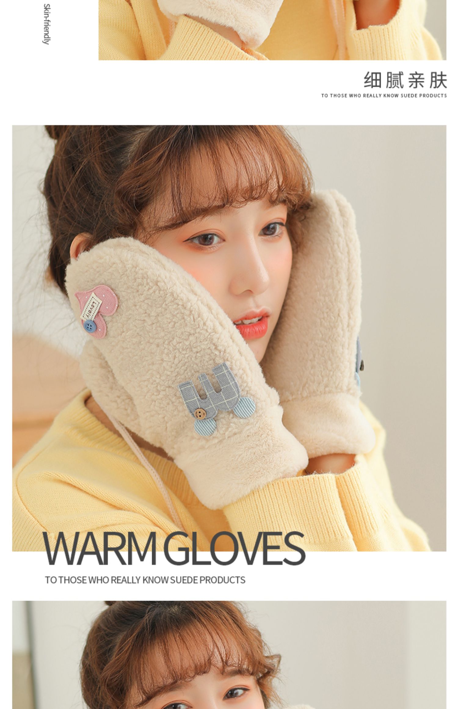 Бархатные перчатки, зимний милый трикотажный флисовый удерживающий тепло комплект для школьников, в корейском стиле, увеличенная толщина