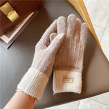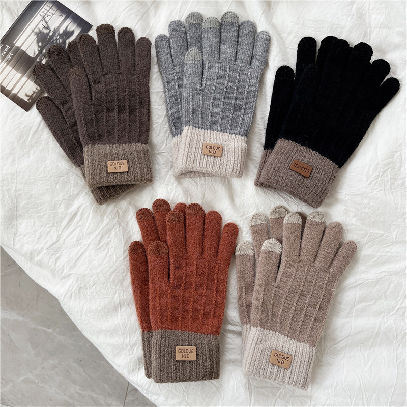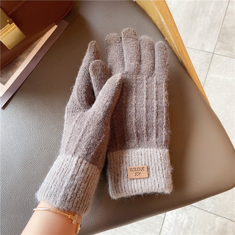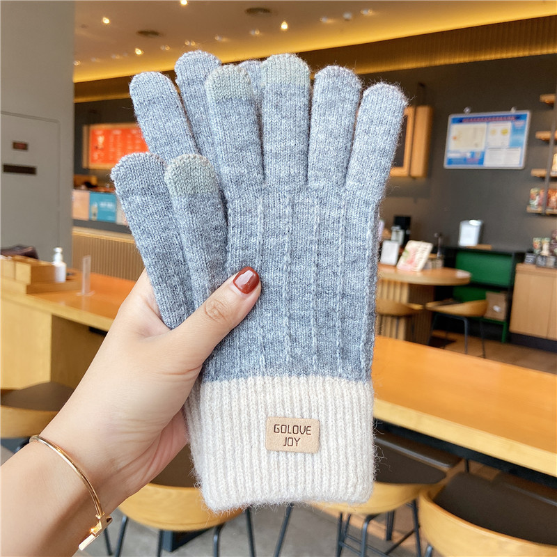 Удерживающие тепло перчатки, демисезонный утепленный трикотажный шерстяной милый комплект для выхода на улицу для школьников