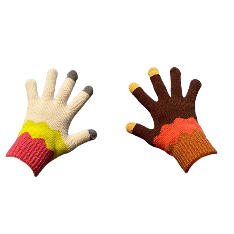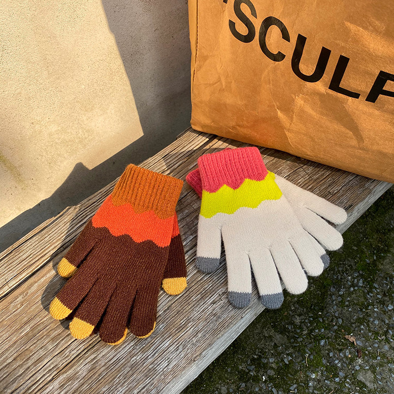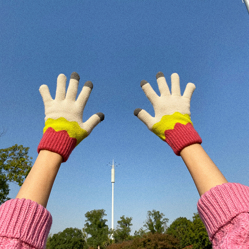 Милые флисовые демисезонные трикотажные удерживающие тепло перчатки, три цвета, в корейском стиле