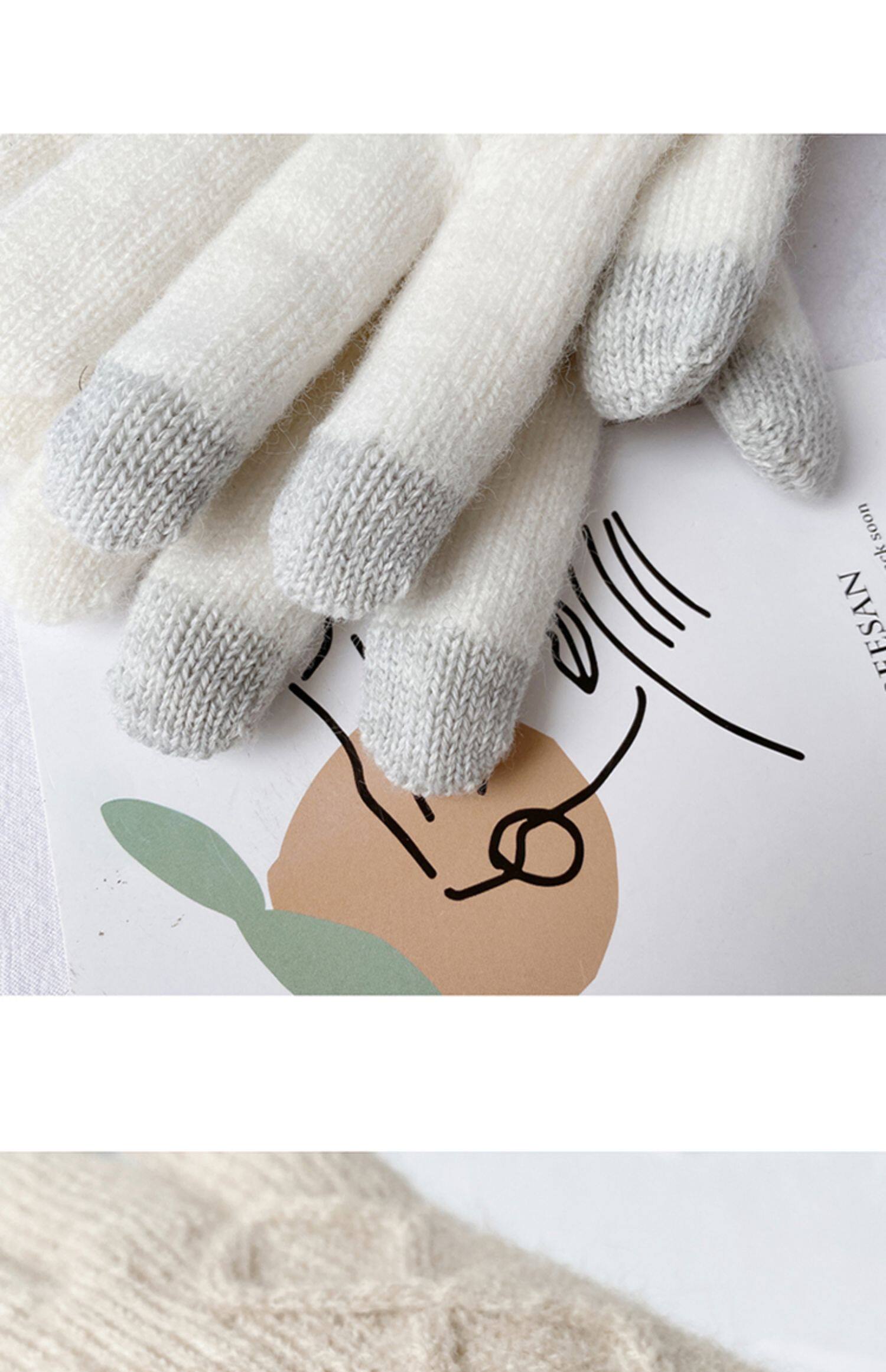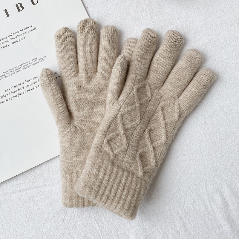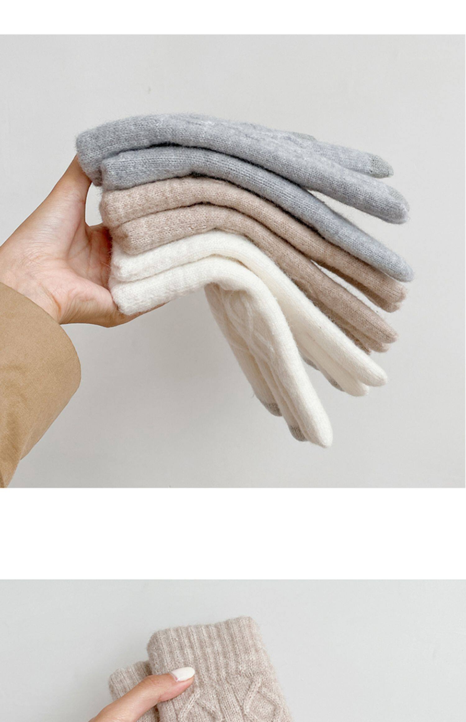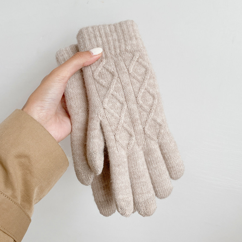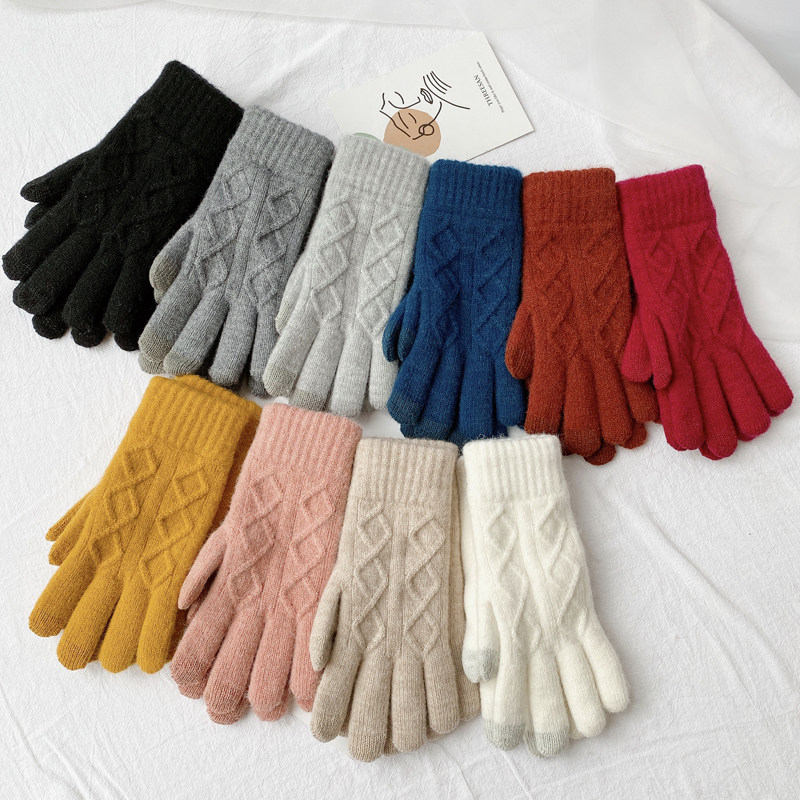 Универсальные модные утепленные удерживающие тепло шерстяные демисезонные перчатки, комплект, в корейском стиле, простой и элегантный дизайн