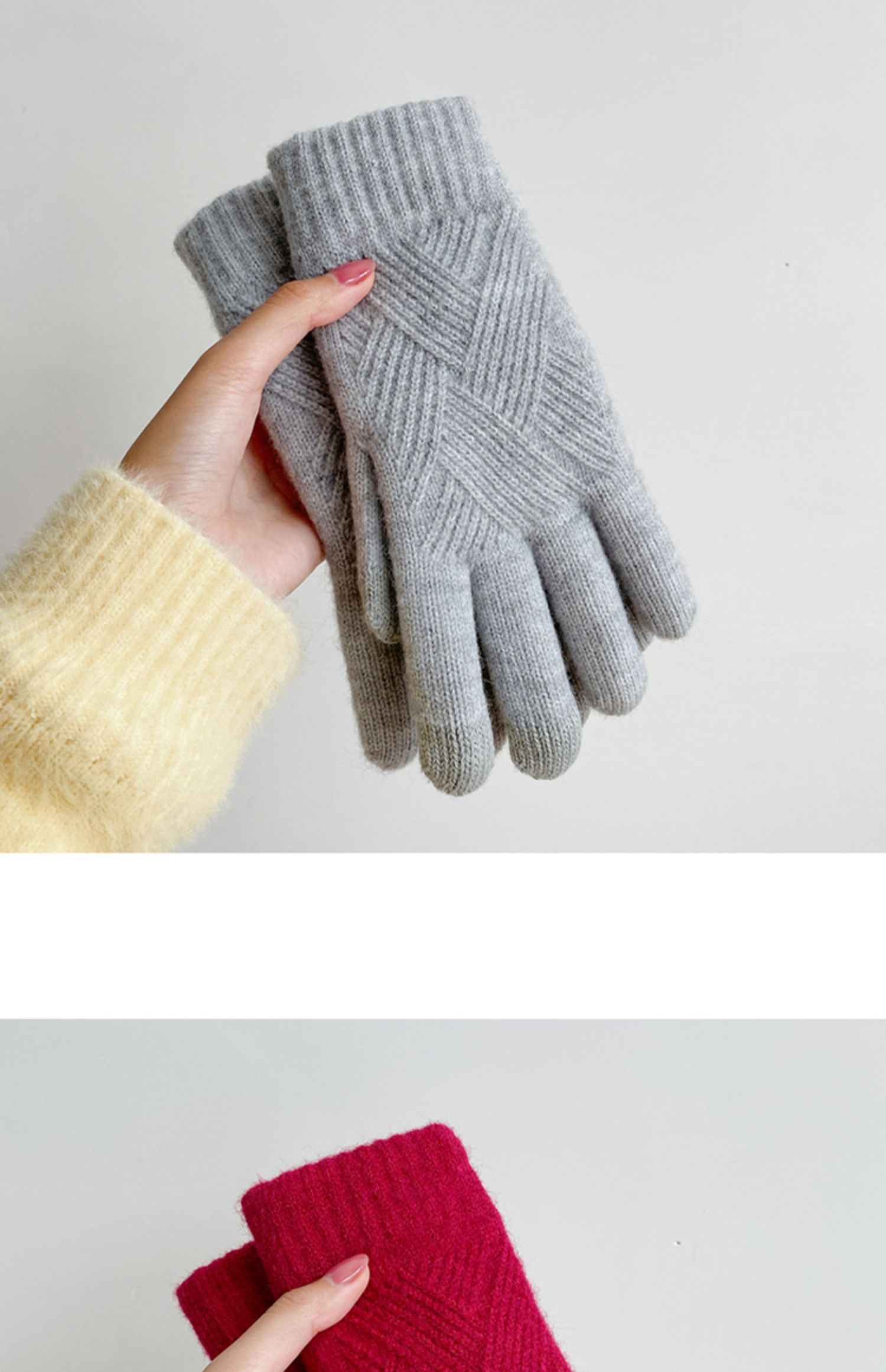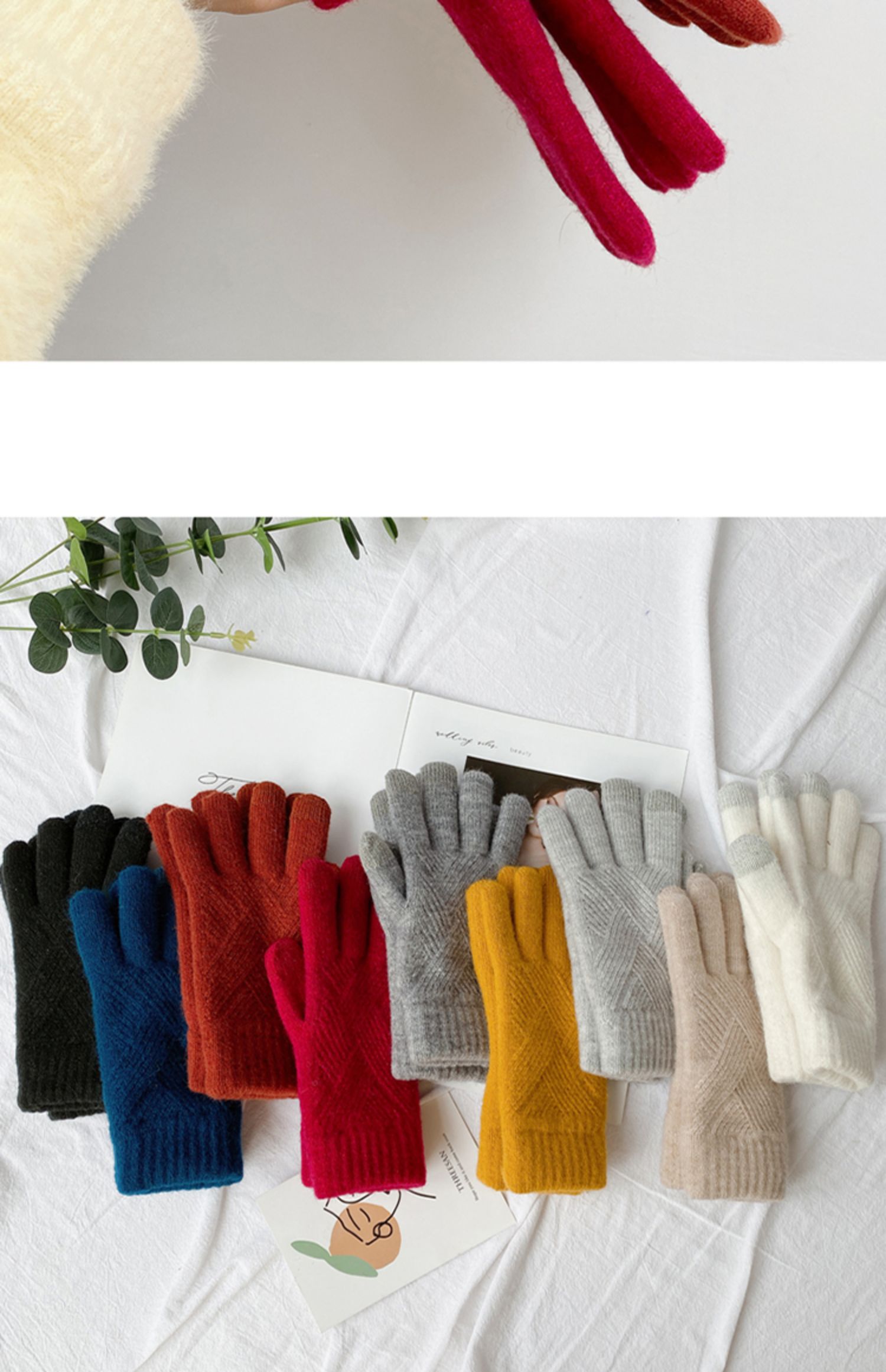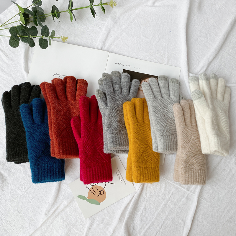Модные демисезонные перчатки из искусственного меха, демисезонный удерживающий тепло трикотажный шерстяной мужской комплект, простой и элегантный дизайн, в корейском стиле