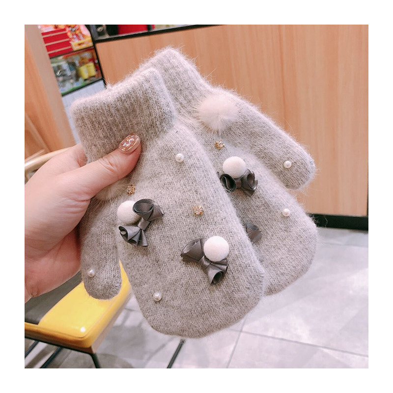 Перчатки, зимний милый шерстяной трикотажный утепленный дорожный комплект для школьников, в корейском стиле