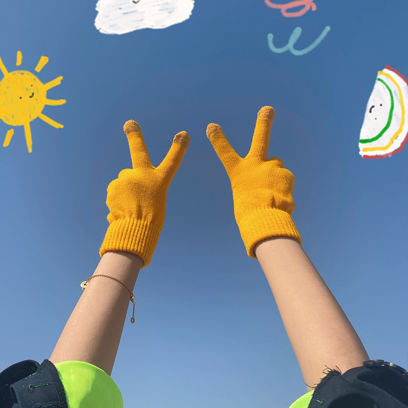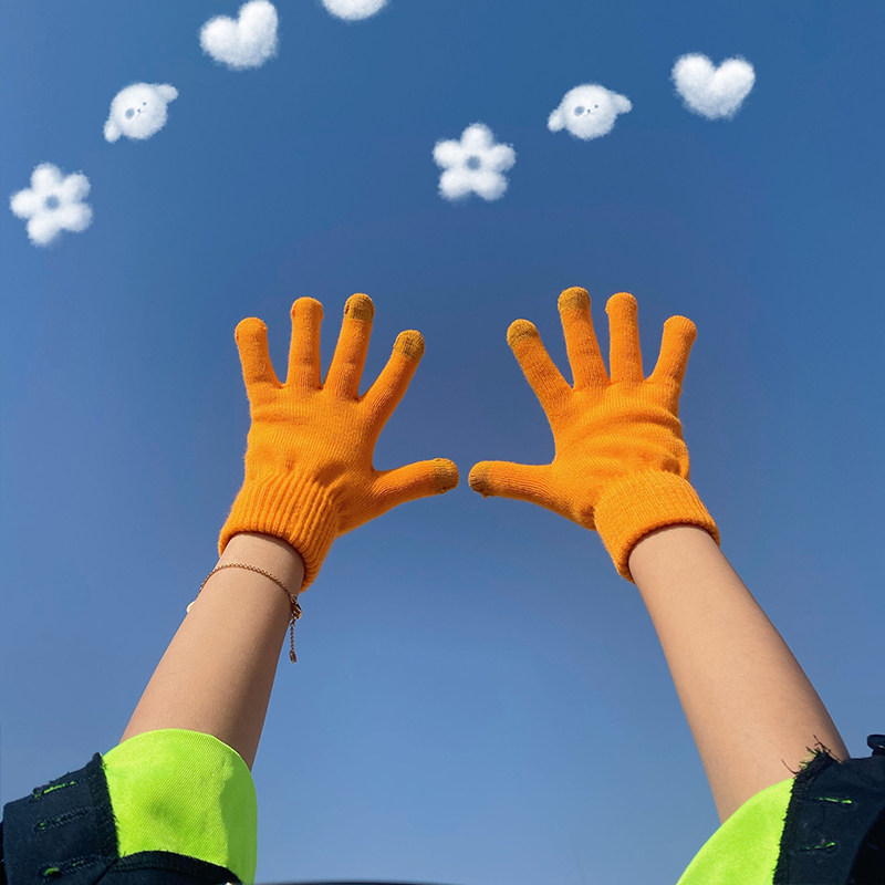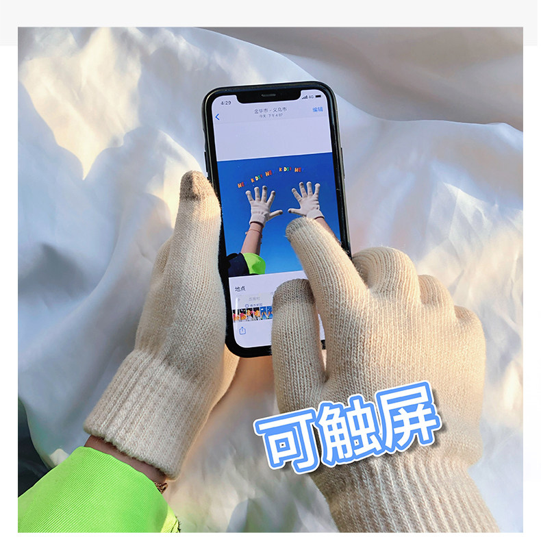 Демисезонные перчатки, удерживающий тепло универсальный брендовый японский цветной трикотажный ветрозащитный шерстяной комплект