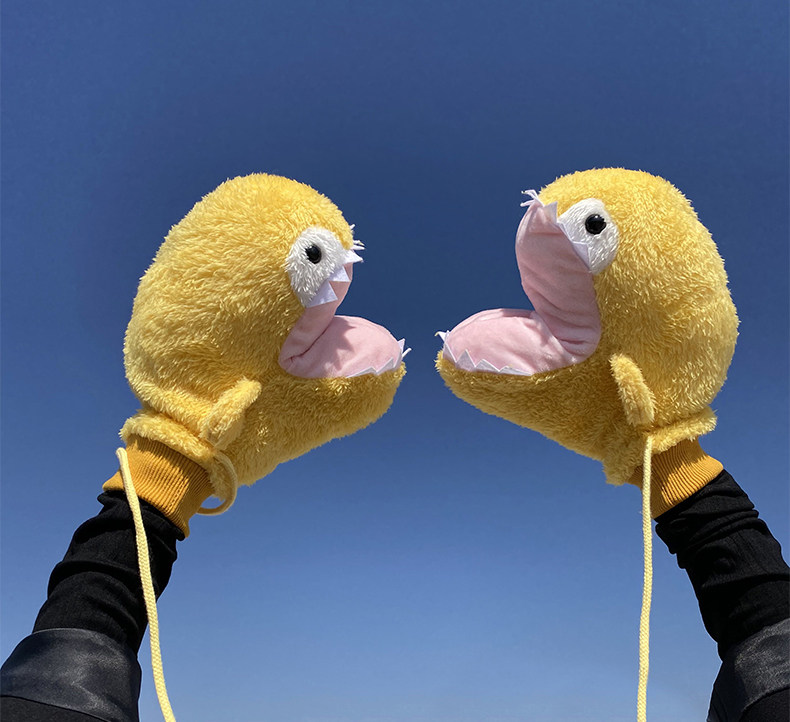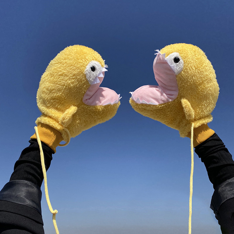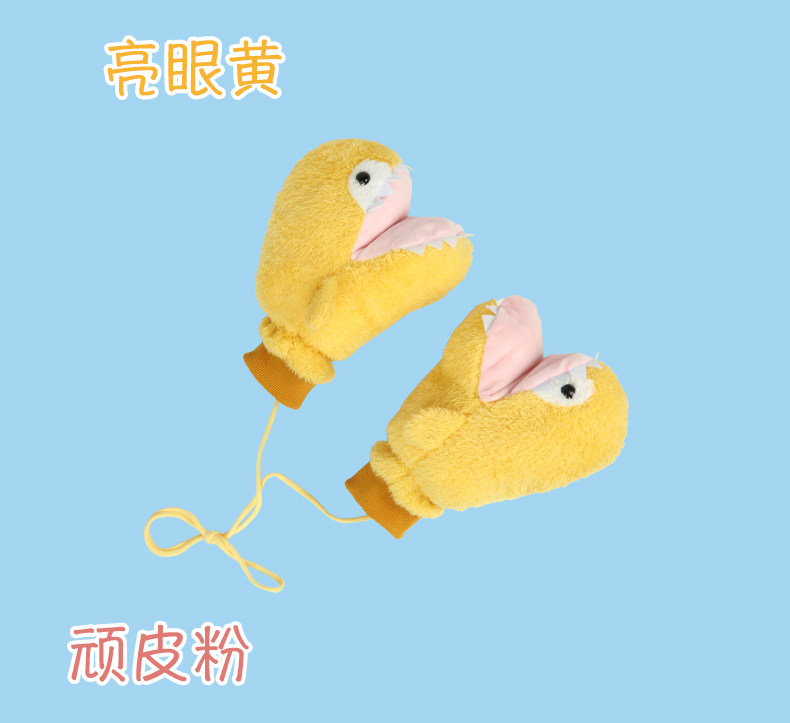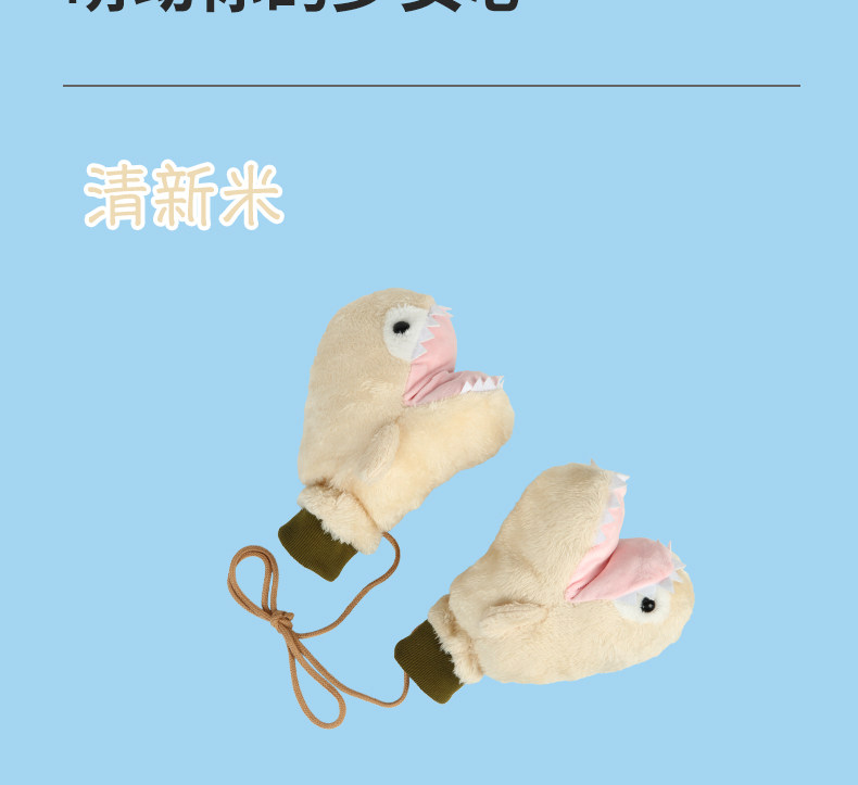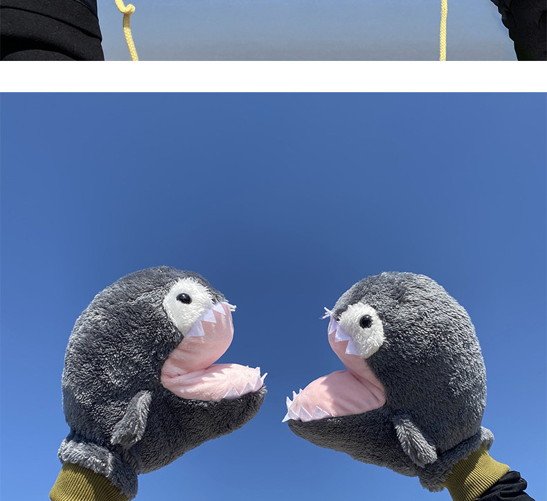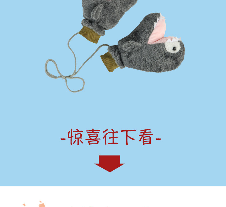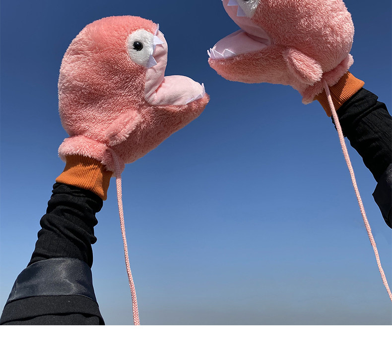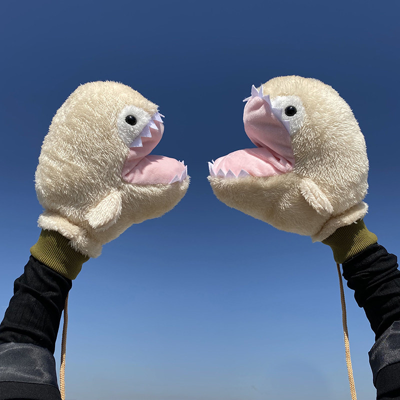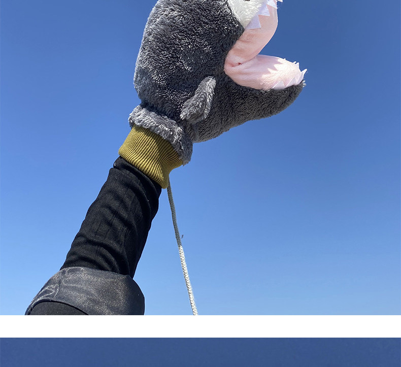 Мультяшная забавная акула, милые перчатки, зимний утепленный ветрозащитный комплект с веревкой