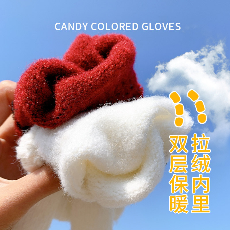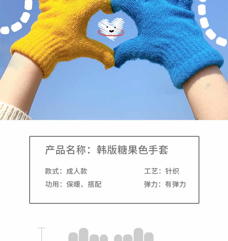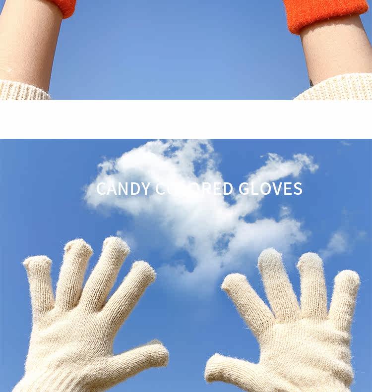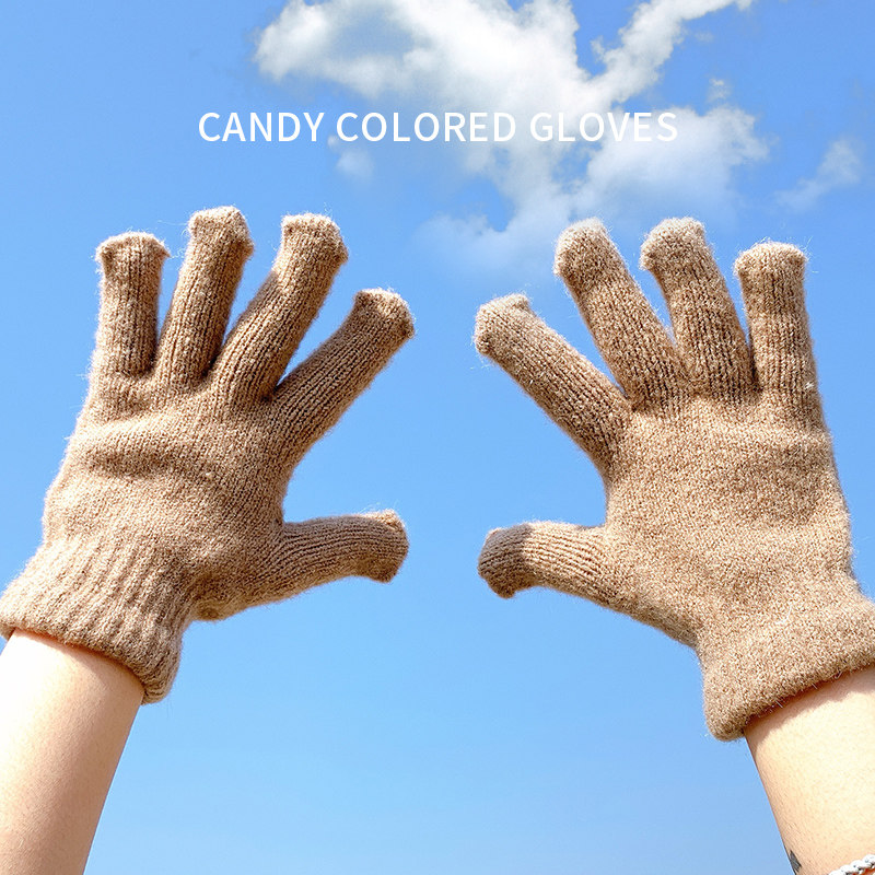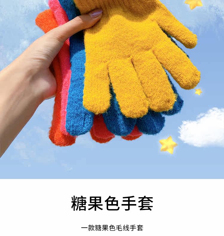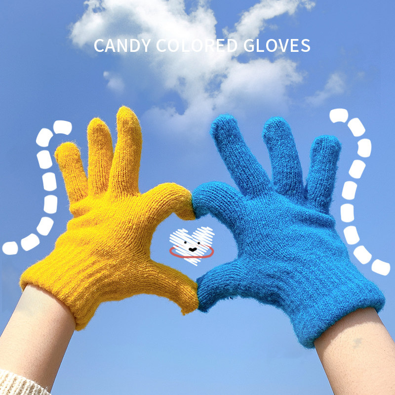 Демисезонные милые трикотажные утепленные японские брендовые перчатки подходит для мужчин и женщин, в корейском стиле
