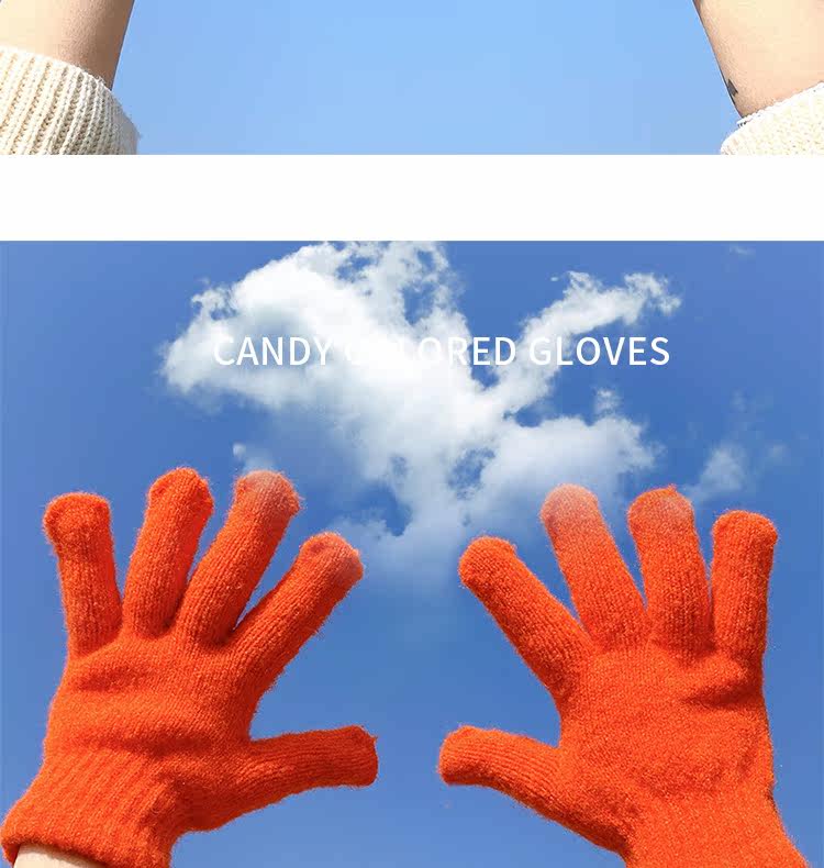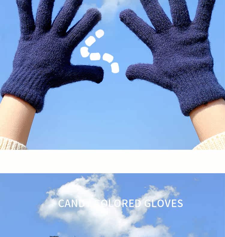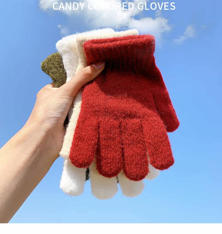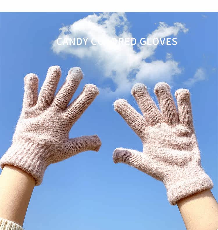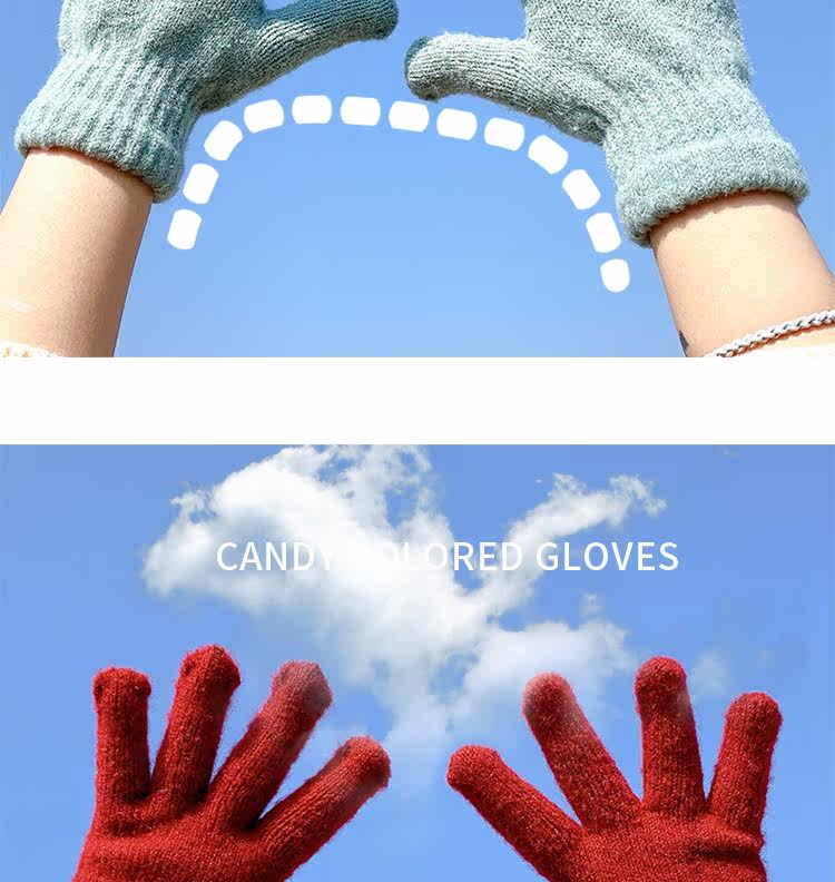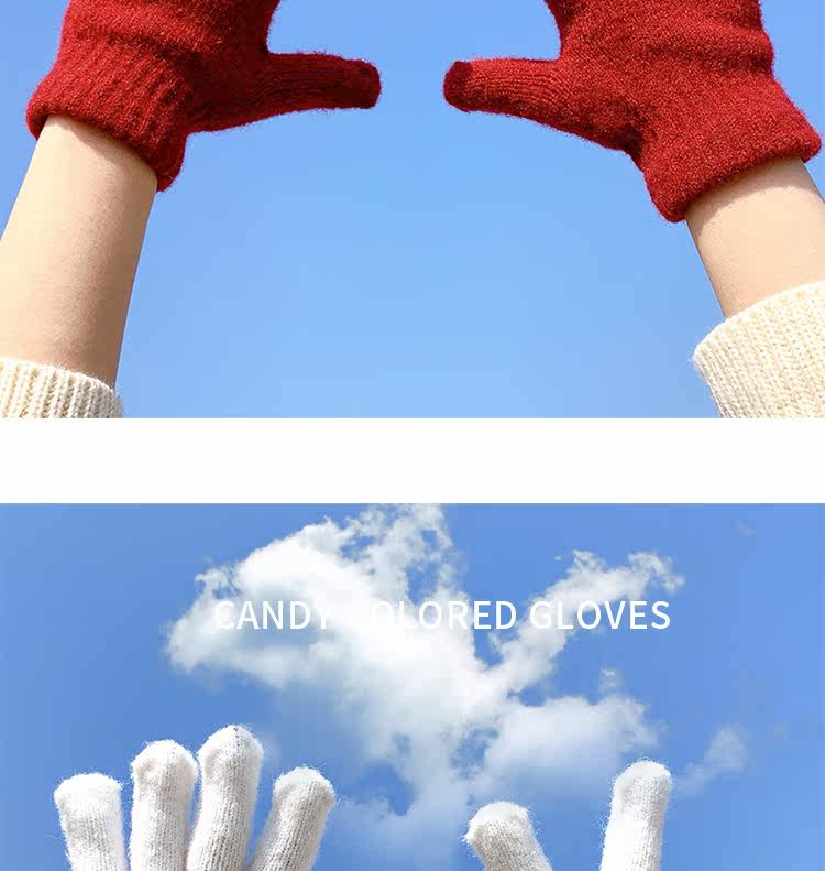 Демисезонные милые трикотажные утепленные японские брендовые перчатки подходит для мужчин и женщин, в корейском стиле