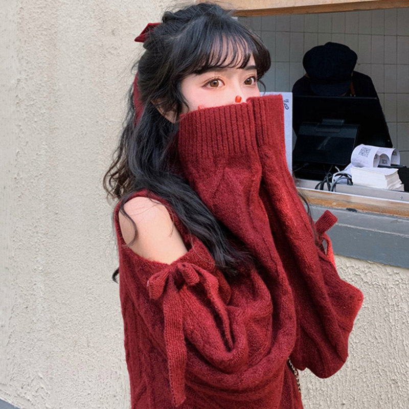 Сексуальный демисезонный трикотажный красный свитер с бантиком, платье, подходит для подростков