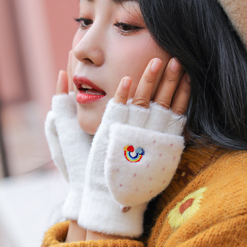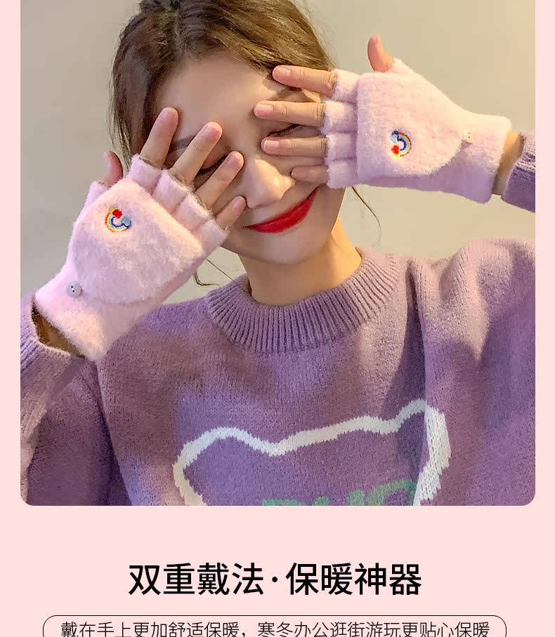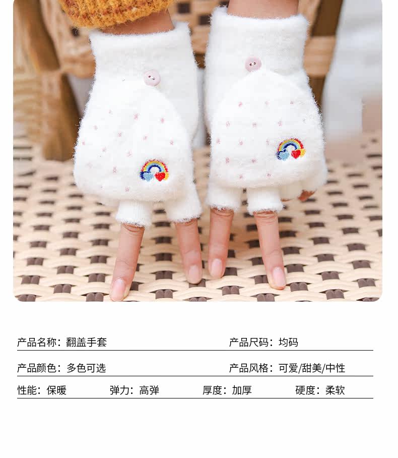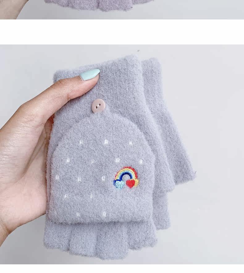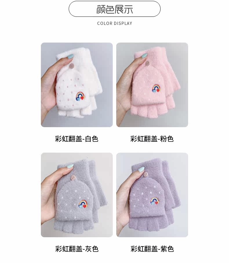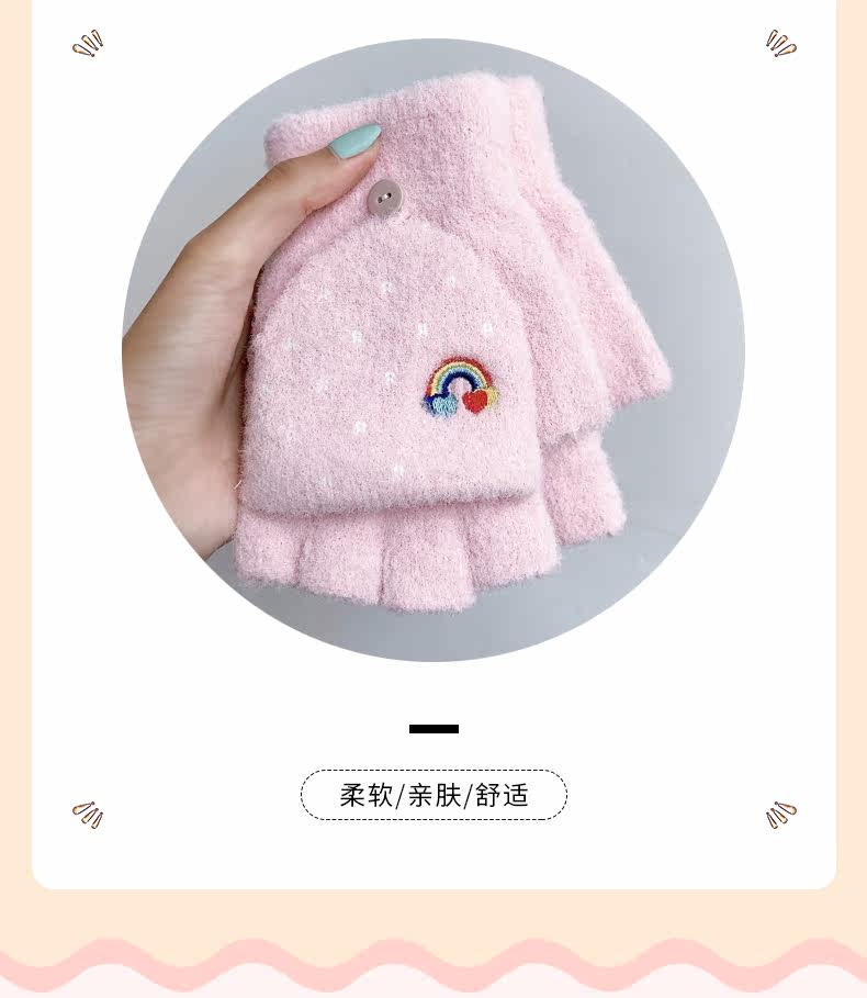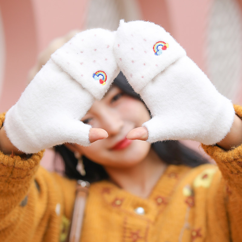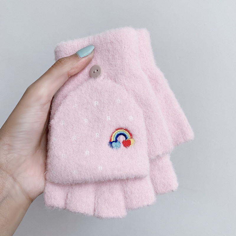 Радужные милые демисезонные зимние трикотажные удерживающие тепло универсальные перчатки, в корейском стиле