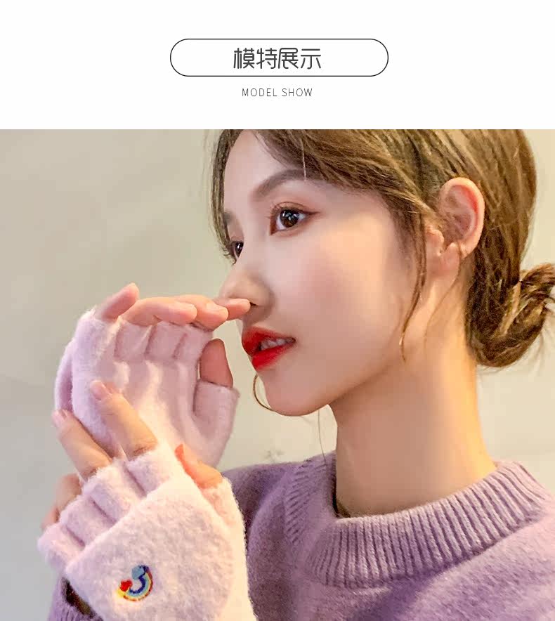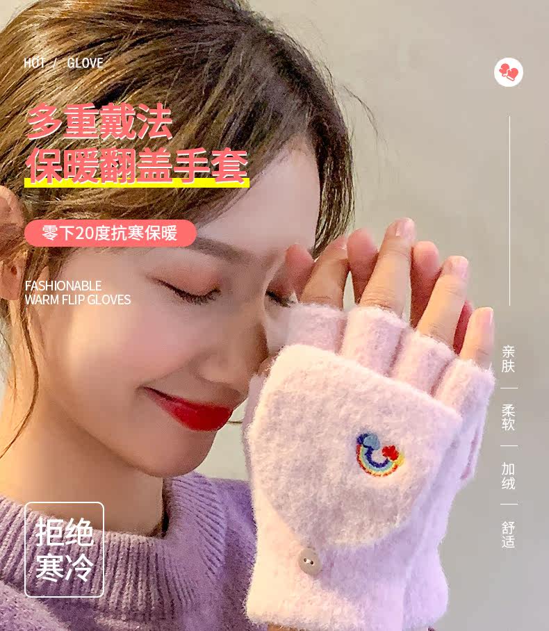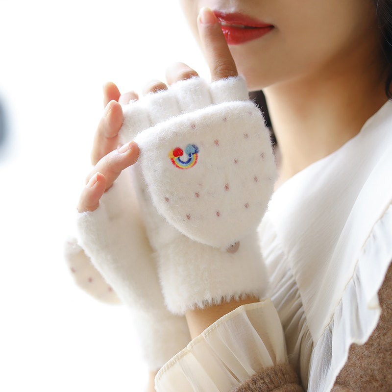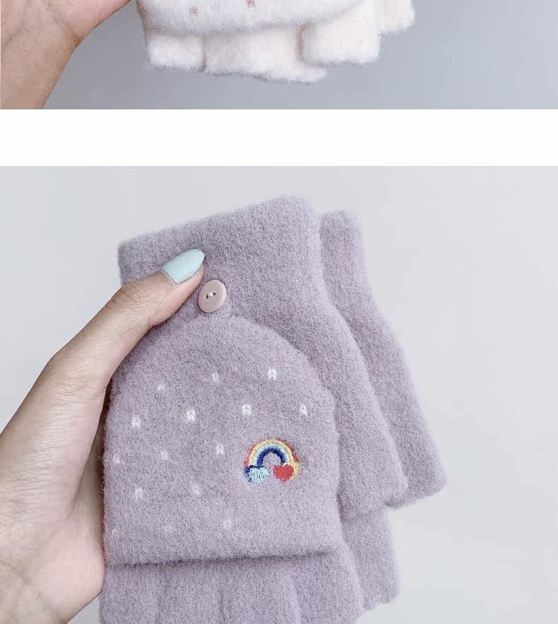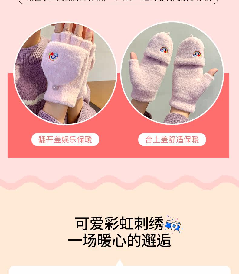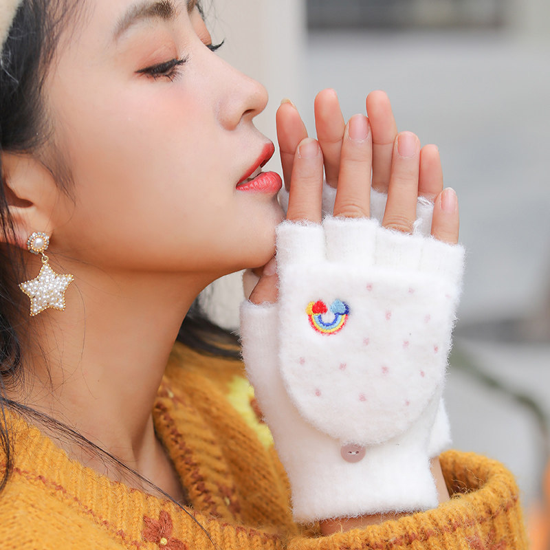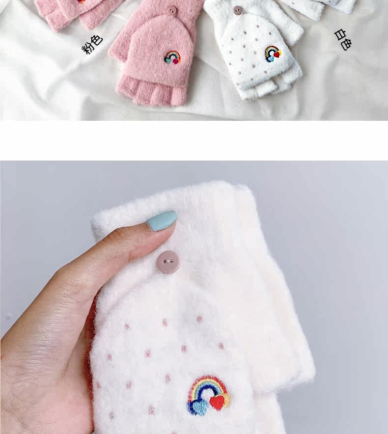 Радужные милые демисезонные зимние трикотажные удерживающие тепло универсальные перчатки, в корейском стиле