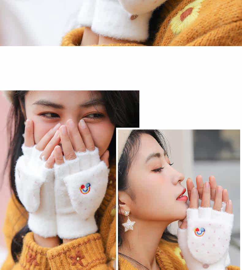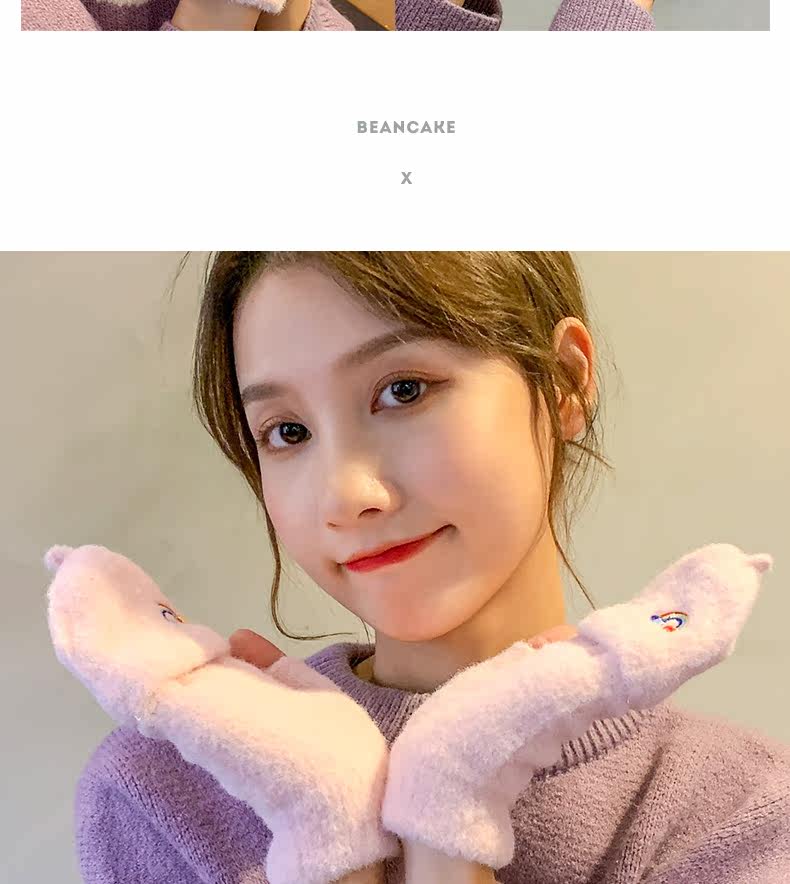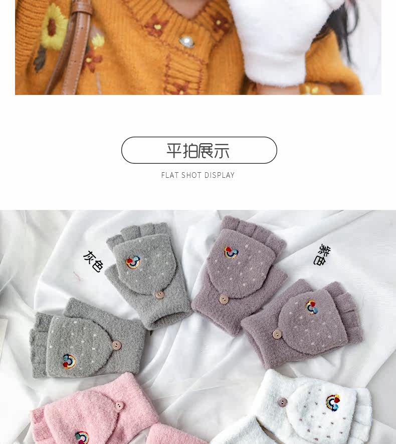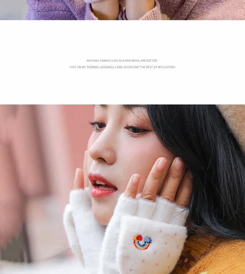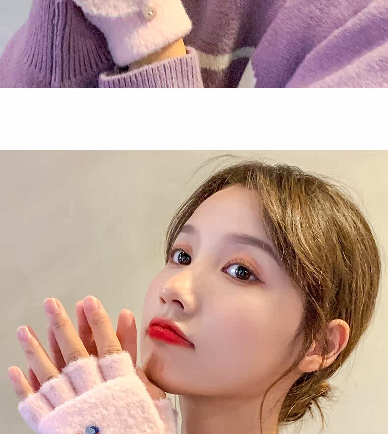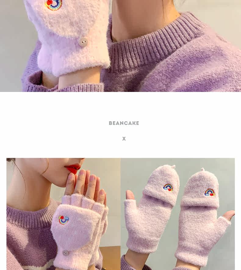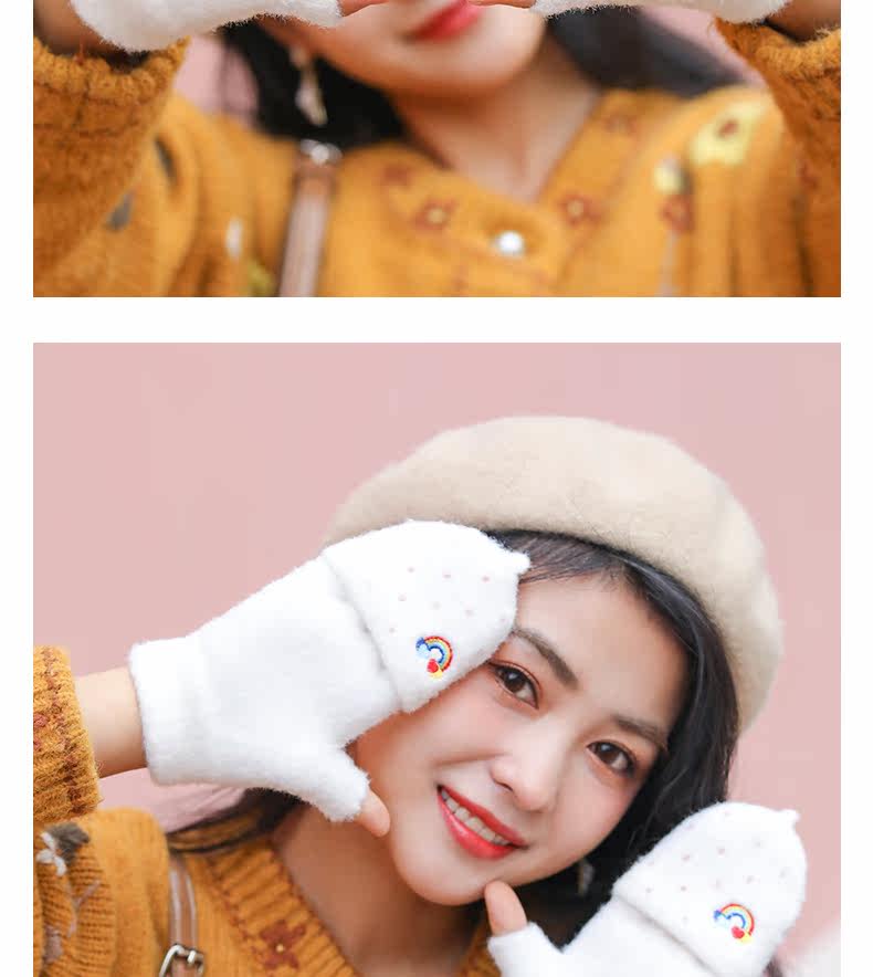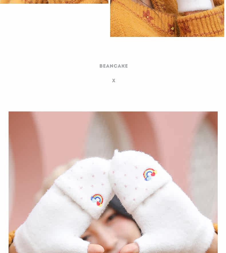 Радужные милые демисезонные зимние трикотажные удерживающие тепло универсальные перчатки, в корейском стиле