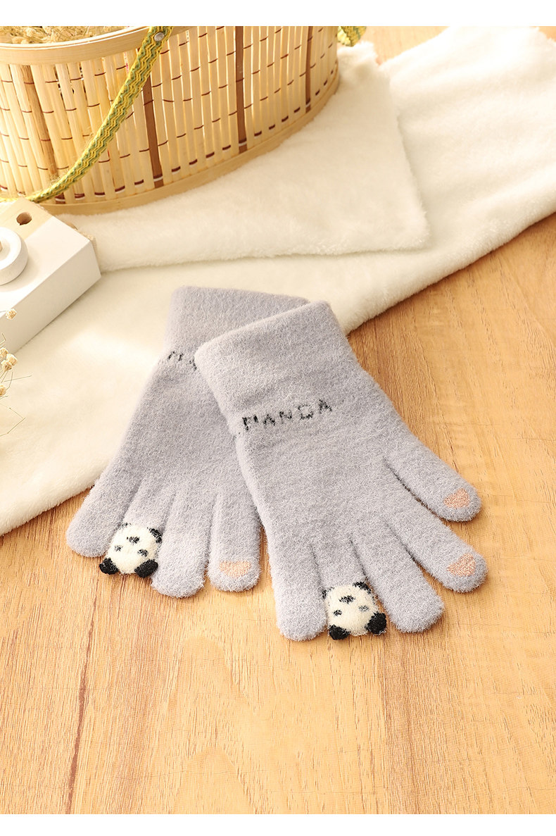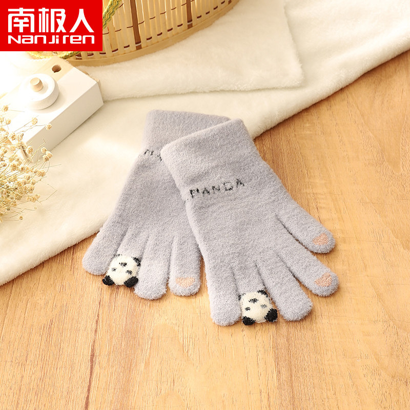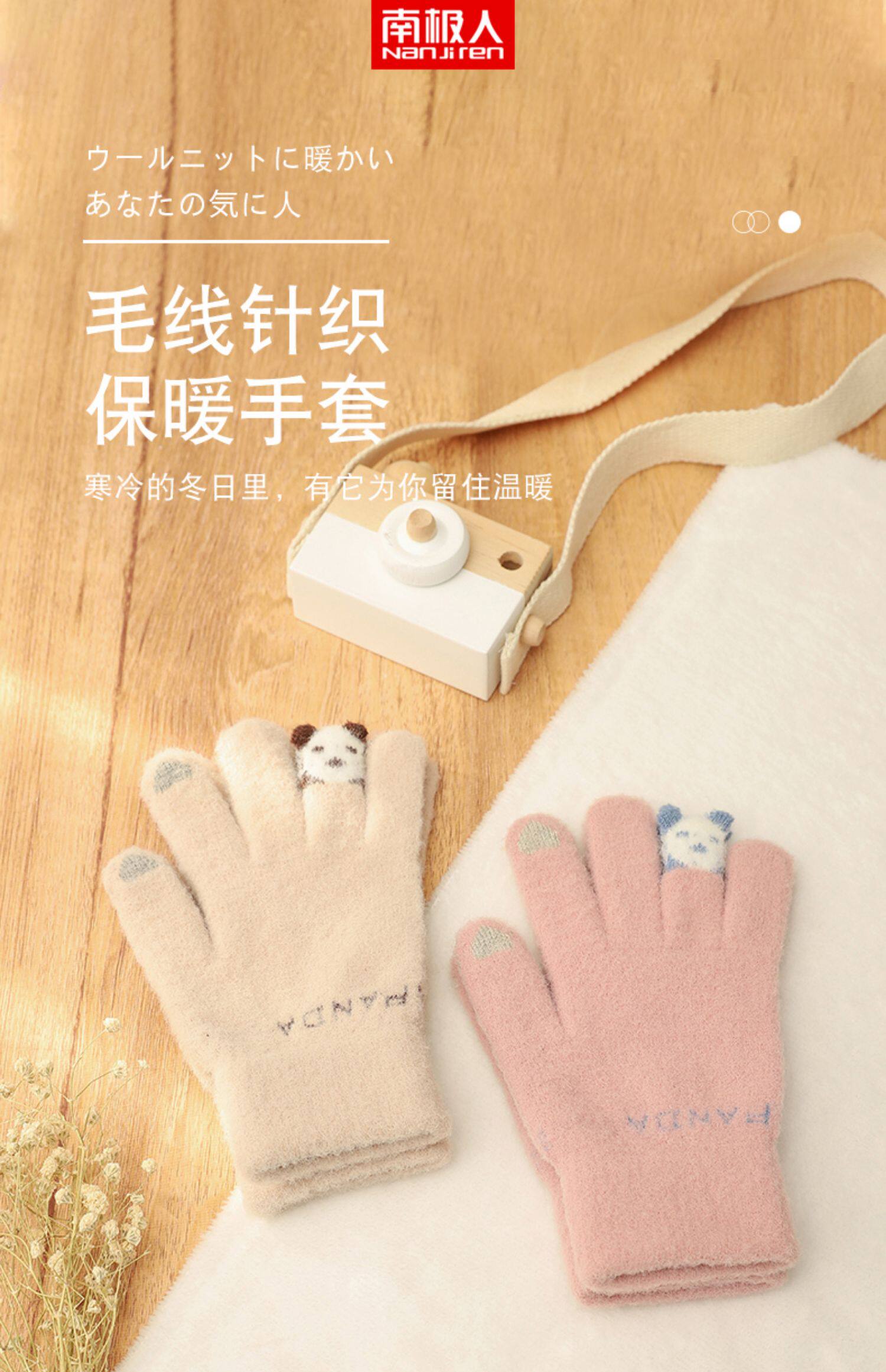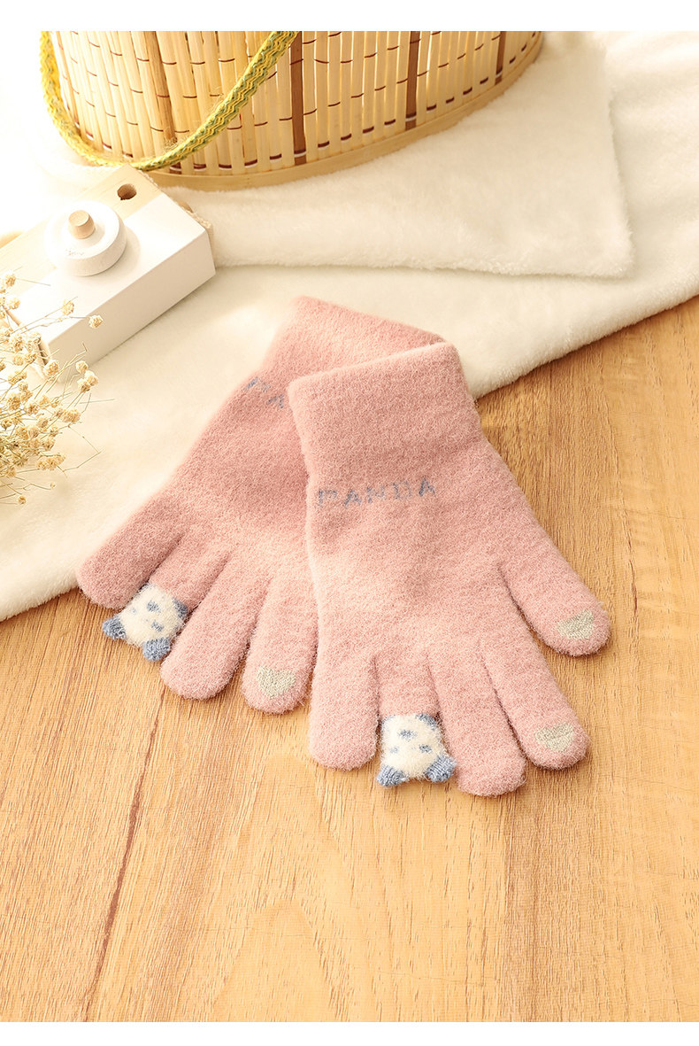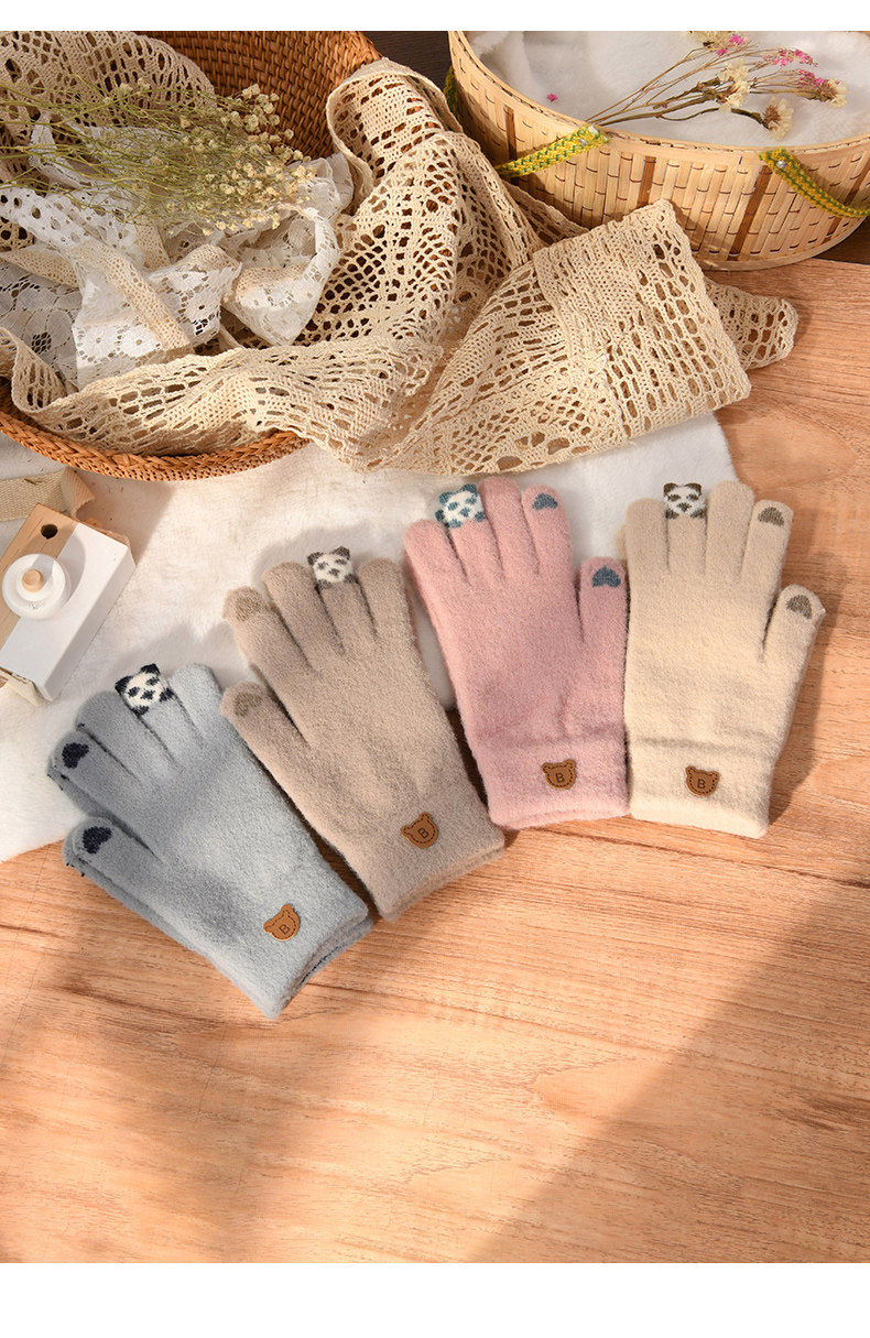 Зимние японские милые трикотажные дорожные утепленные перчатки, с медвежатами