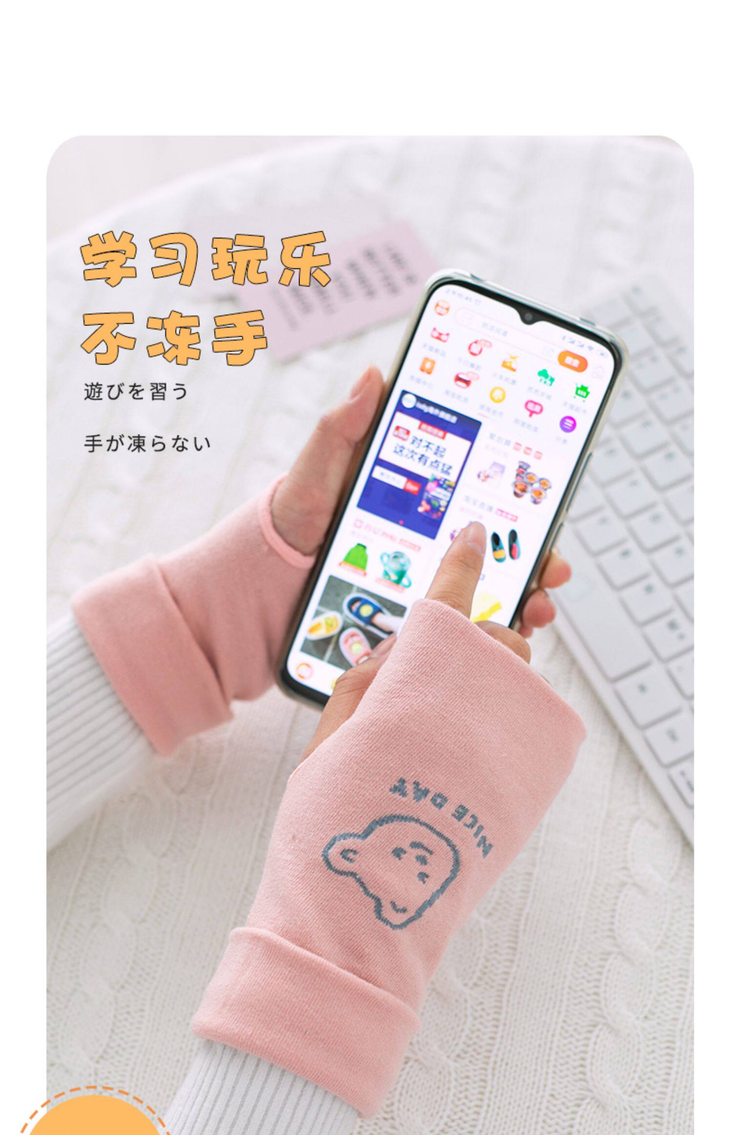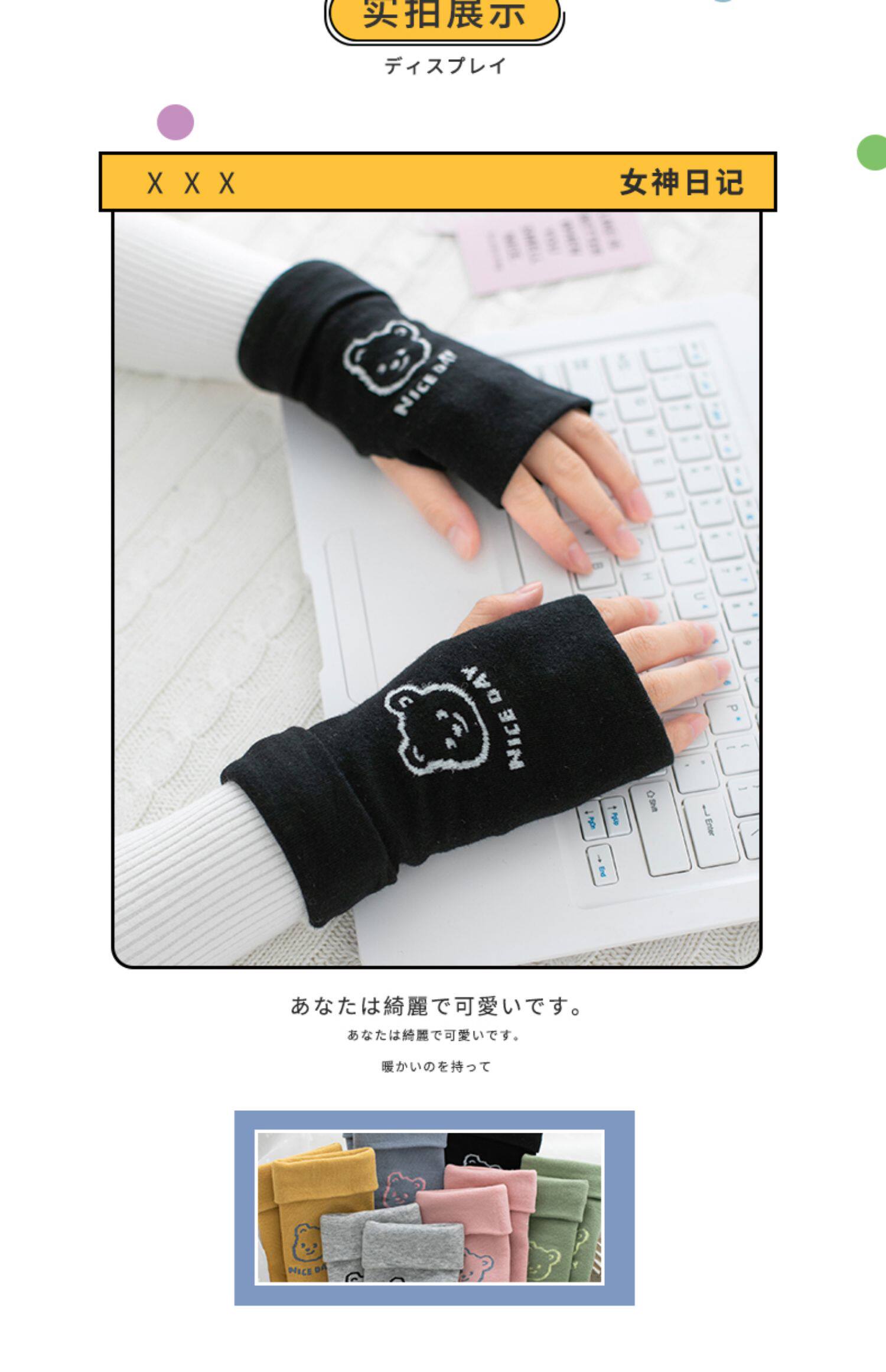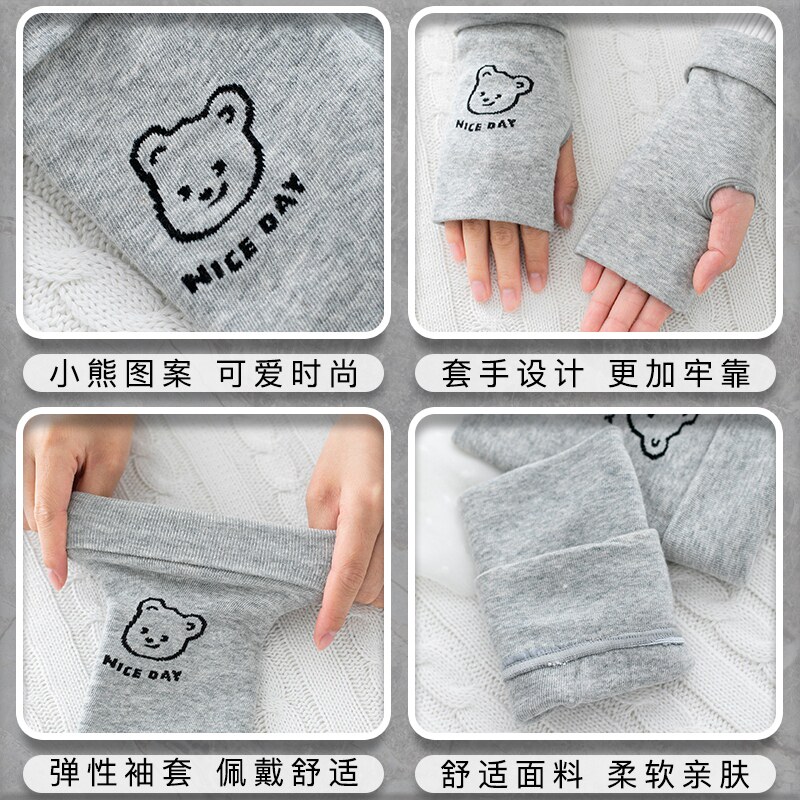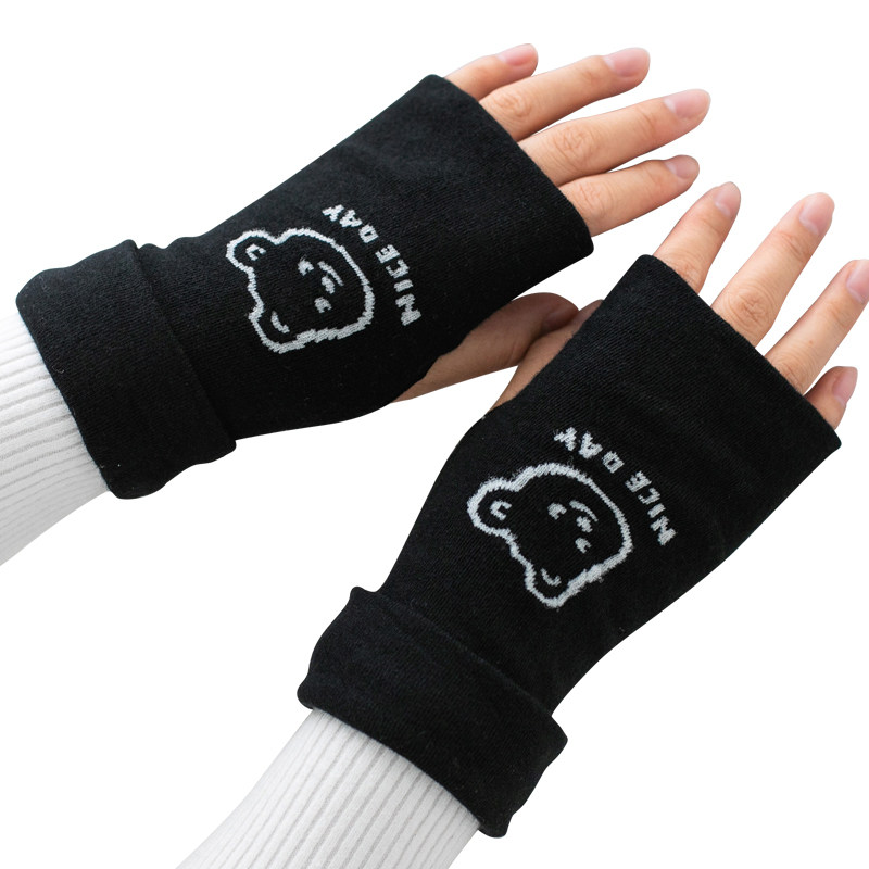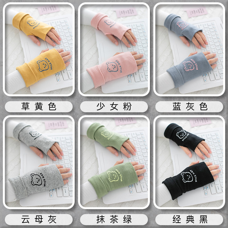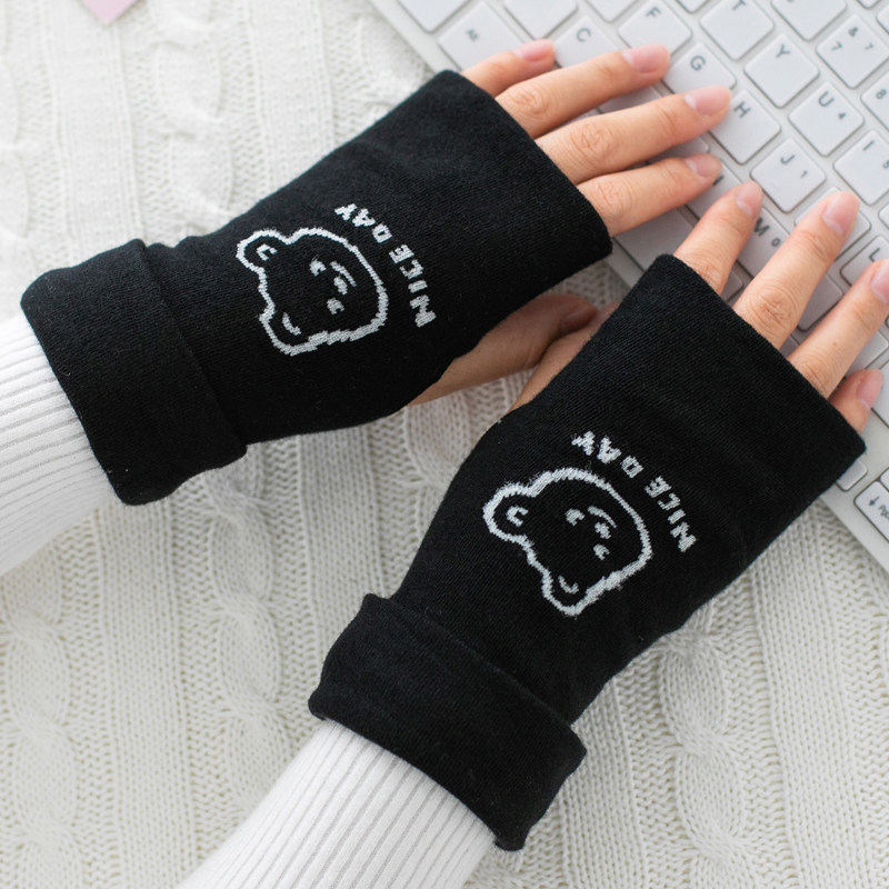 Демисезонные перчатки, мужской короткий милый удерживающий тепло зимний тонкий комплект для школьников, без пальцев