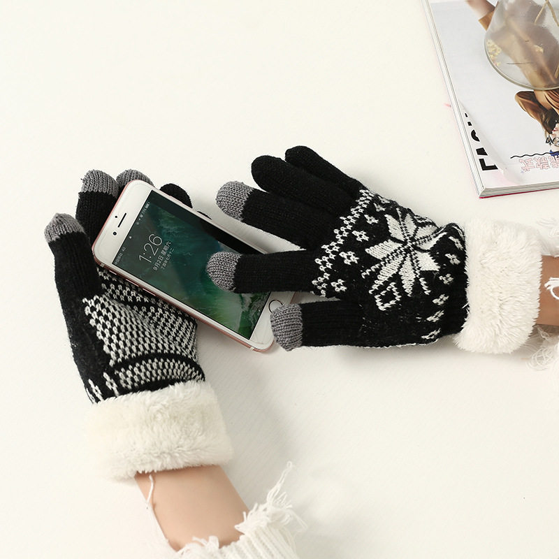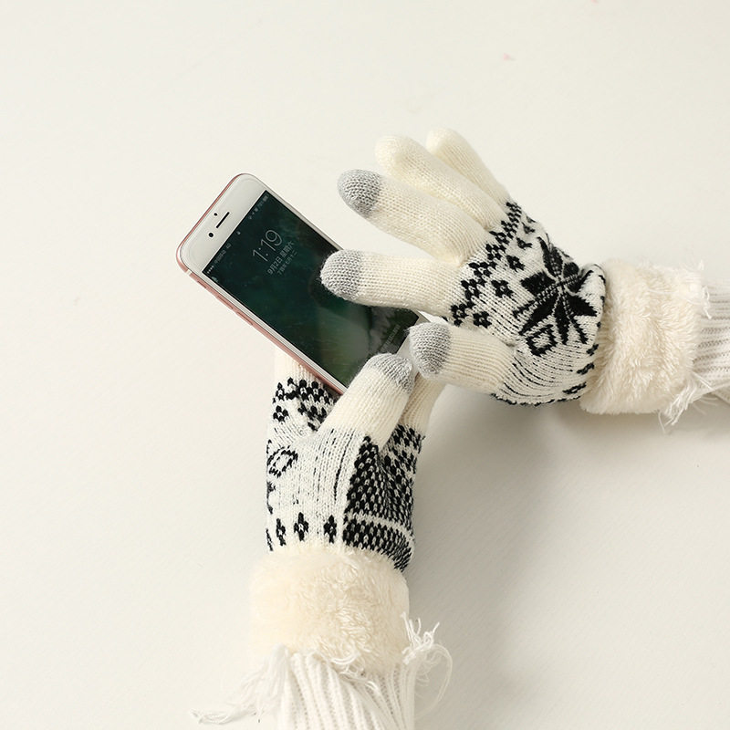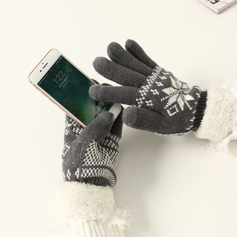 Демисезонные утепленные удерживающие тепло комфортные трикотажные перчатки, со снежинками