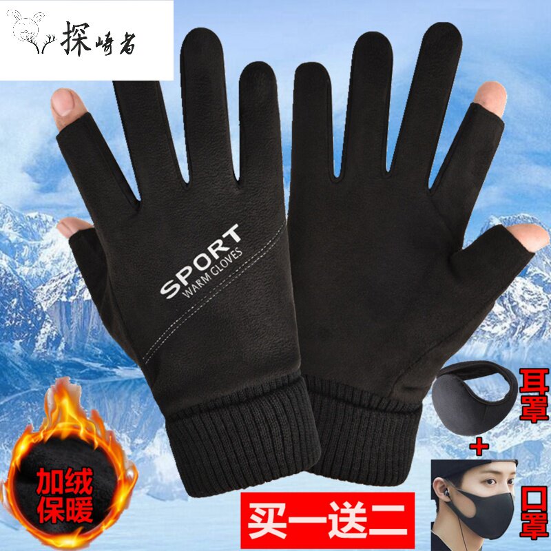 Удерживающие тепло мужские демисезонные флисовые нескользящие перчатки, без пальцев