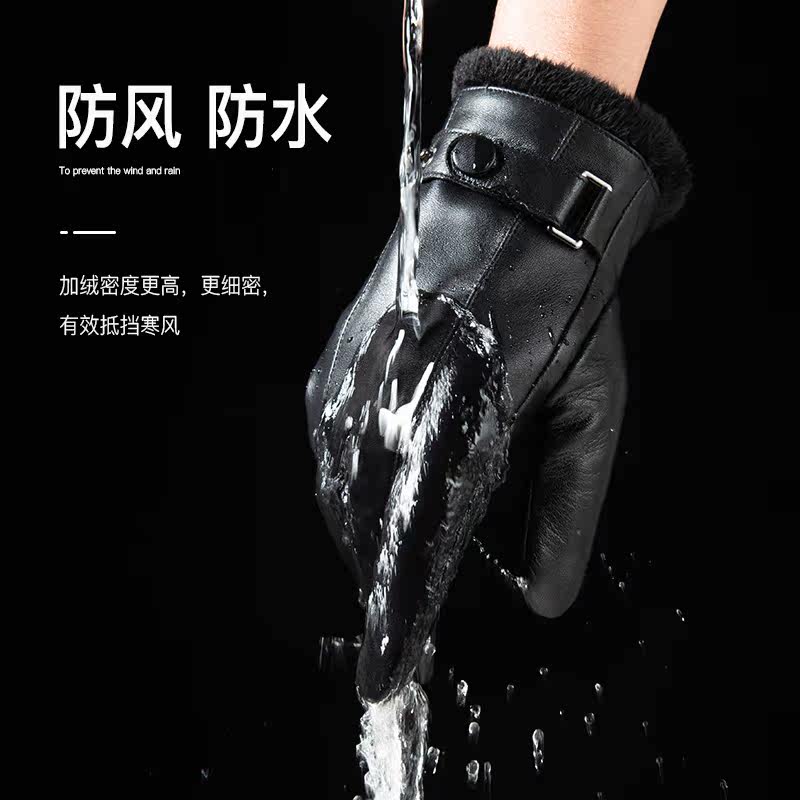 Мужские зимние утепленные перчатки, из натуральной кожи