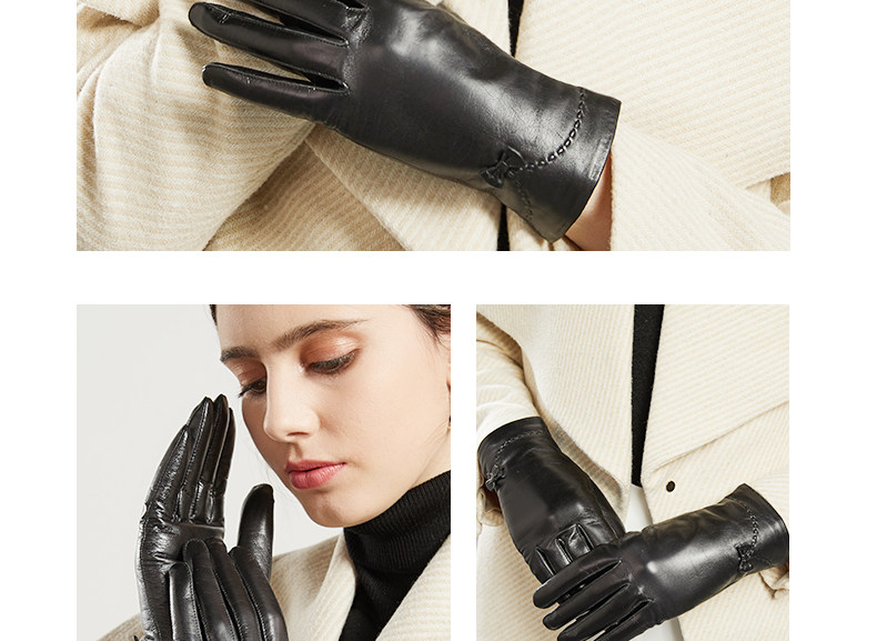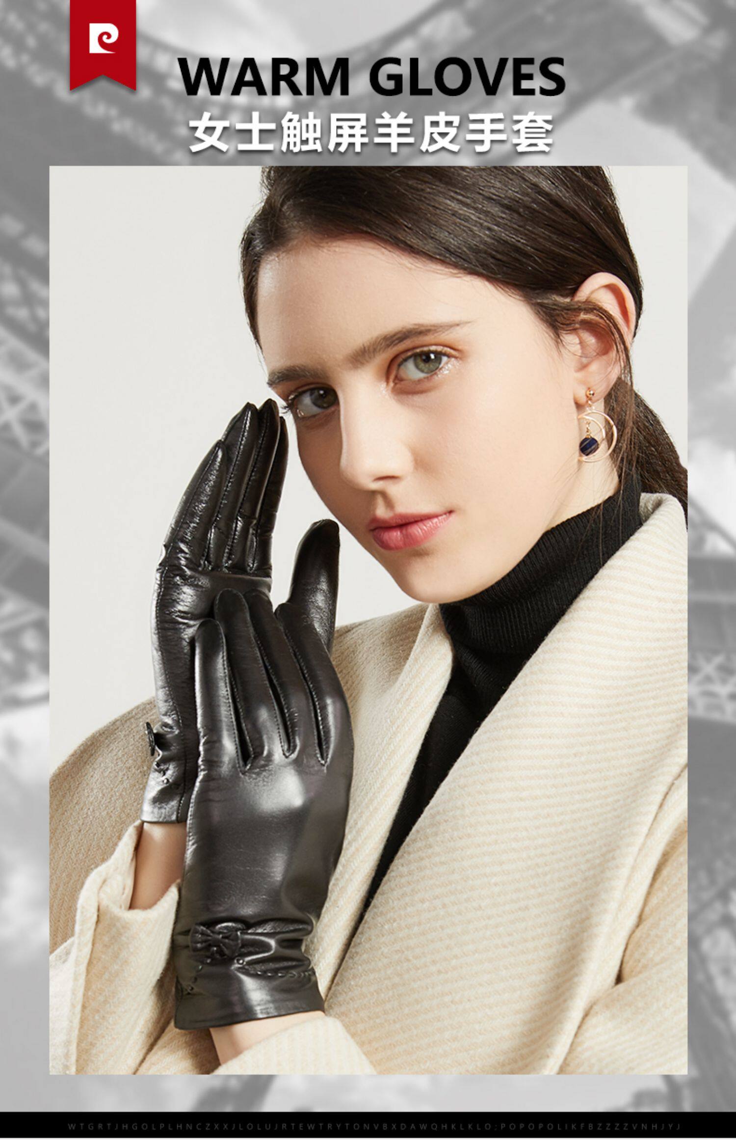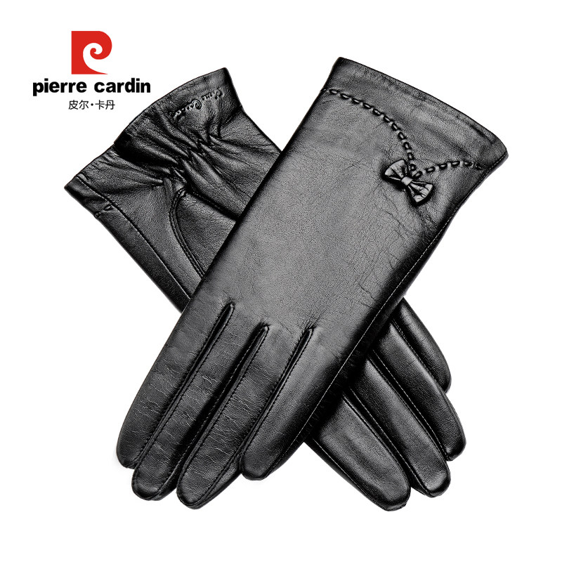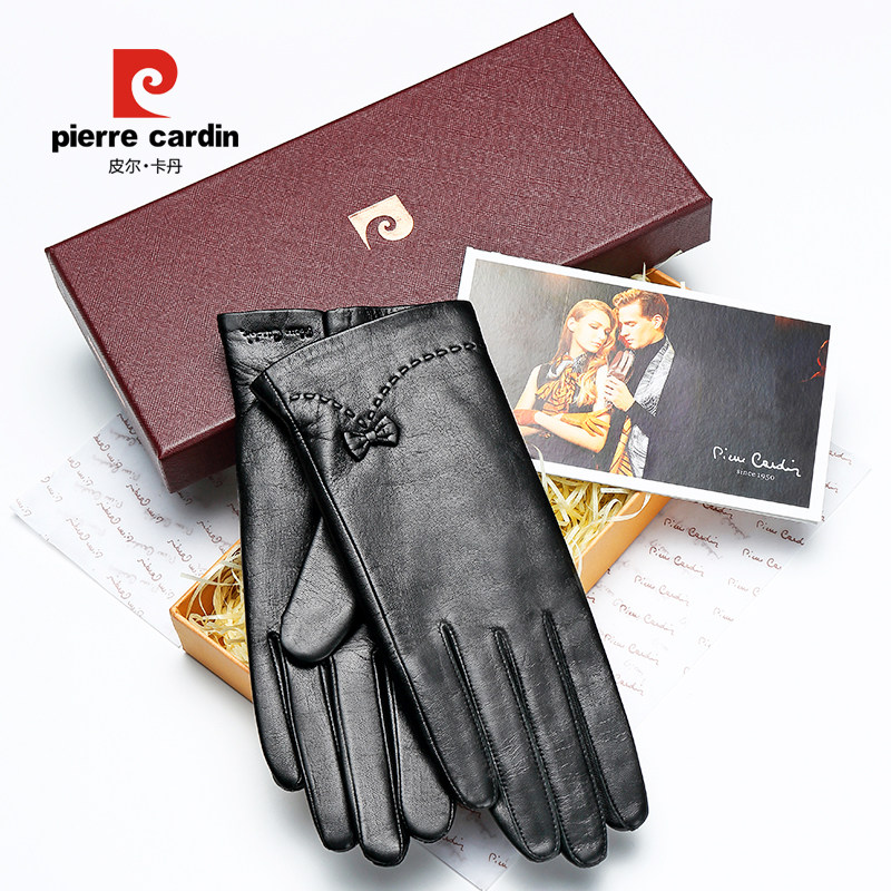 Пьер Кардин Кожаные перчатки Женщины зимой плюс бархатная теплая перчатка езда на сенсорный экран