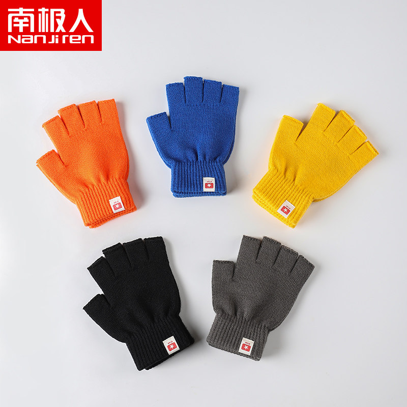 Зимние удерживающие тепло трикотажные мужские ветрозащитные перчатки, без пальцев, осенние