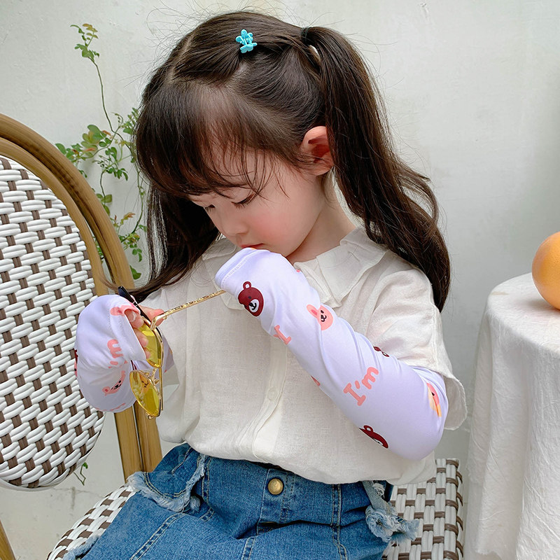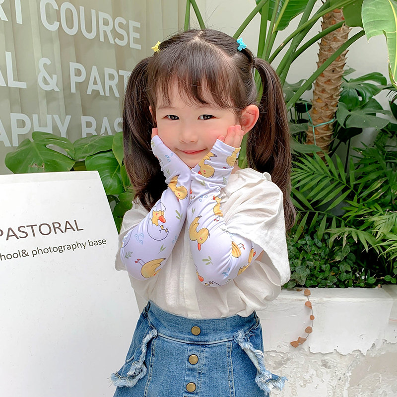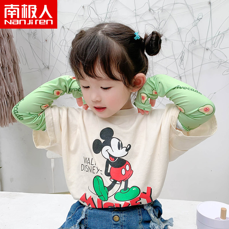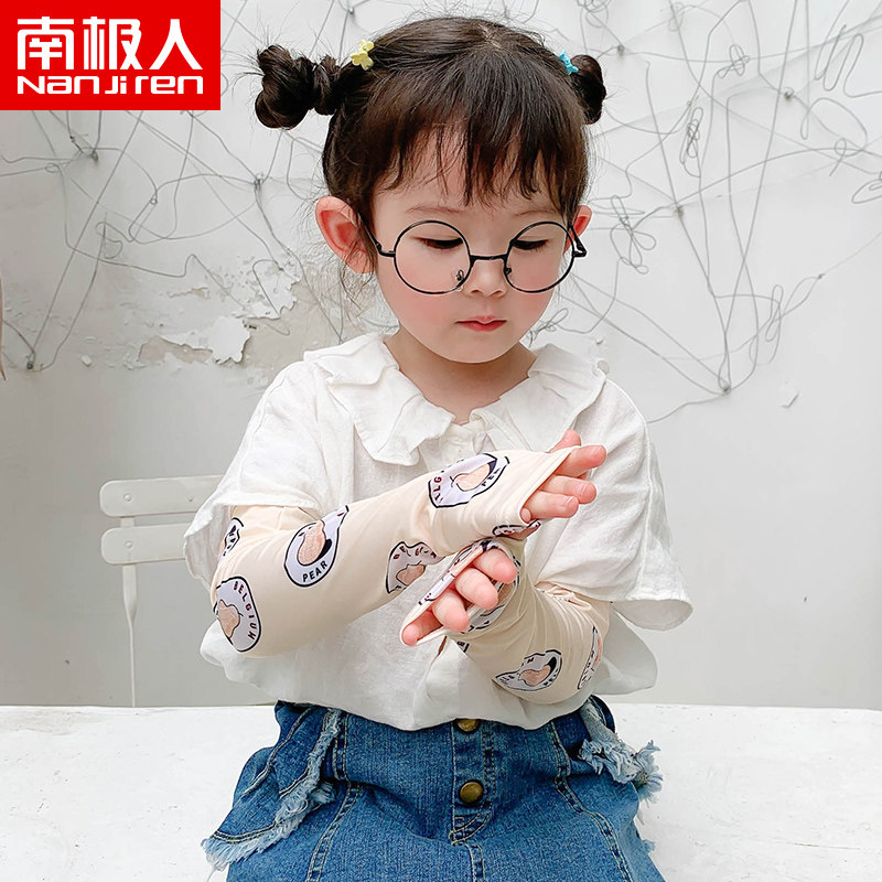 南极人 Детский солнцезащитный крем, летние перчатки для выхода на улицу, шелковый милый лонгслив подходит для мужчин и женщин, тонкие дышащие нарукавники, принт