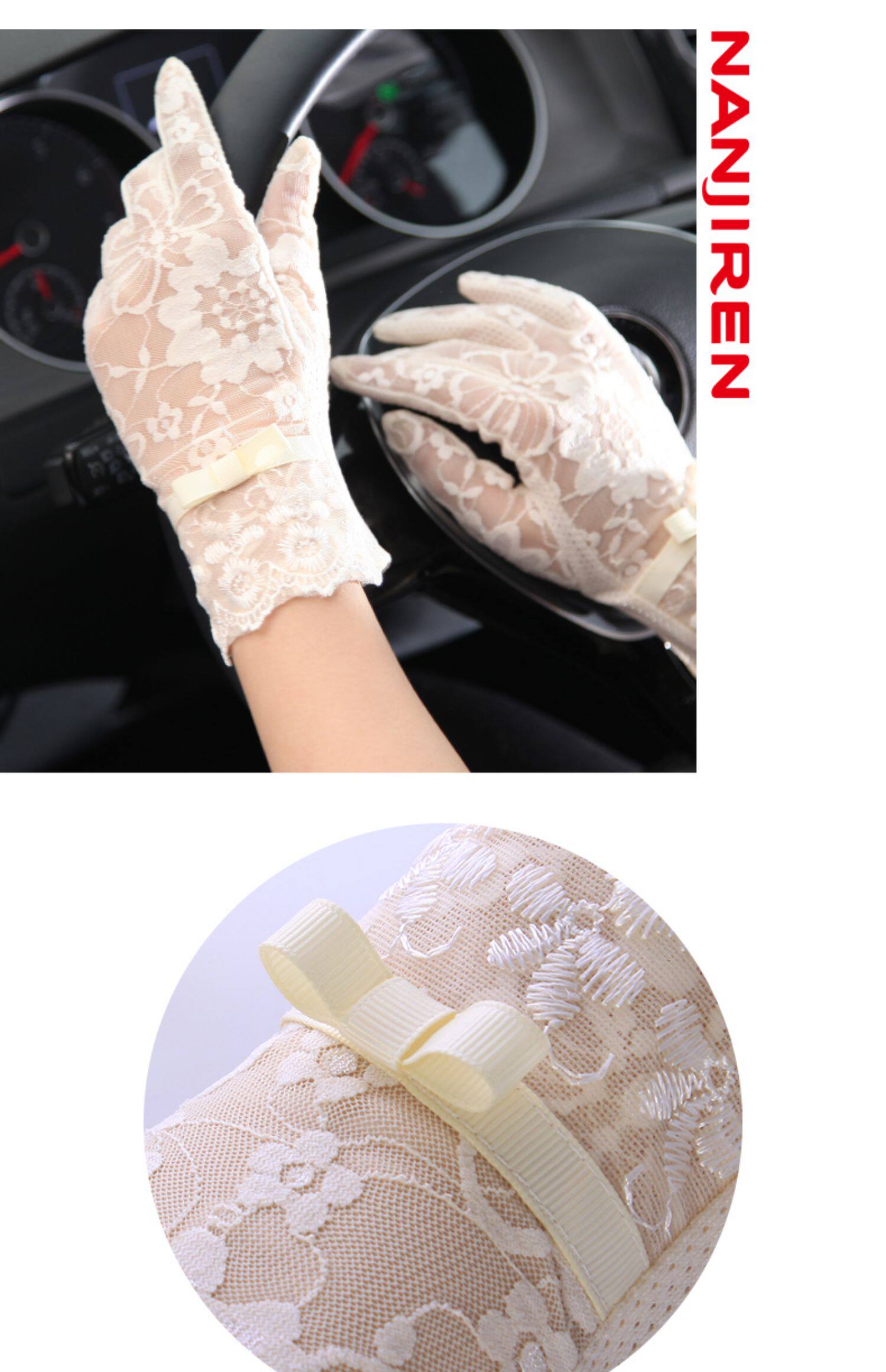 南极人 Летние перчатки, кружевной нескользящий элегантный комплект для выхода на улицу, защита от солнца, кружевное платье