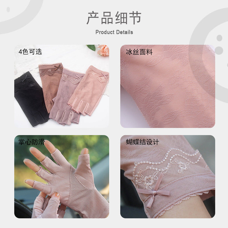 Летние тонкие шелковые перчатки, дышащее кольцо, без пальцев, в корейском стиле, защита от ультрафиолета