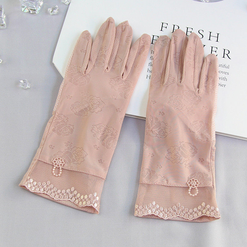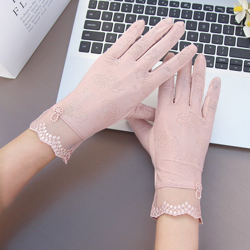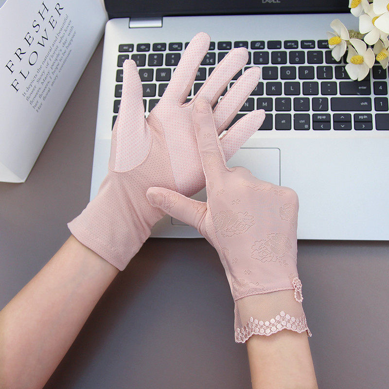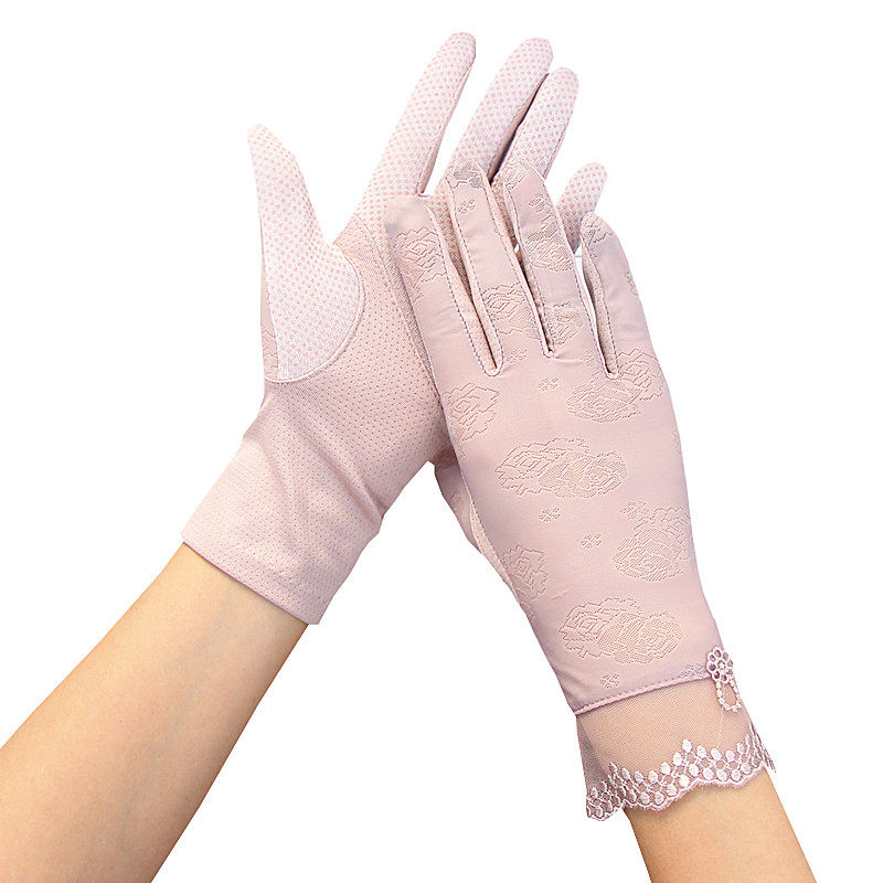 Перчатки, тонкий летний короткий нескользящий дышащий кружевной сексуальный эластичный шелковый комплект, защита от солнца