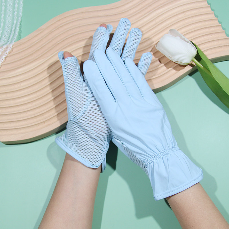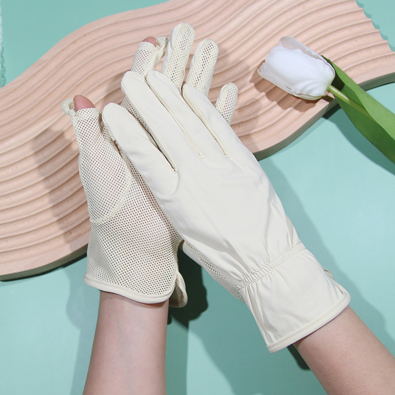Перчатки, шелковый дорожный нескользящий дышащий тонкий короткий летний комплект, защита от солнца