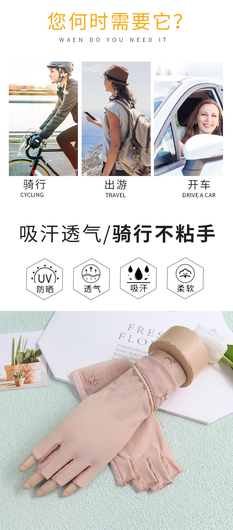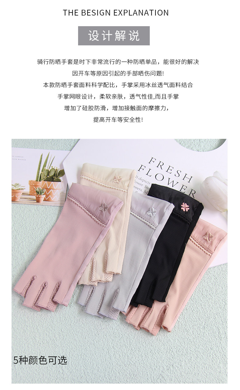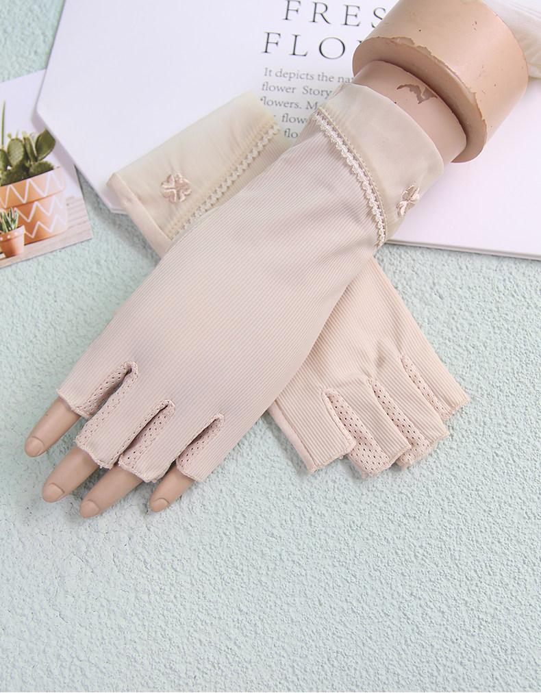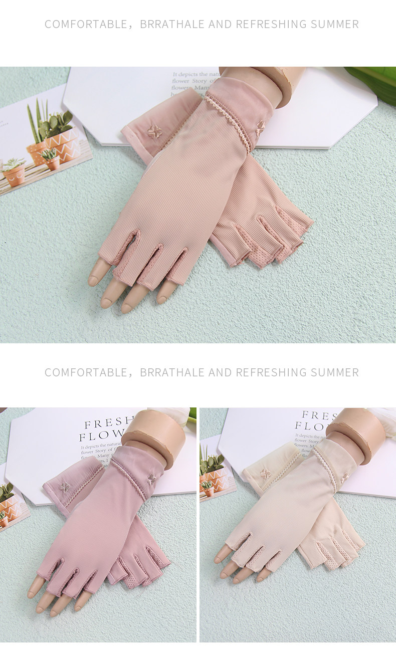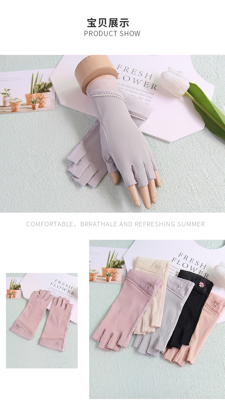 Перчатки, тонкий короткий шелковый эластичный нескользящий летний комплект для маникюра, защита от солнца, без пальцев