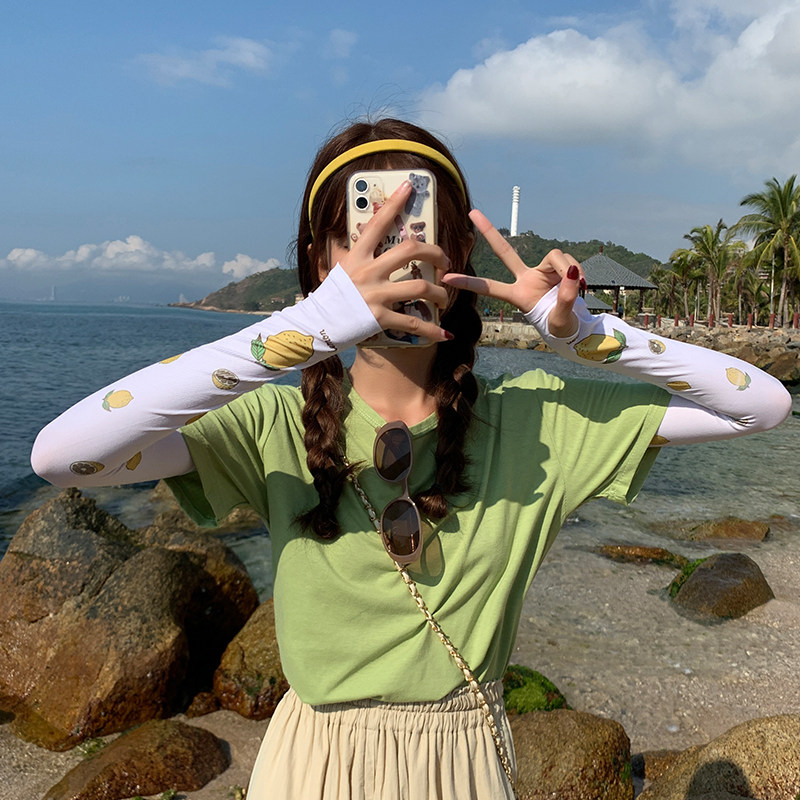 Милые шелковые летние нарукавники, принт, защита от солнца, защита от ультрафиолета