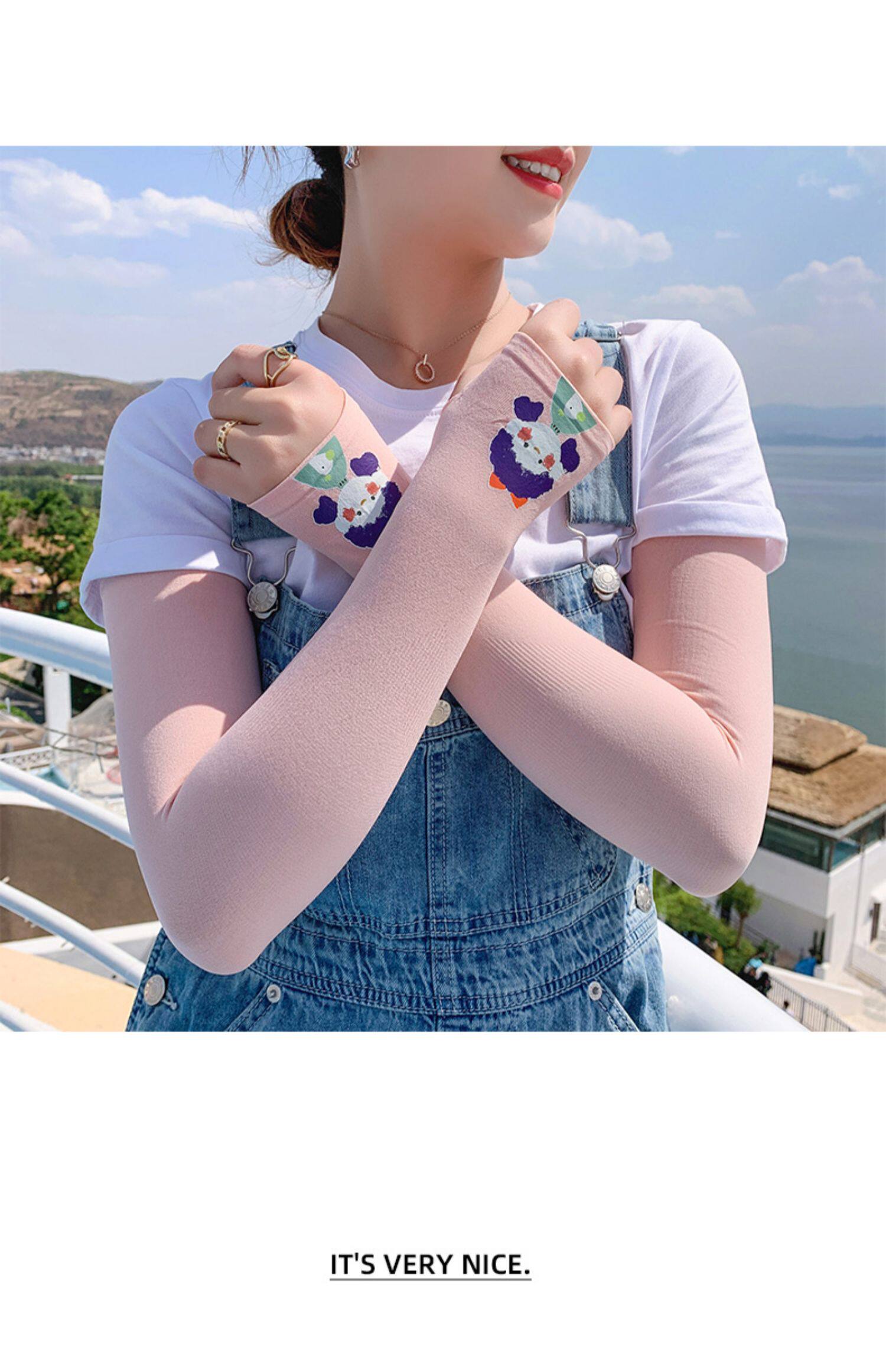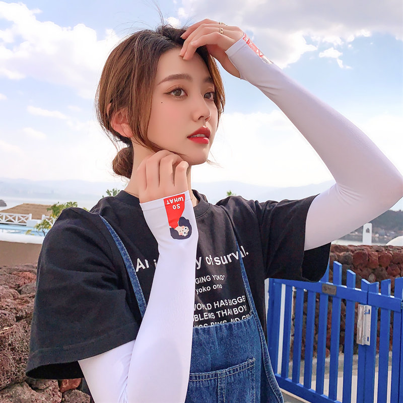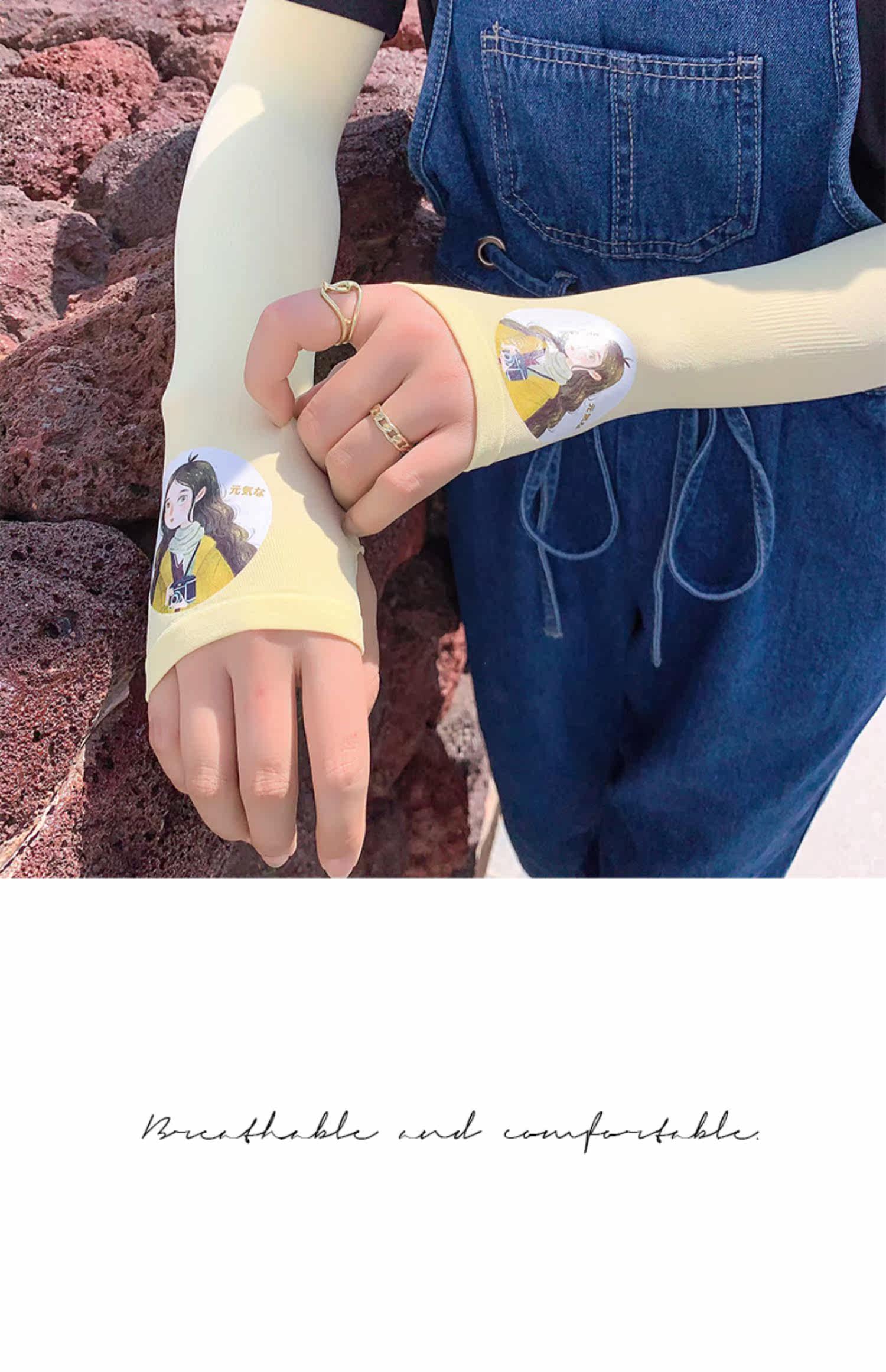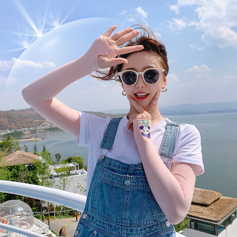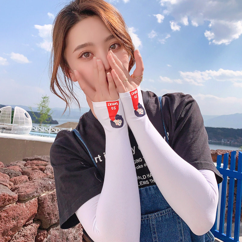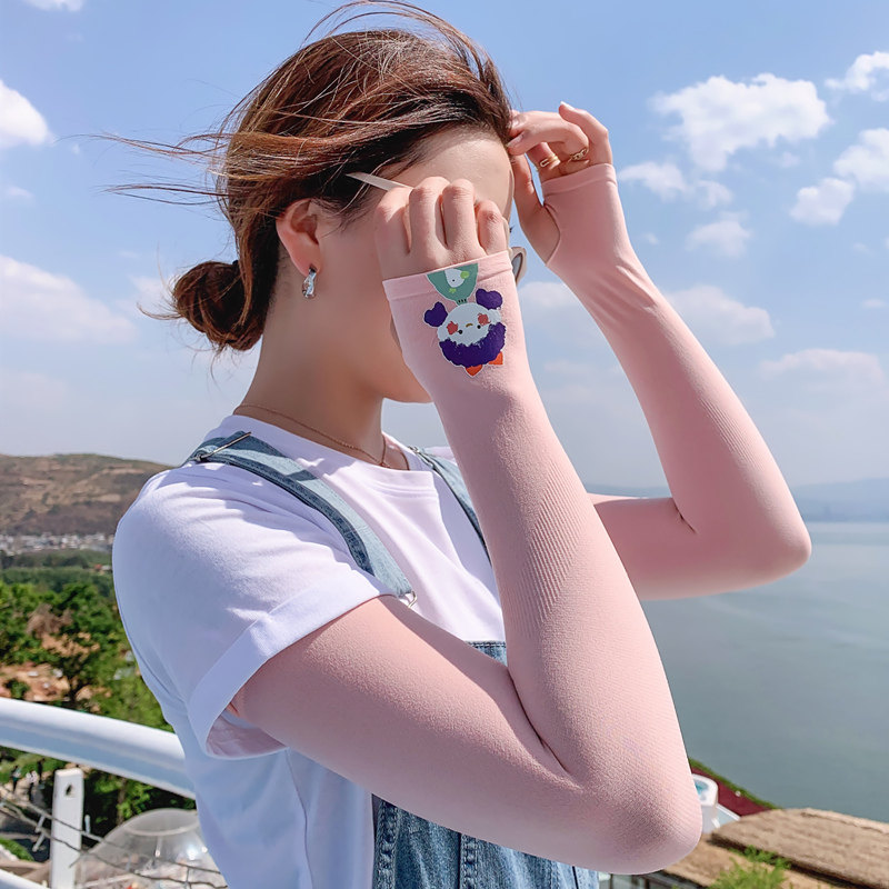 Летний защитный рукав, нарукавники, комплект, шелковый мультяшный крем для рук для велоспорта, тонкие перчатки, защита от солнца, УФ-защита