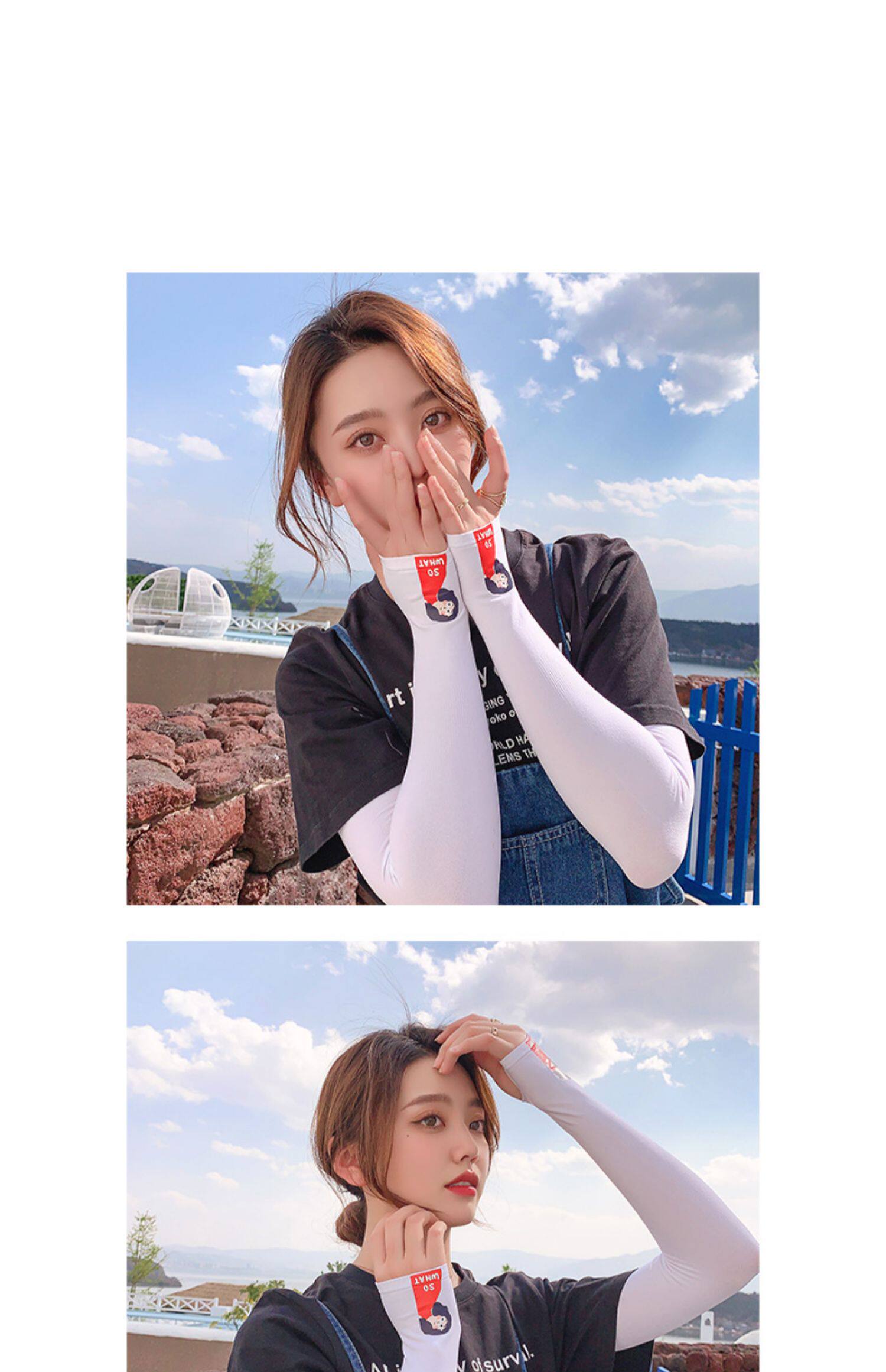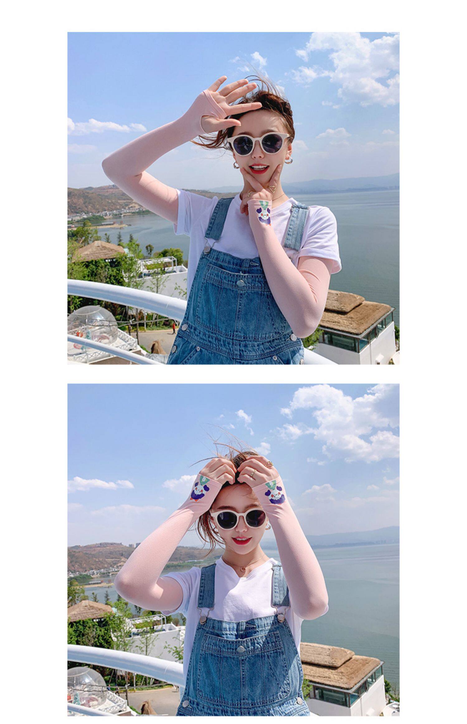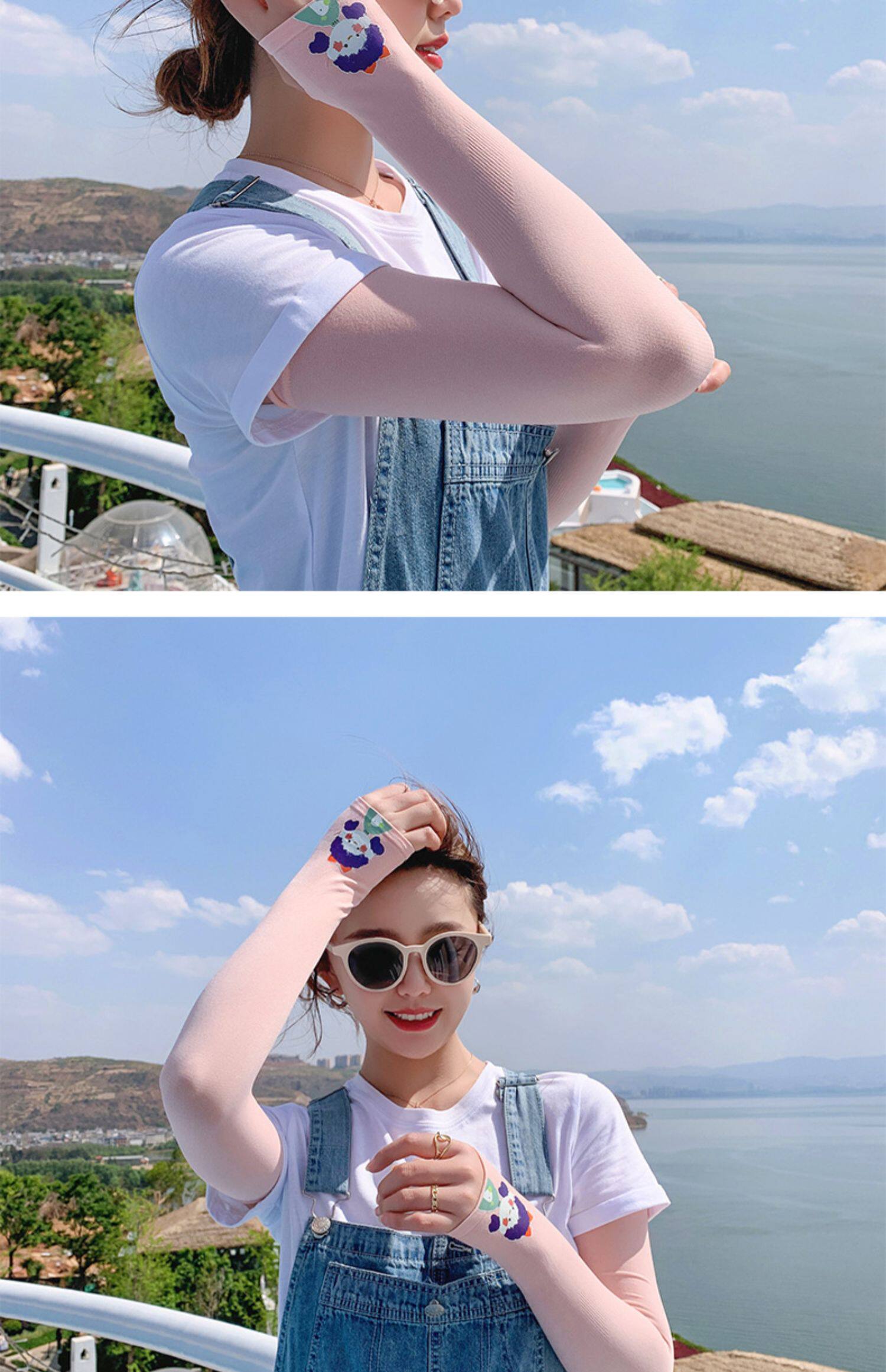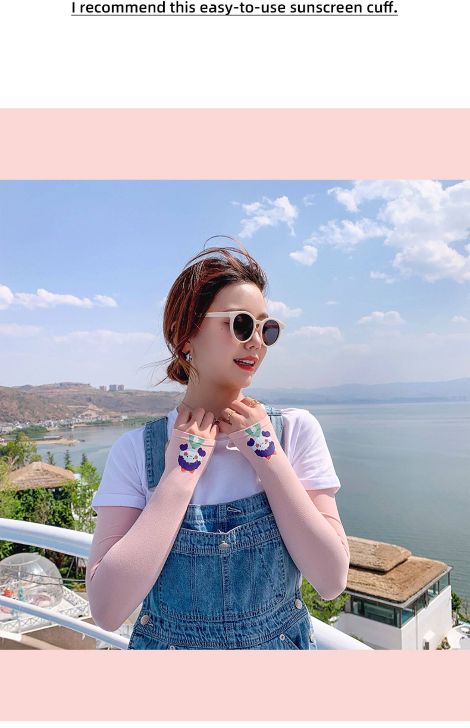 Летний защитный рукав, нарукавники, комплект, шелковый мультяшный крем для рук для велоспорта, тонкие перчатки, защита от солнца, УФ-защита
