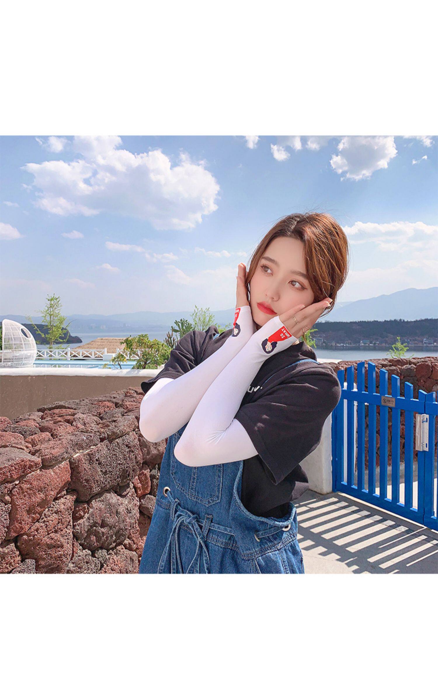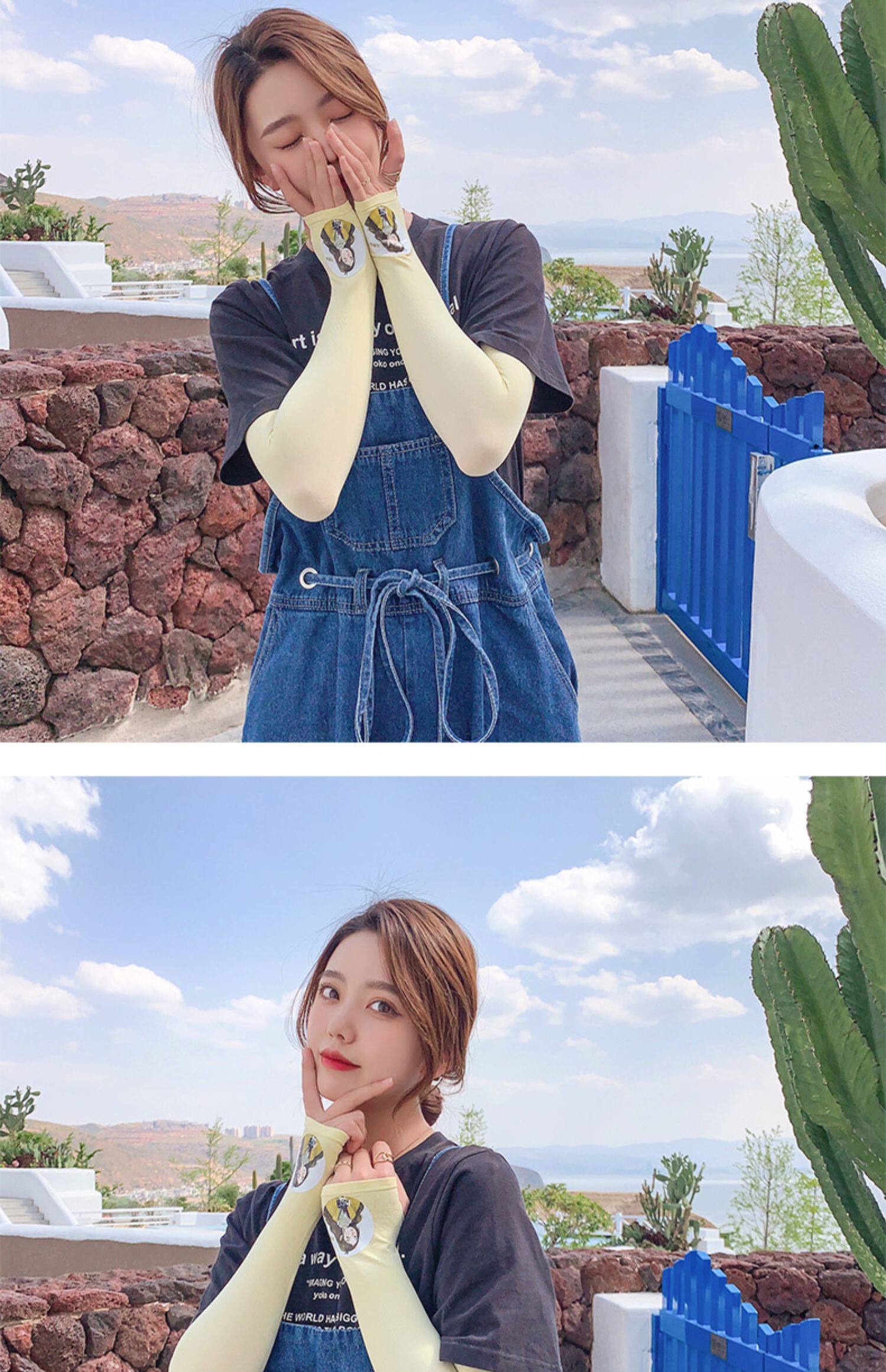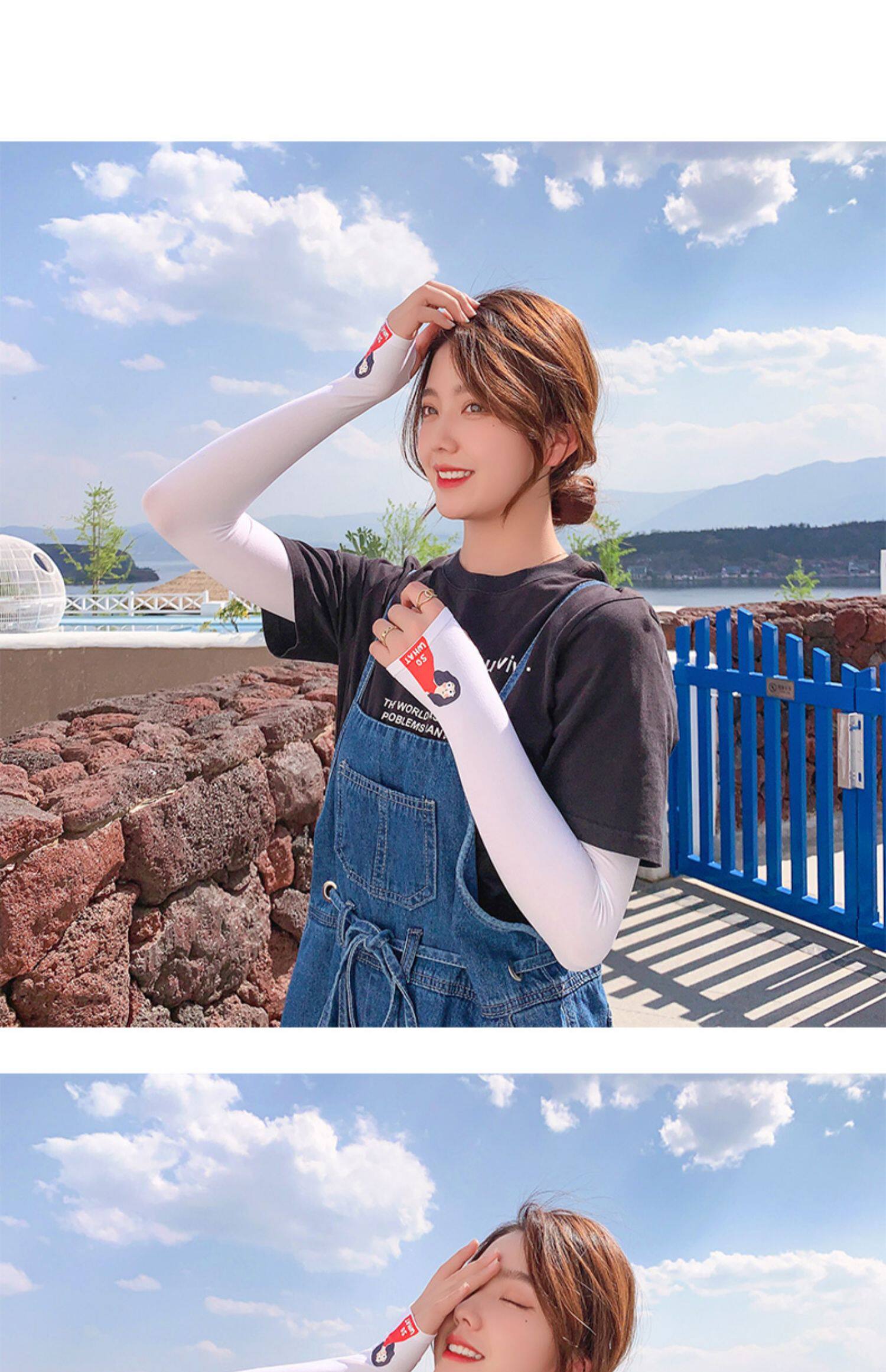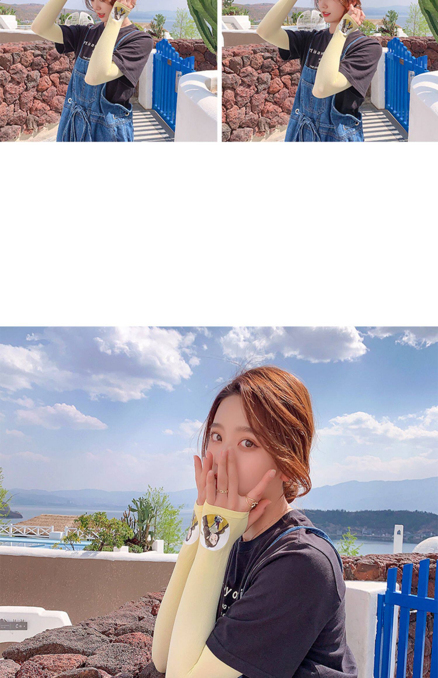 Летний защитный рукав, нарукавники, комплект, шелковый мультяшный крем для рук для велоспорта, тонкие перчатки, защита от солнца, УФ-защита