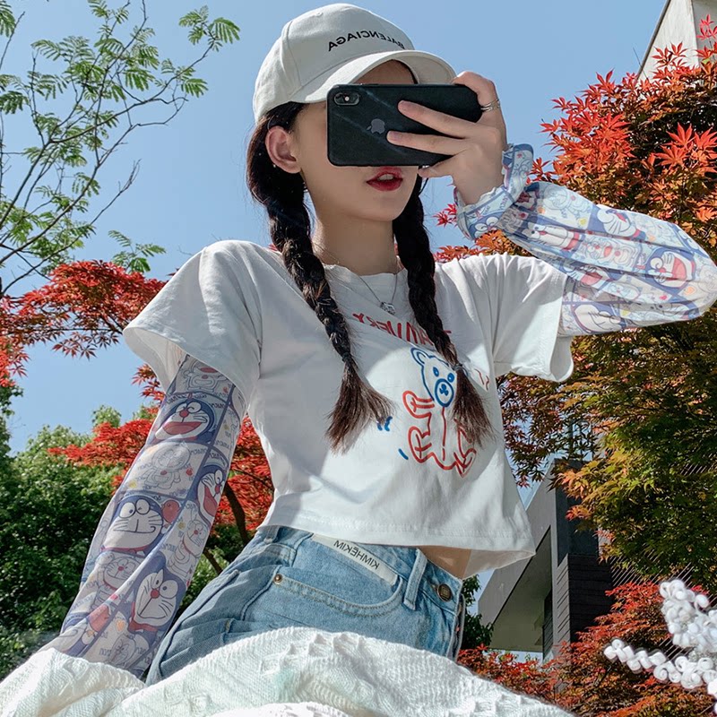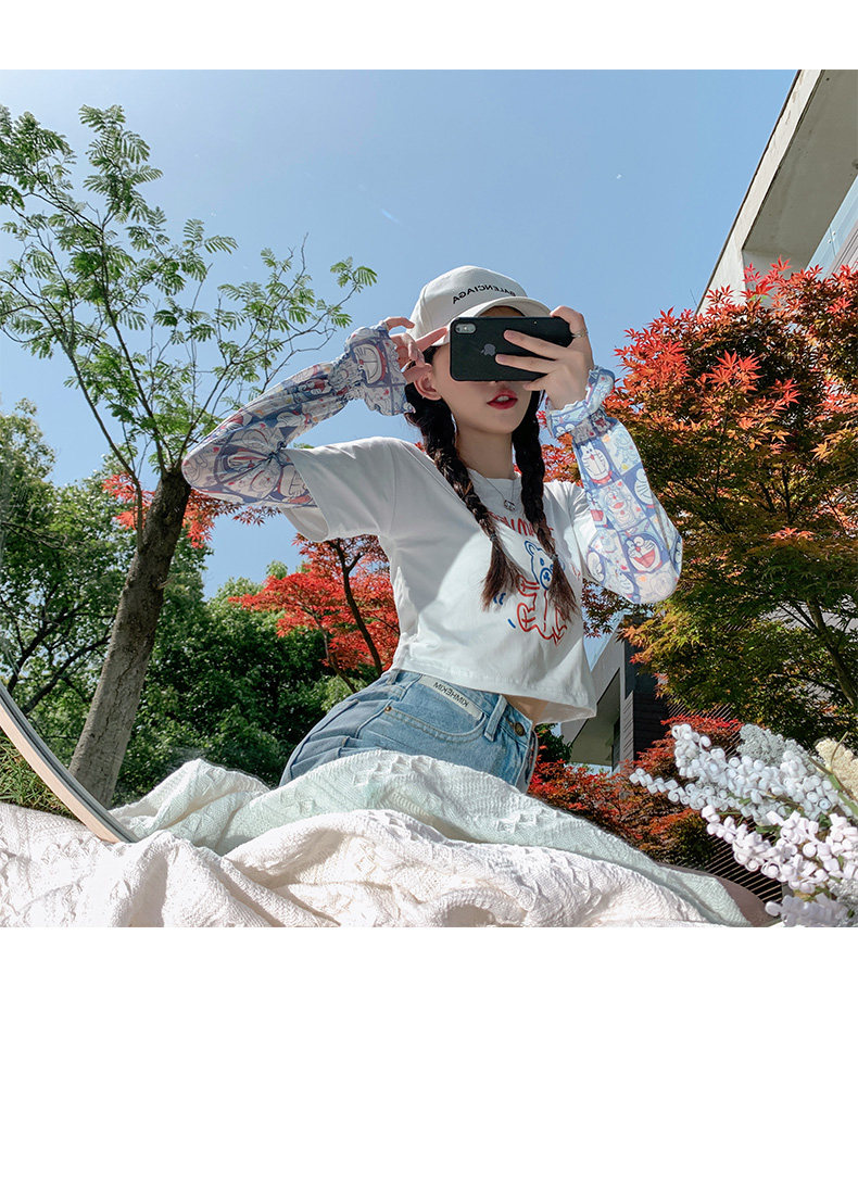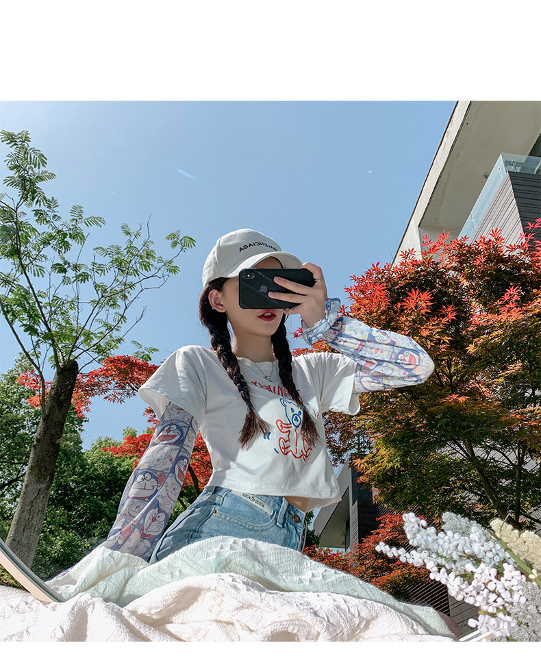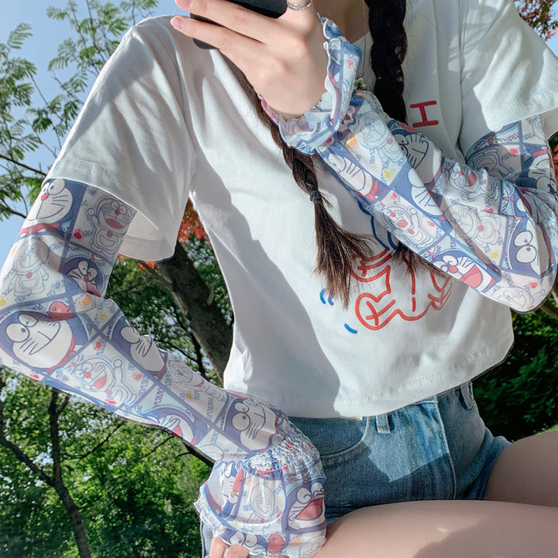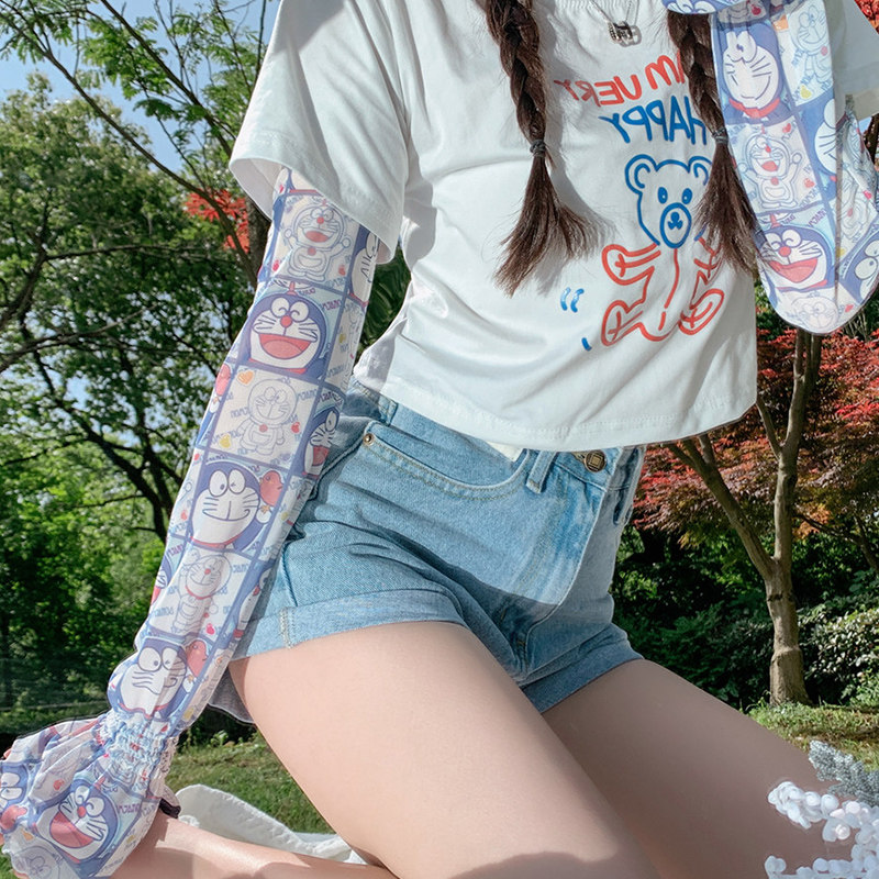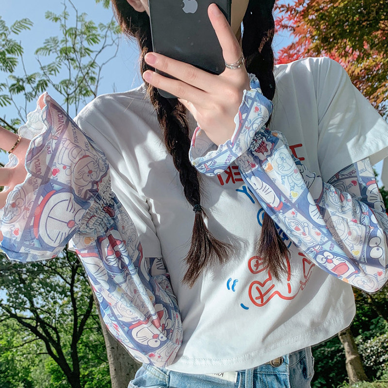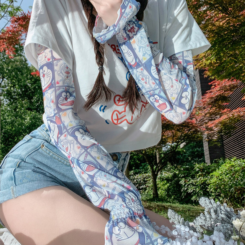 Брендовые мультяшные милые шелковые тонкие нарукавники для школьников и студентов, защита от солнца