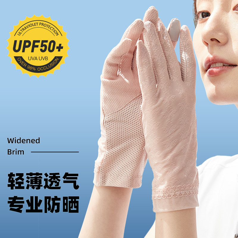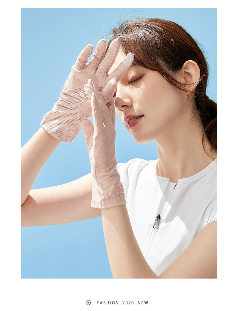 Перчатки, тонкий летний шелковый дорожный кружевной комплект, защита от солнца, защита от ультрафиолета