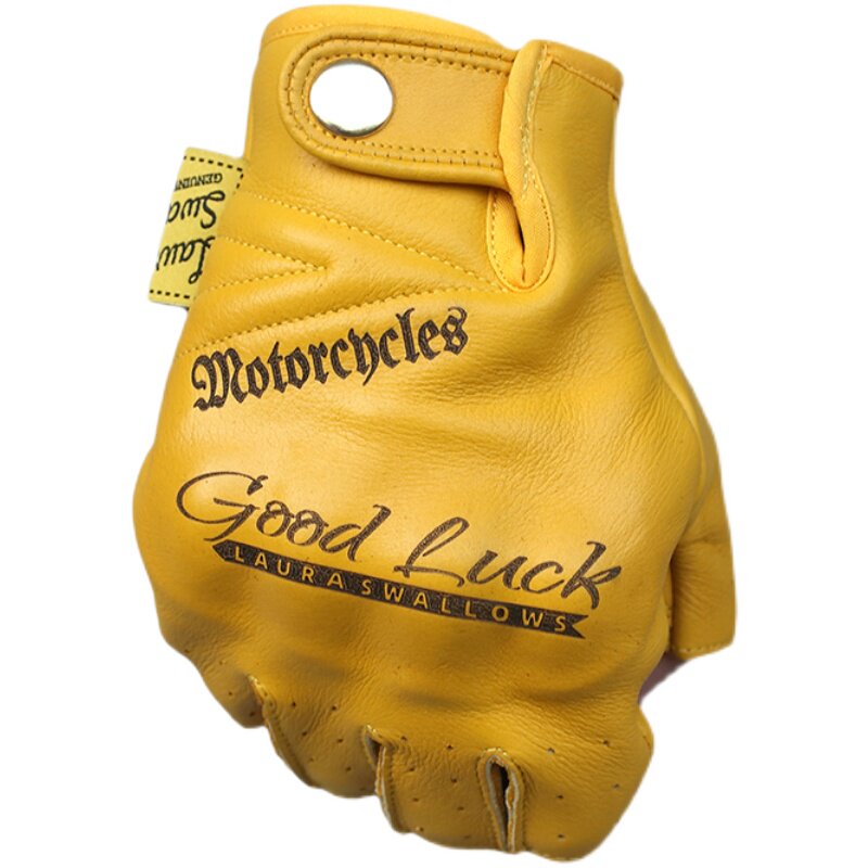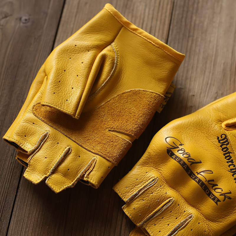 Желтые кожаные дорожные износостойкие перчатки, воловья кожа, без пальцев, защита при падении, из натуральной кожи
