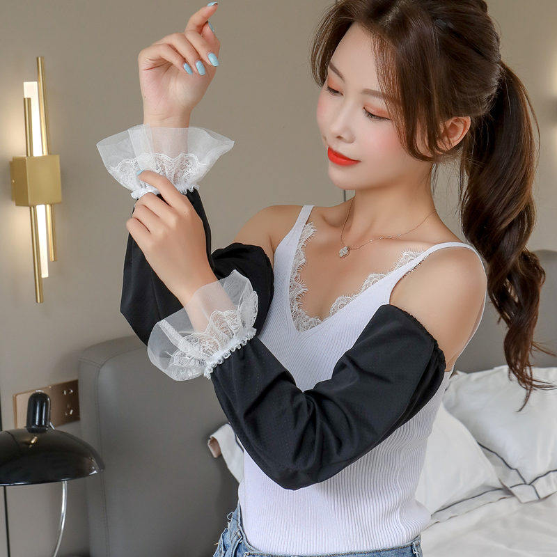 - Цветные шелковые кружевные черные нарукавники, коллекция 2021