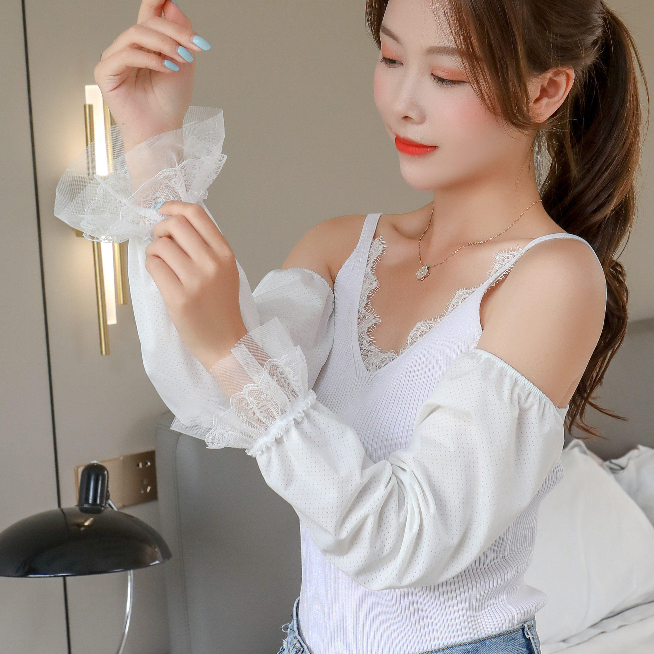 - Цветные шелковые кружевные белые нарукавники, коллекция 2021