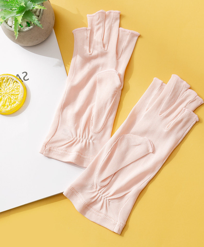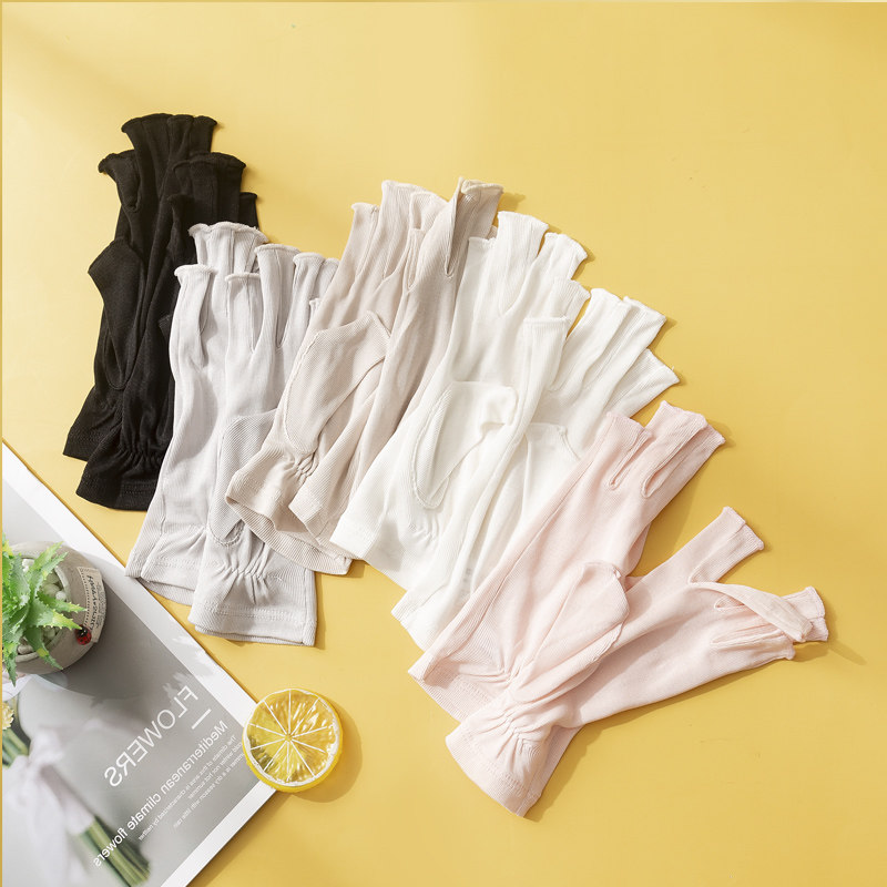 Летние шелковые натуральные трикотажные увлажняющие дышащие перчатки, без пальцев