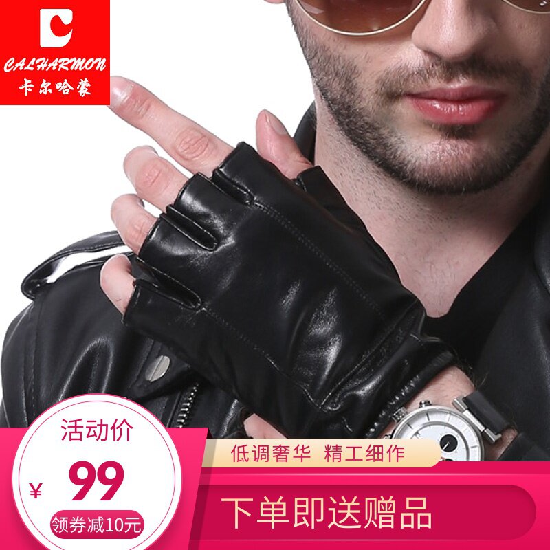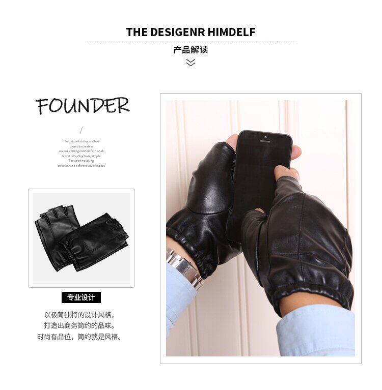 Мужские зимние флисовые удерживающие тепло перчатки, в корейском стиле, без пальцев, из натуральной кожи