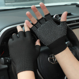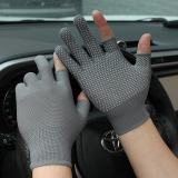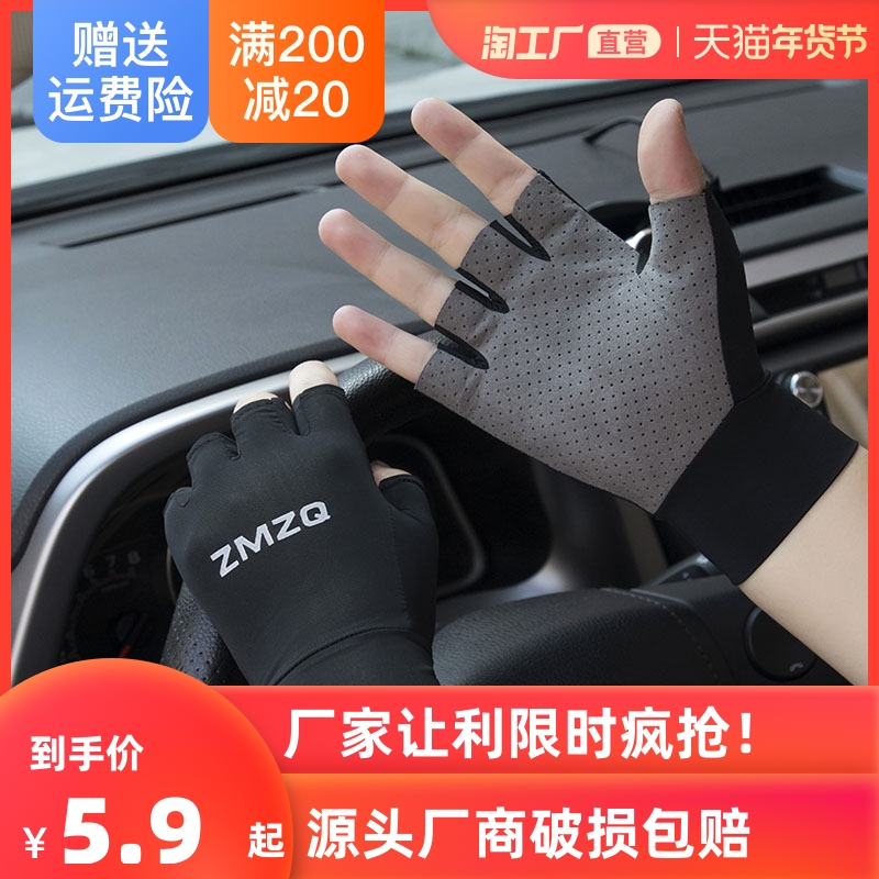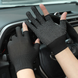Мужские летние тонкие шелковые дышащие дорожные нескользящие перчатки, без пальцев
