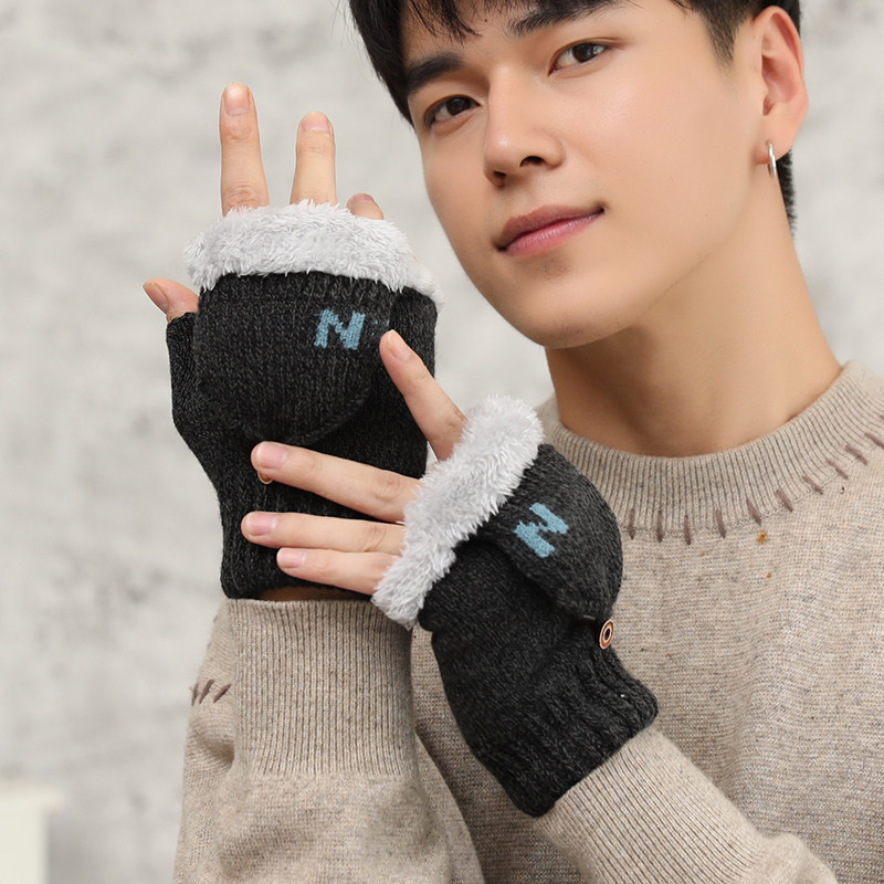 Мужские удерживающие тепло утепленные зимние перчатки, в корейском стиле, без пальцев