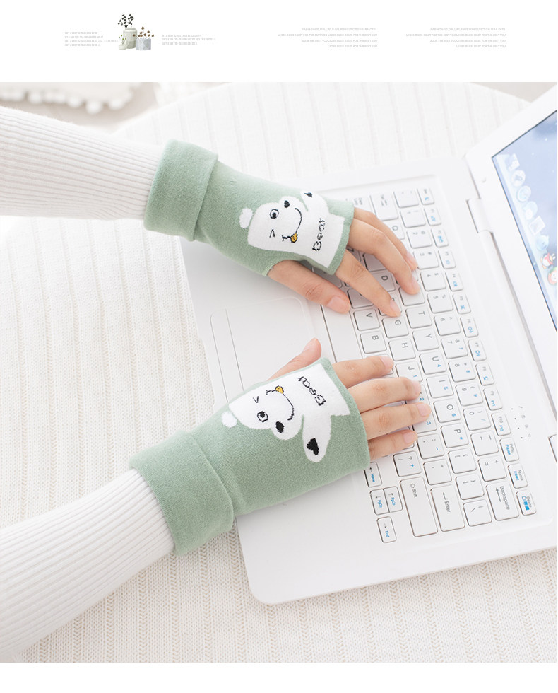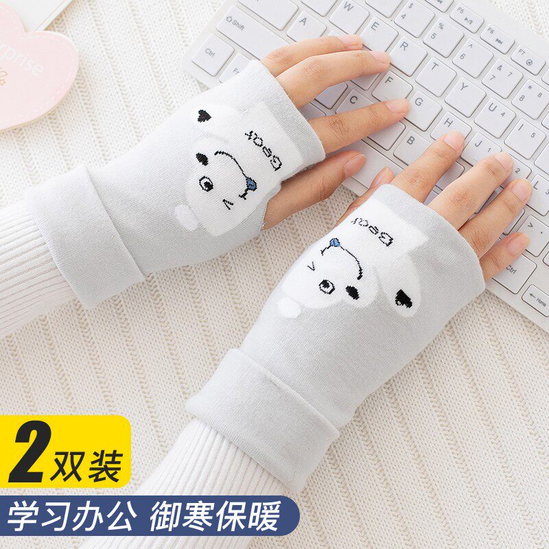 Перчатки, удерживающий тепло тонкий зимний милый комплект для школьников для офиса, без пальцев, коллекция 2021, в корейском стиле
