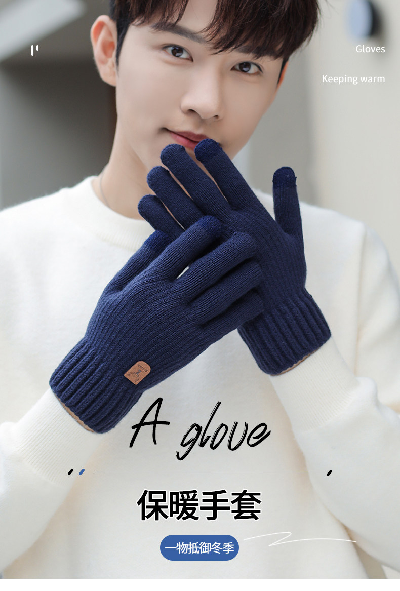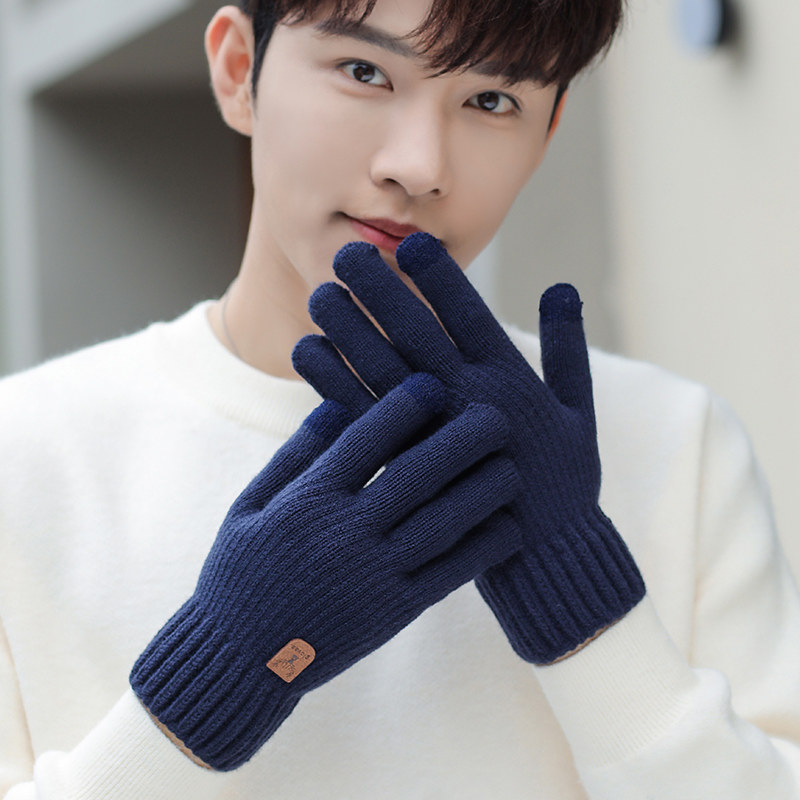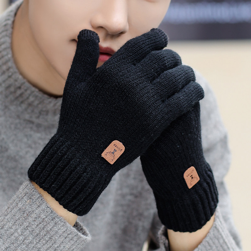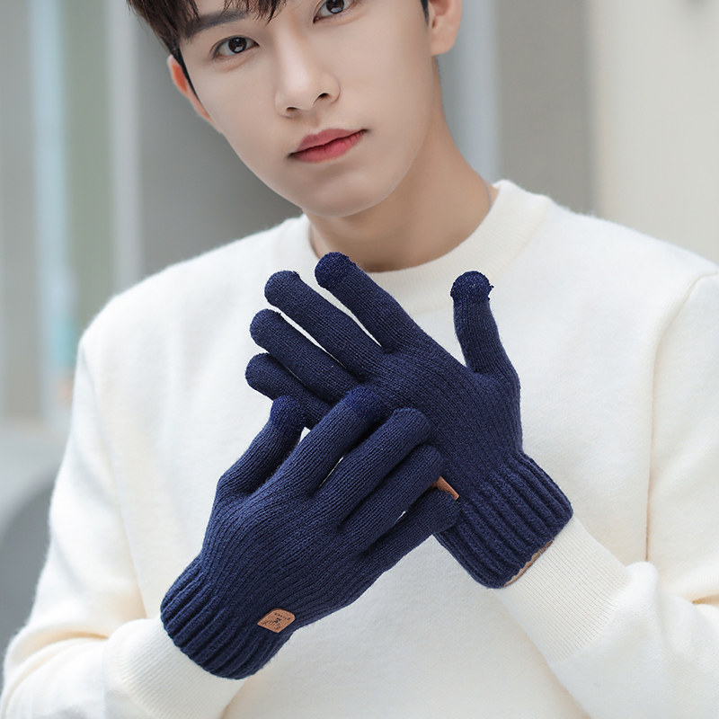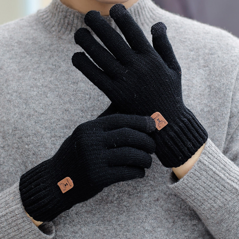 Мужские демисезонные удерживающие тепло трикотажные утепленные ветрозащитные перчатки