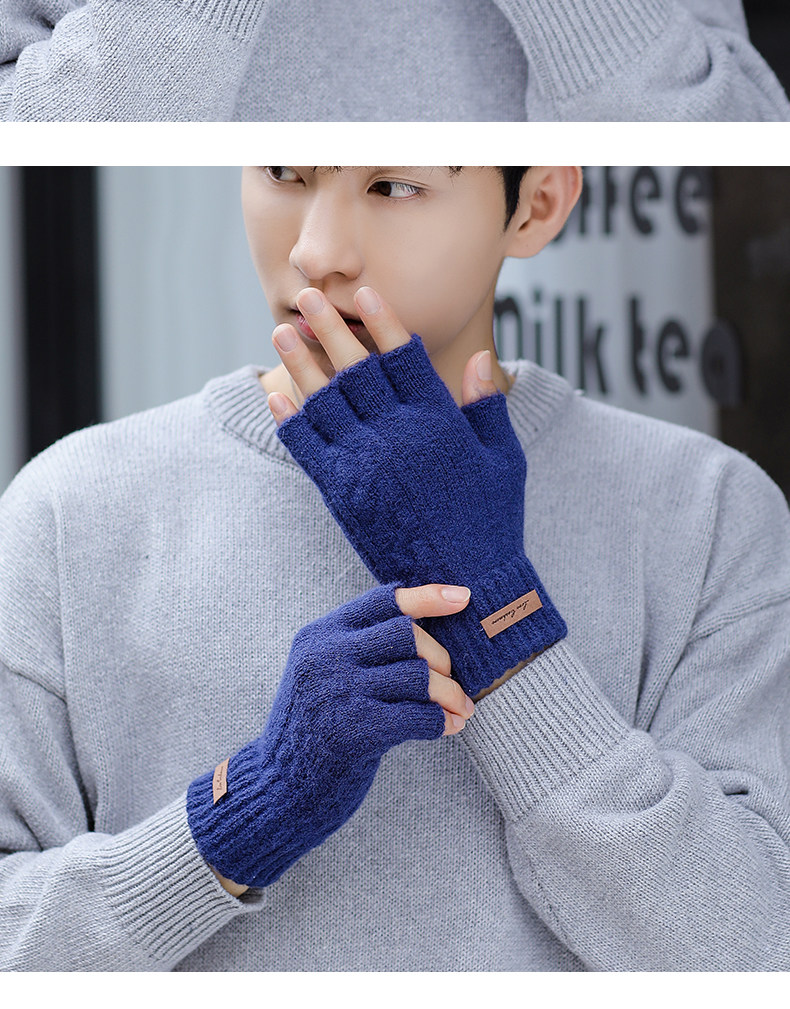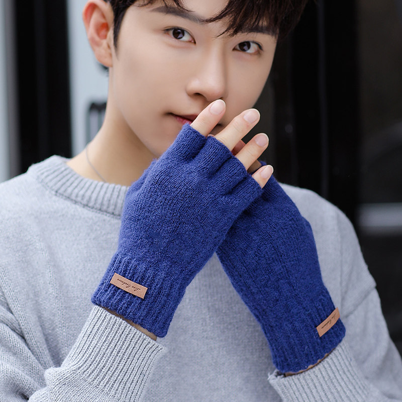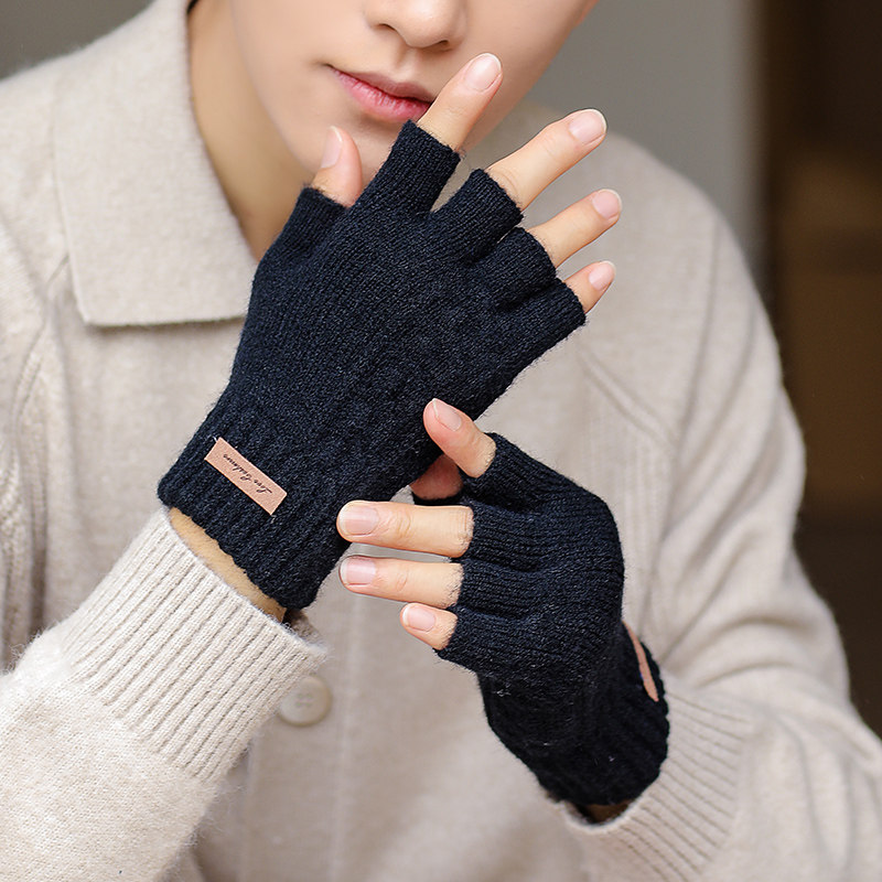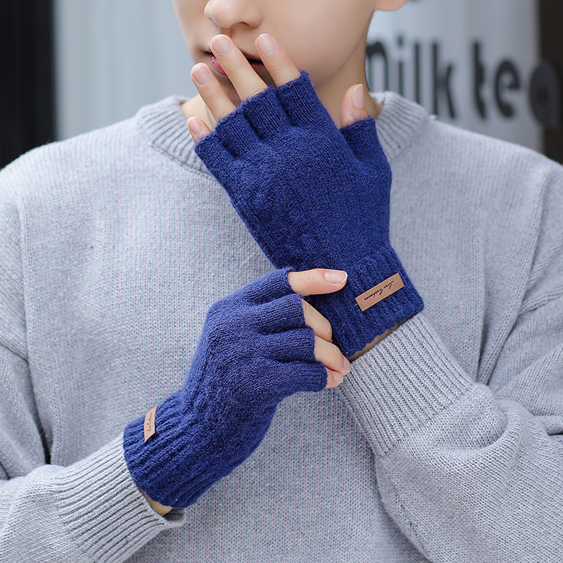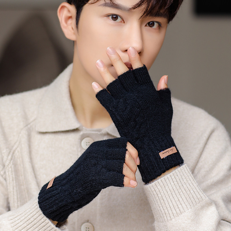 Мужские зимние трикотажные ветрозащитные удерживающие тепло перчатки для офиса для школьников, без пальцев