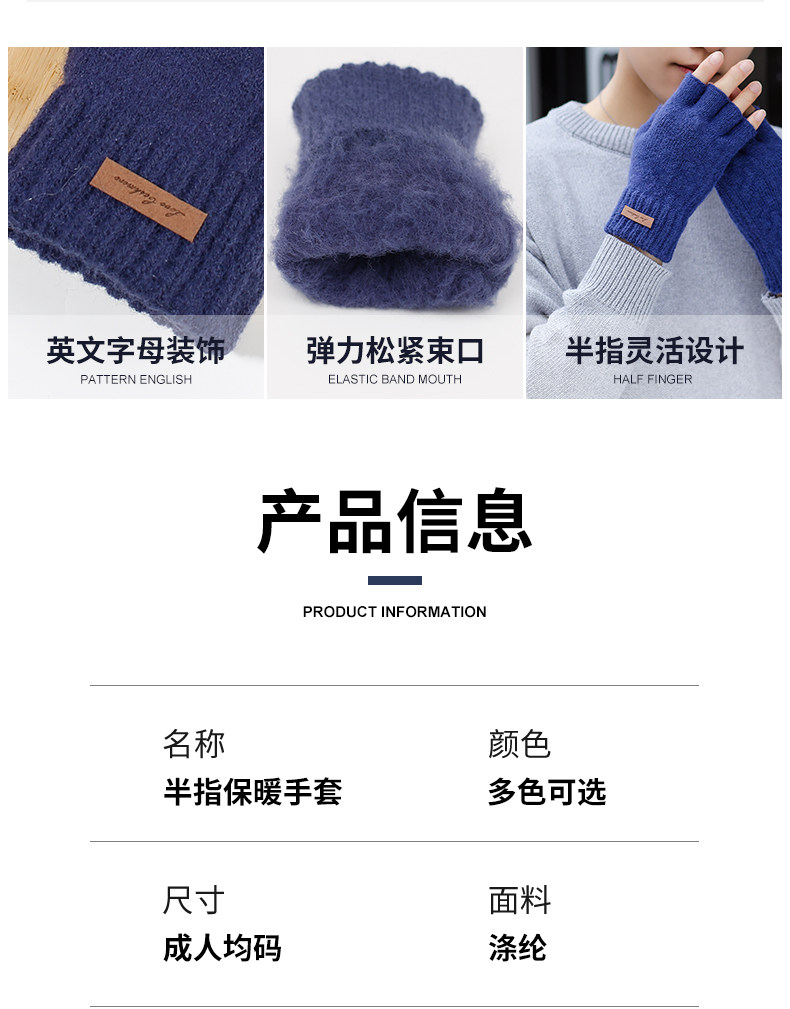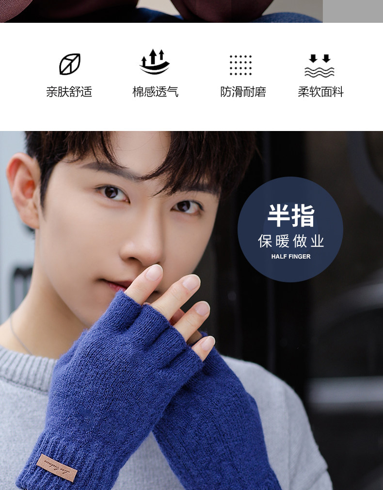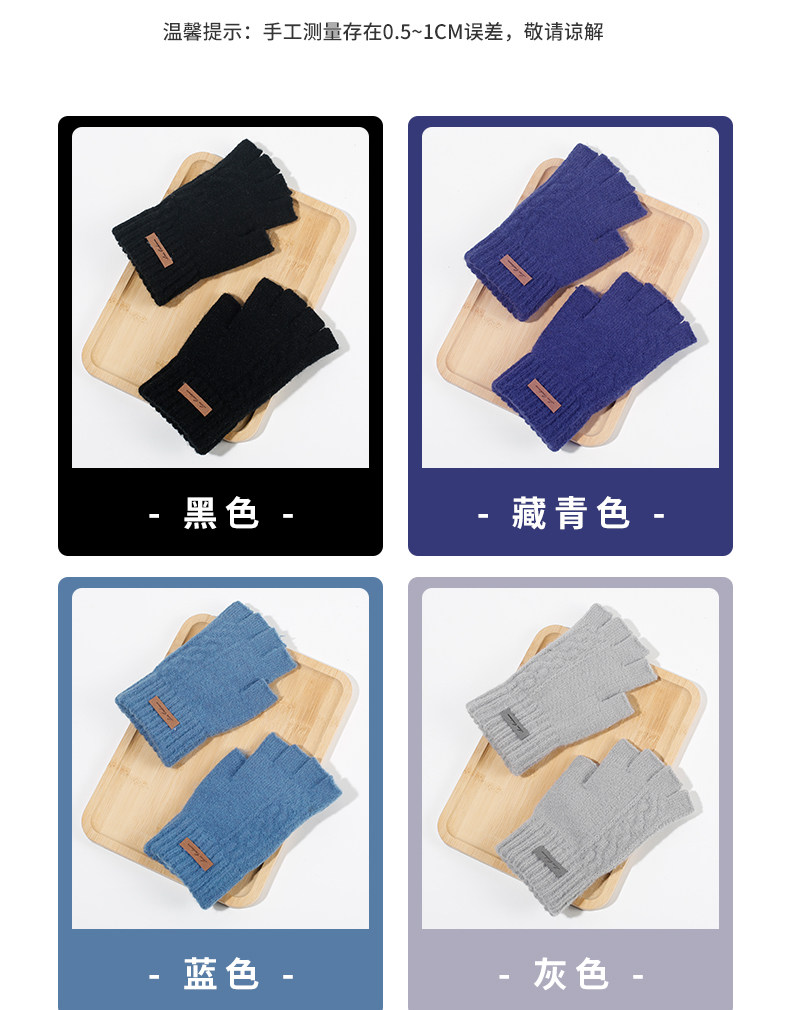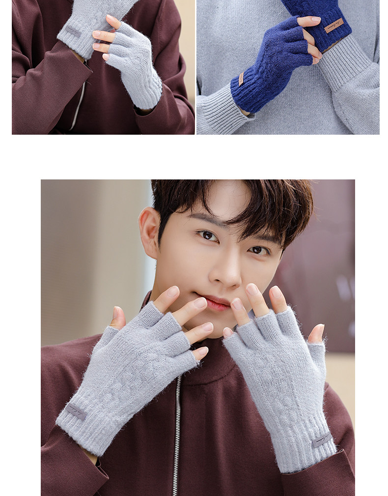 Мужские зимние трикотажные ветрозащитные удерживающие тепло перчатки для офиса для школьников, без пальцев