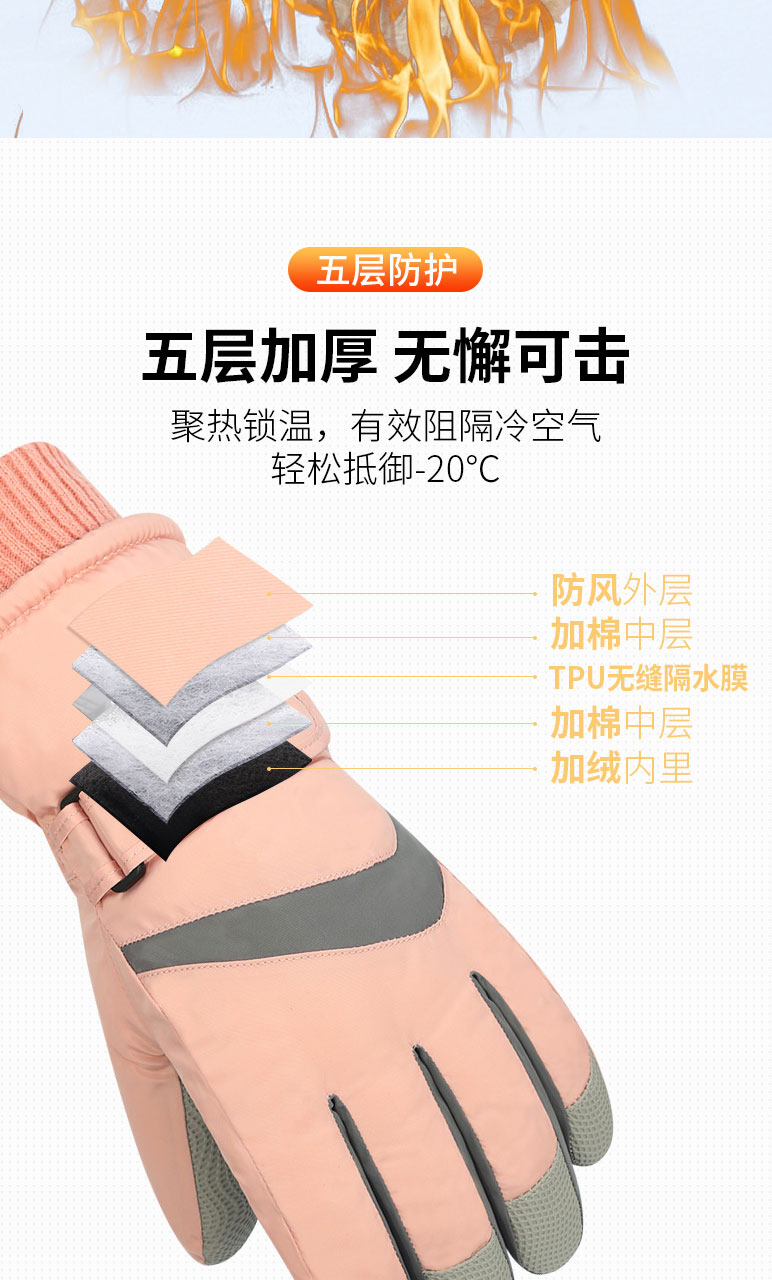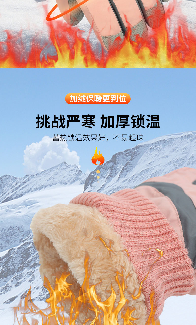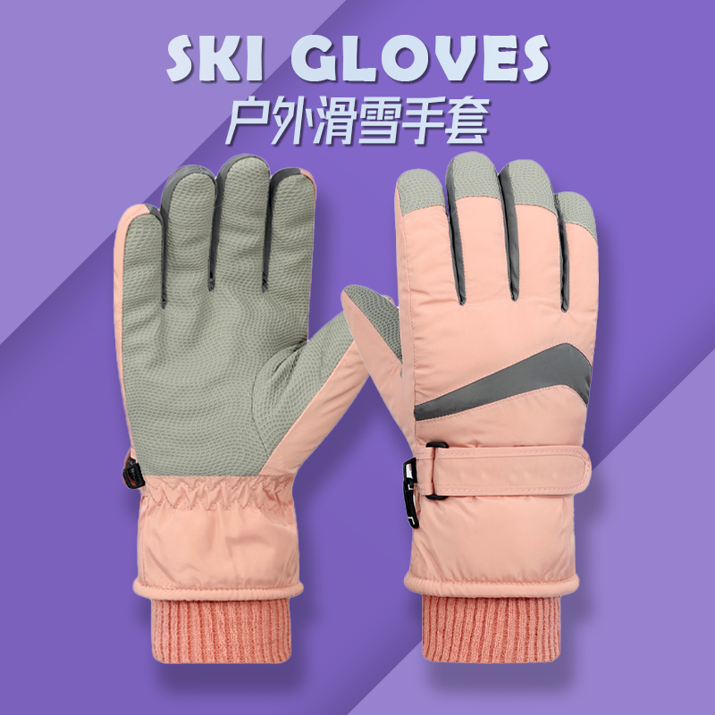 Лыжные перчатки, зимний утепленный удерживающий тепло милый альпинистский водонепроницаемый ветрозащитный комплект для школьников