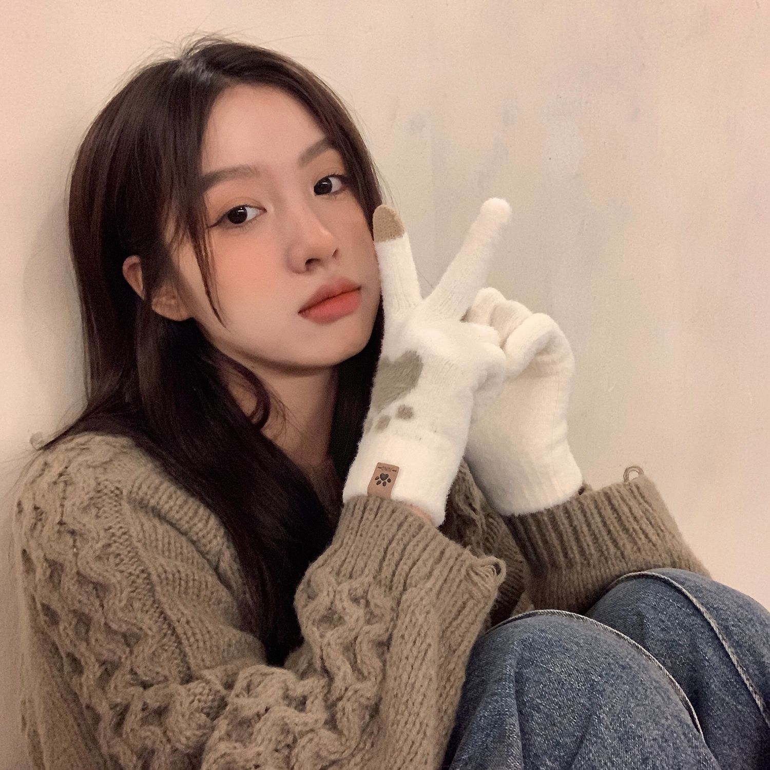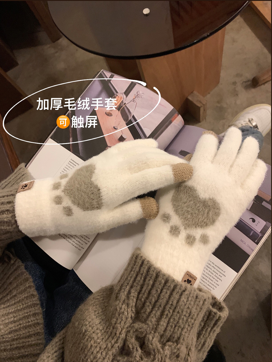 Бархатные зимние перчатки для школьников, крем для рук, трикотажный комплект, увеличенная толщина