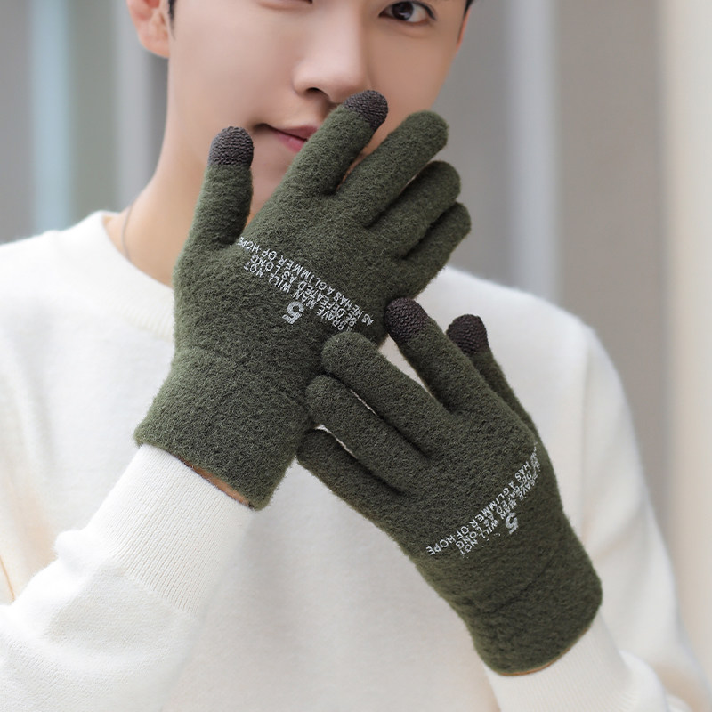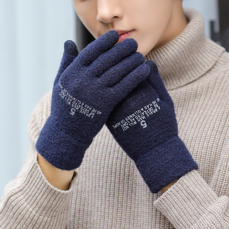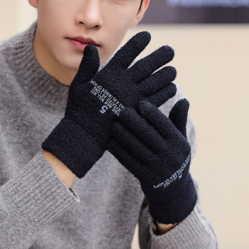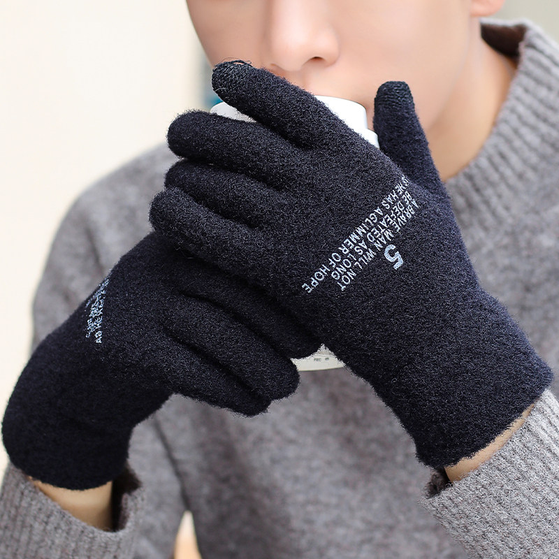 Мужские зимние утепленные удерживающие тепло трикотажные перчатки, в корейском стиле