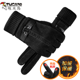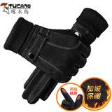 Мужские демисезонные флисовые удерживающие тепло ветрозащитные перчатки, увеличенная толщина, из натуральной кожи