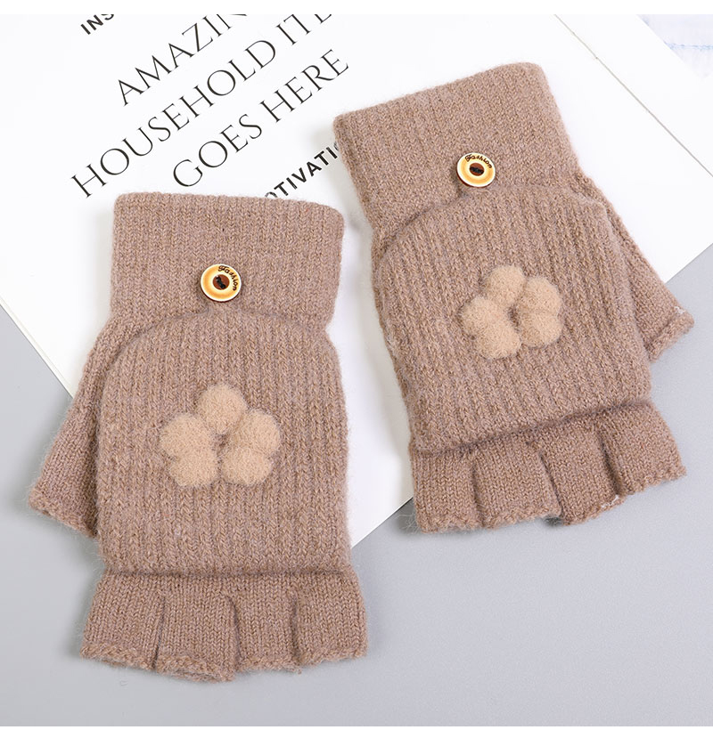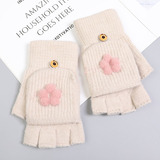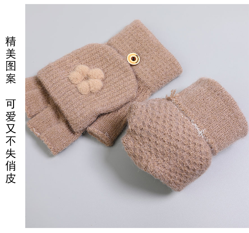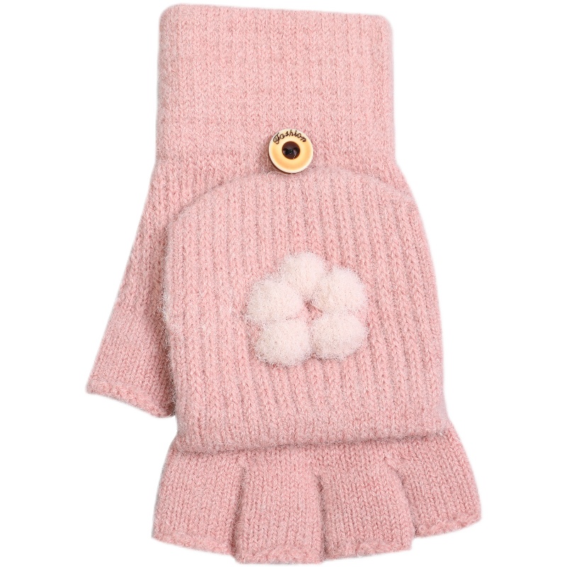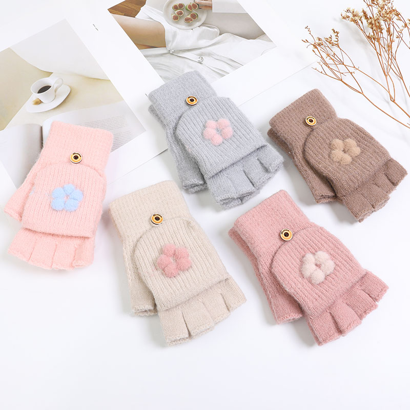 Перчатки, зимний милый удерживающий тепло трикотажный кашемировый комплект для школьников, в корейском стиле, увеличенная толщина, без пальцев