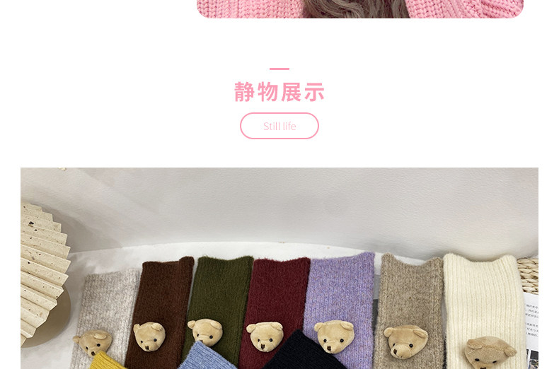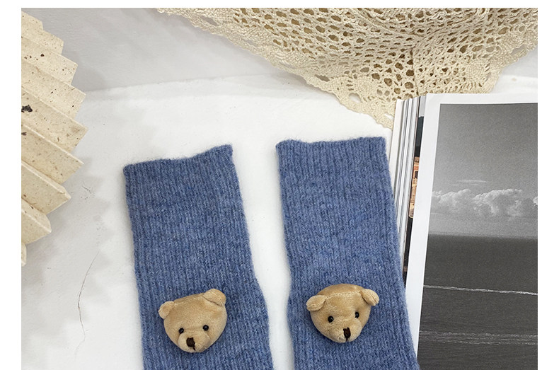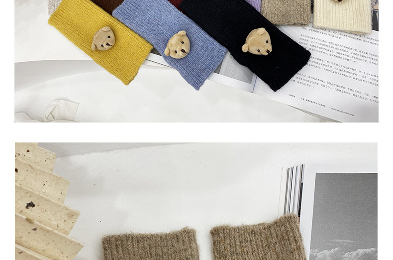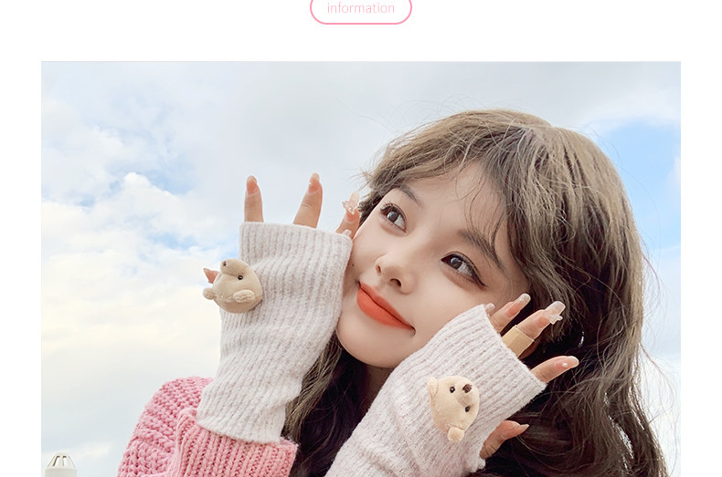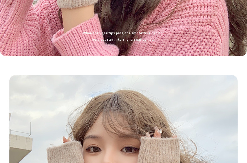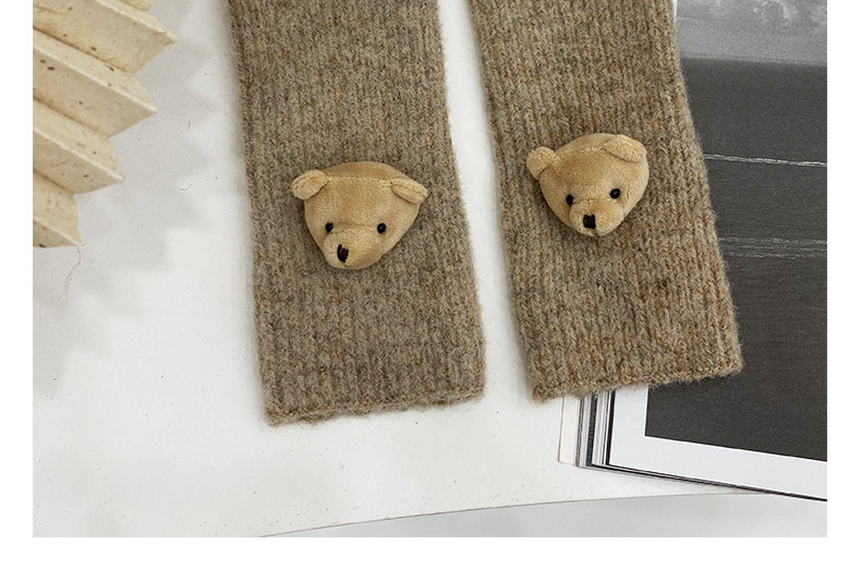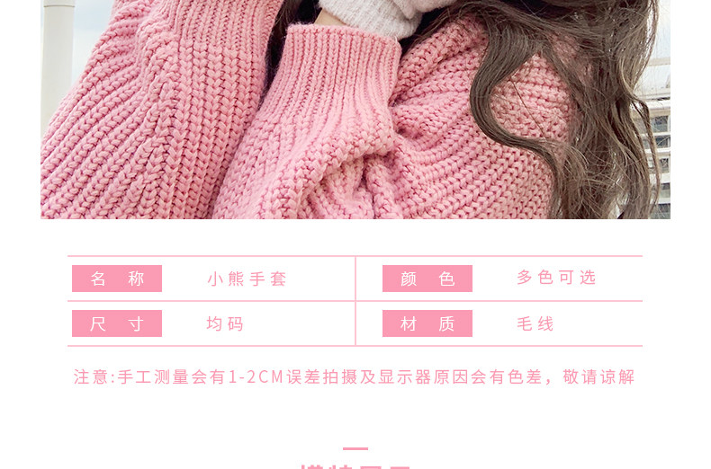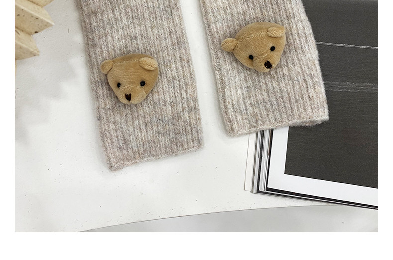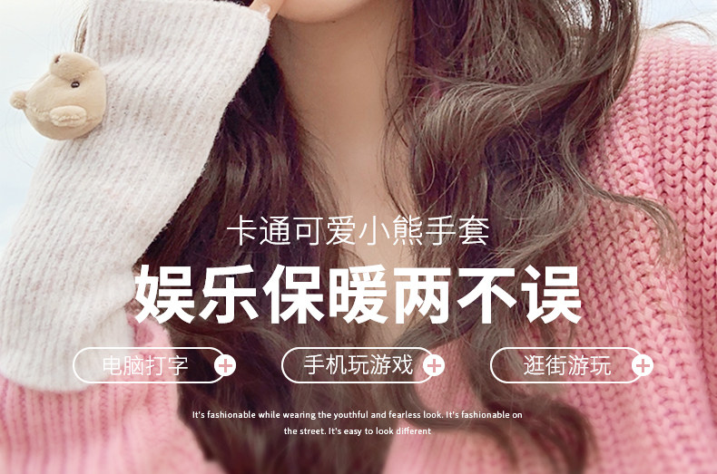 Милые шерстяные трикотажные демисезонные перчатки, японский удерживающий тепло комплект, с медвежатами, без пальцев